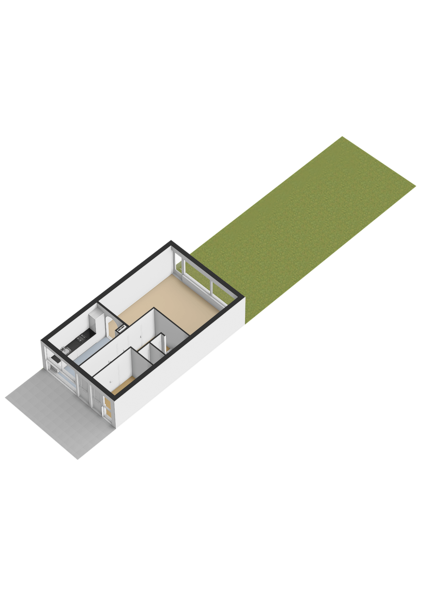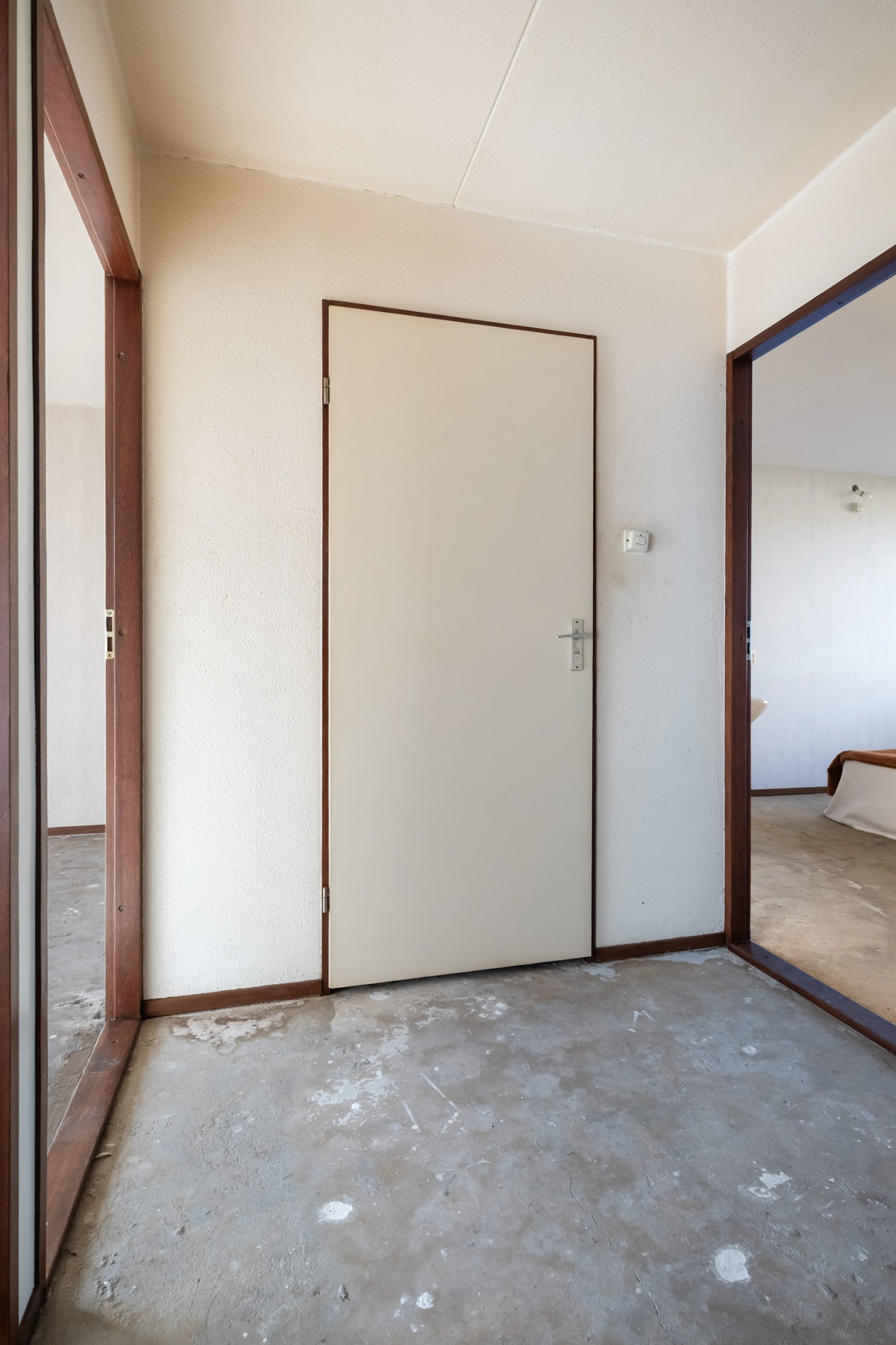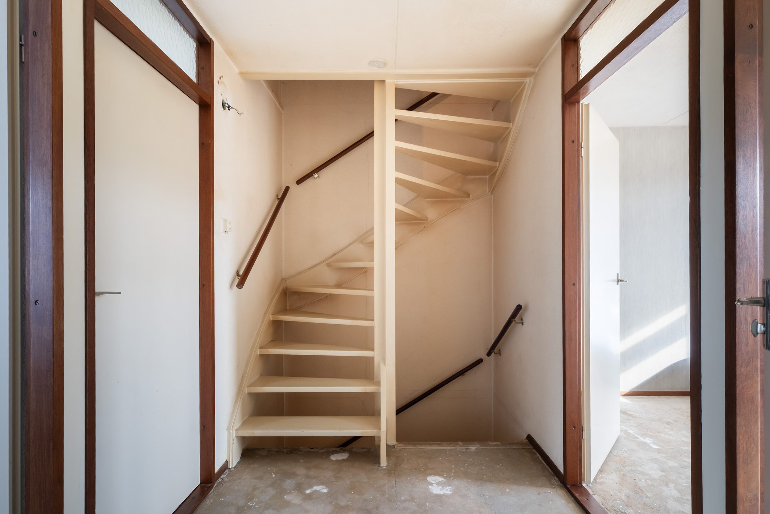Bij binnenkomst valt direct de praktische indeling op. In de hal bevinden zich het toilet, de meterkast, een handige voorraad-/opbergkast en de trap naar boven. Aan de rechterzijde ligt een extra kamer die zich uitstekend leent als werk- of hobbyruimte, maar ook ideaal is te gebruiken als bijvoorbeeld een inpandige berging. Aan de linkerzijde vind je de gesloten keuken, die volop kansen biedt om naar eigen smaak te moderniseren of eventueel te openen richting het woongedeelte. De woonkamer ligt aan de tuinzijde en is dankzij de grote ramen heerlijk licht, met een prettig uitzicht op de groene achtertuin. Hier ervaar je rust, privacy en een fijne verbinding met buiten.