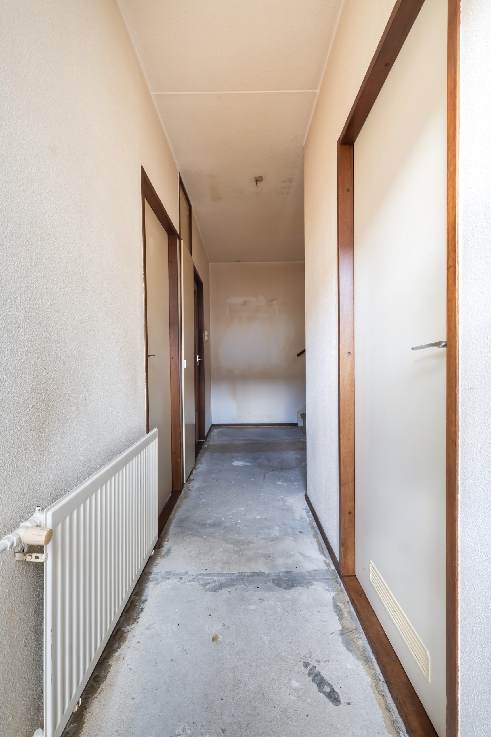 Op de eerste verdieping geeft de overloop toegang tot vier ruime slaapkamers. Dankzij de hoge, rechte wanden voelen ze extra royaal aan en de grote ramen zorgen voor een aangename lichtinval. Ook de badkamer bevindt zich op deze etage en is voorzien van een toilet, wastafel en douche. Een verdieping met volop kansen om deze helemaal naar eigen wens te moderniseren.