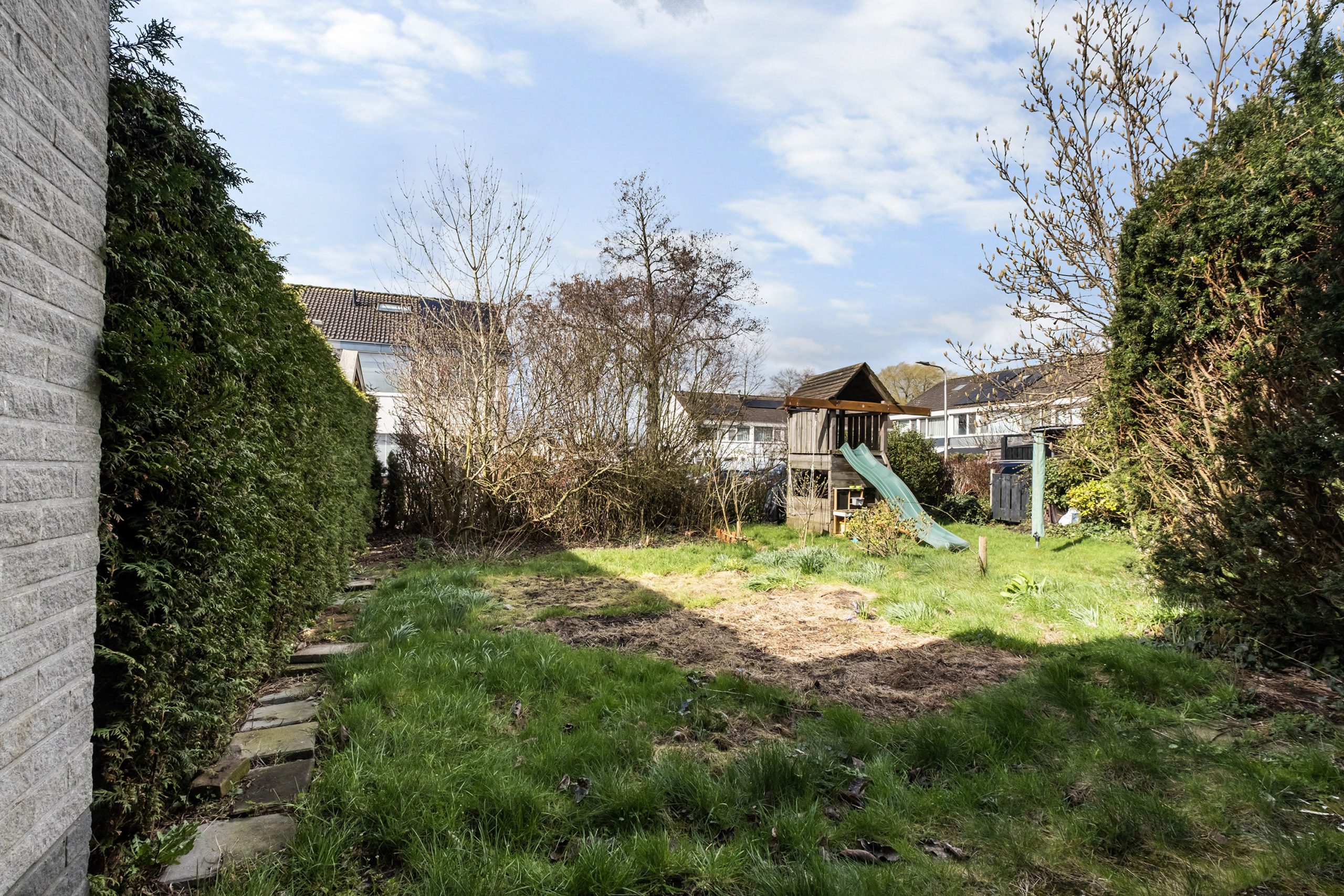 - Zonnige achtertuin met veel groen