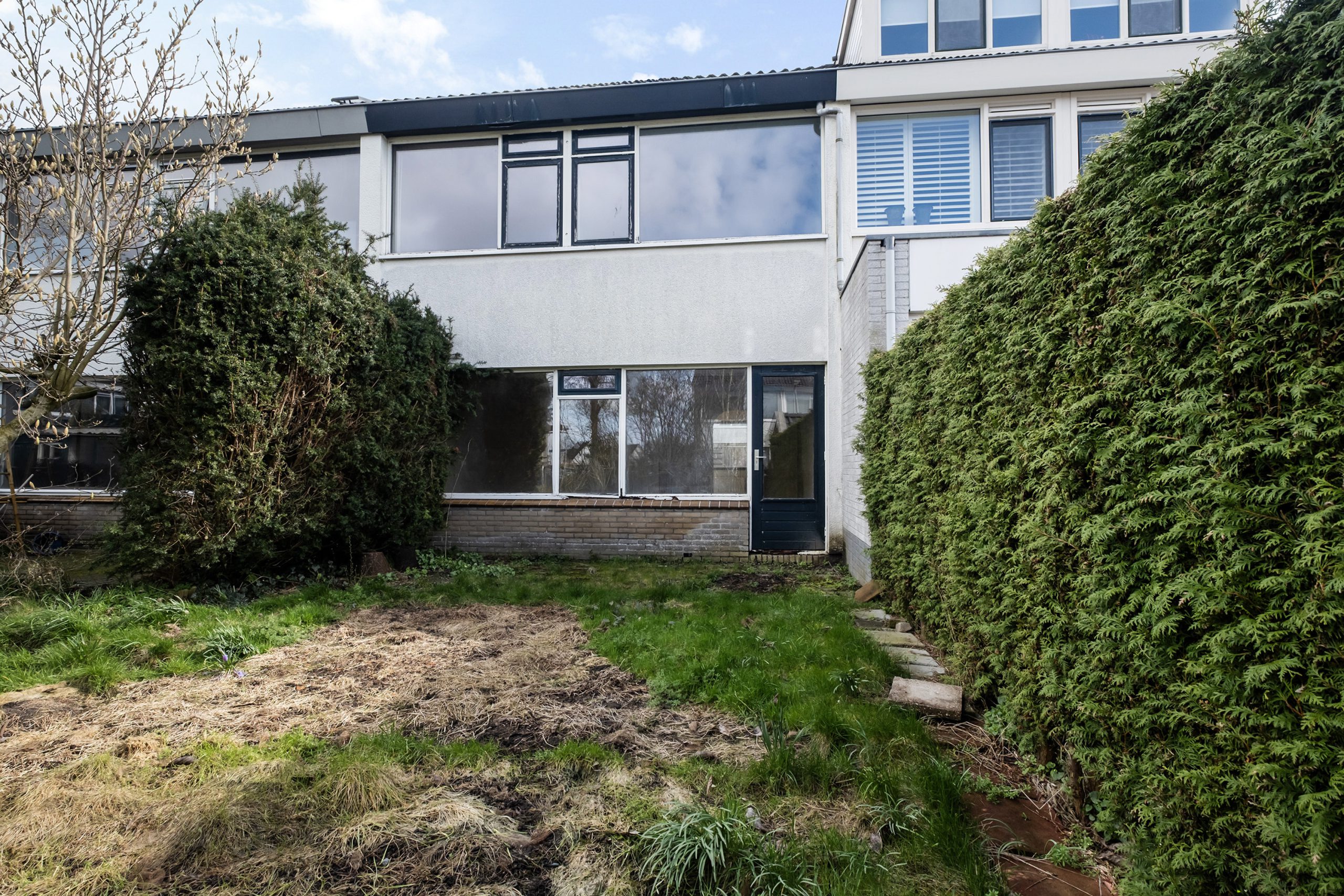 De achtertuin is groen en is nog helemaal naar eigen smaak vorm te geven. Het biedt een fijne plek om in alle rust van het buitenleven te genieten.