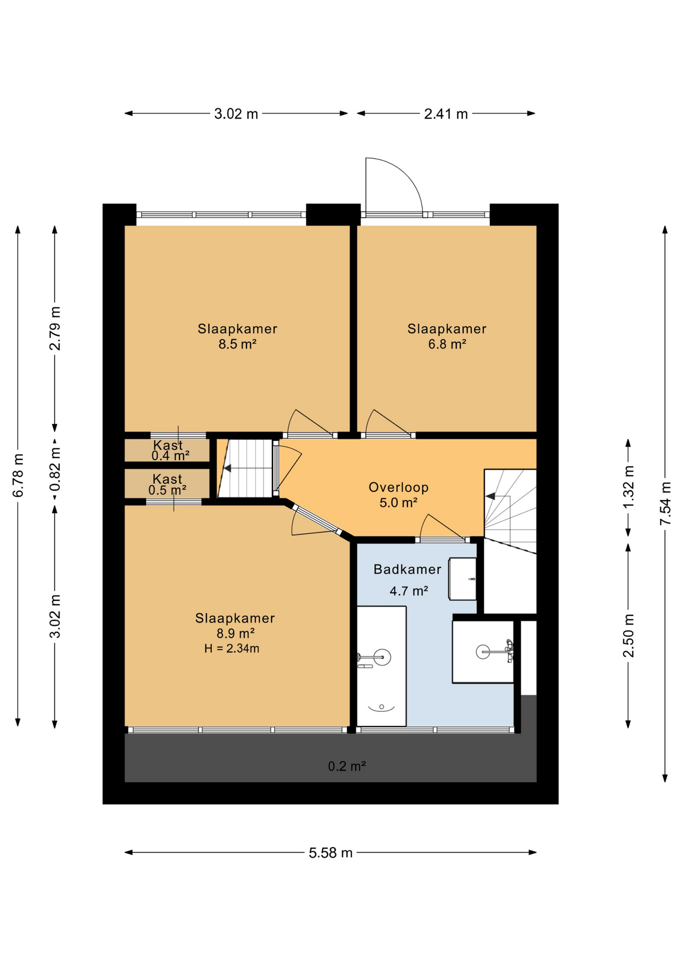 Drie slaapkamers en een complete badkamer op de verdieping