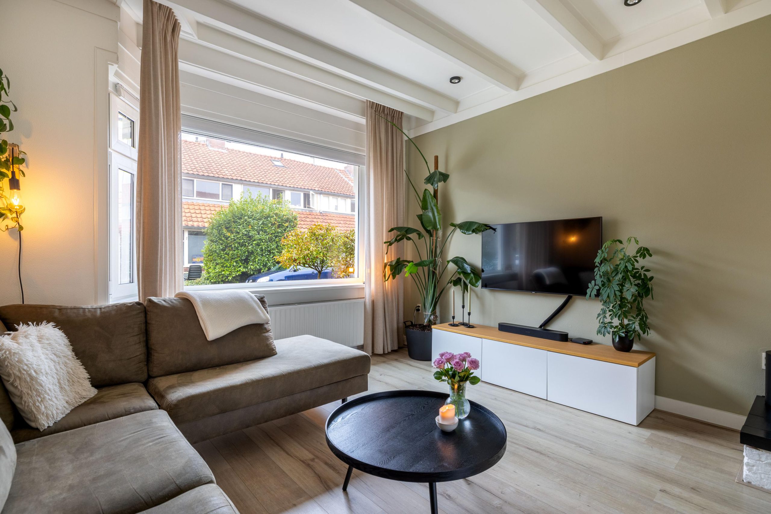 - Jaren ’30 sfeer met erker, ensuite deuren en balkenplafonds