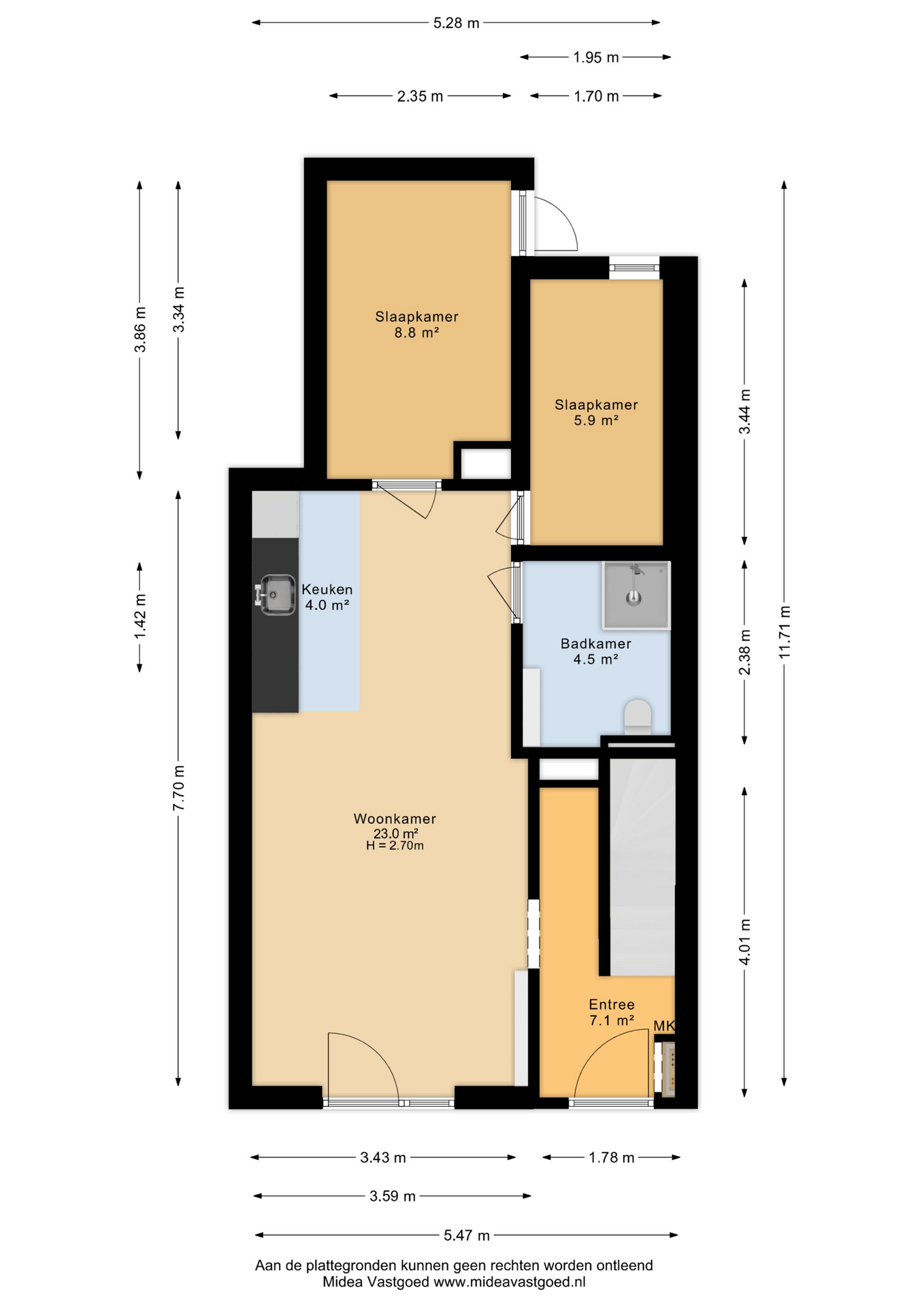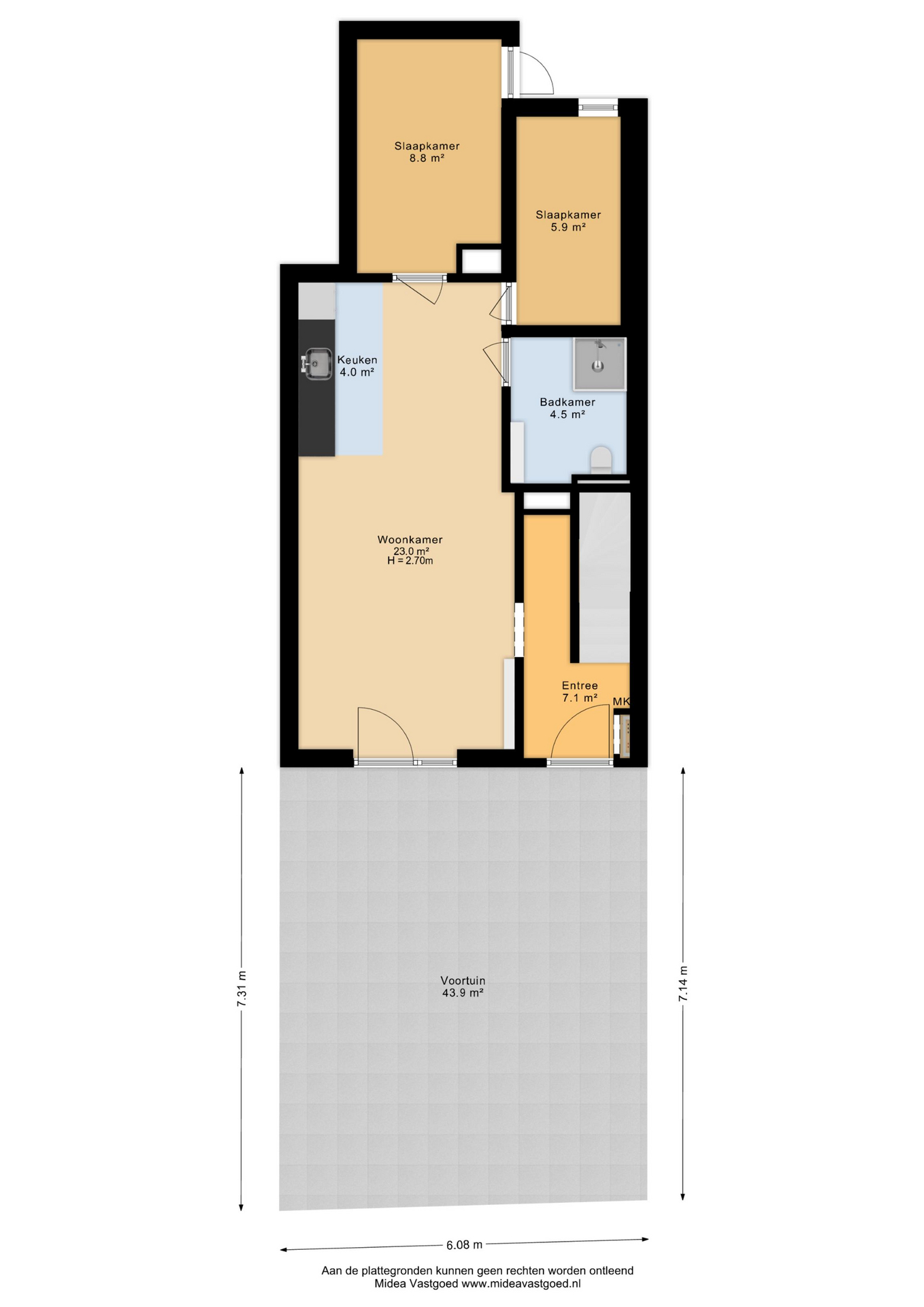 Op de begane grond bevinden zich twee slaapkamers, prettig van formaat en flexibel in gebruik. Ideaal als slaap-, werk- of hobbyruimte. De badkamer is compact en praktisch ingericht met een douche, toilet en wasmachineaansluiting. Aan de achterzijde ligt een besloten binnenplaats, een fijne plek om even naar buiten te stappen. Vanuit de leefruimte naast de hal loop je juist weer zo de voortuin in, waardoor deze verdieping verrassend open en licht aanvoelt.