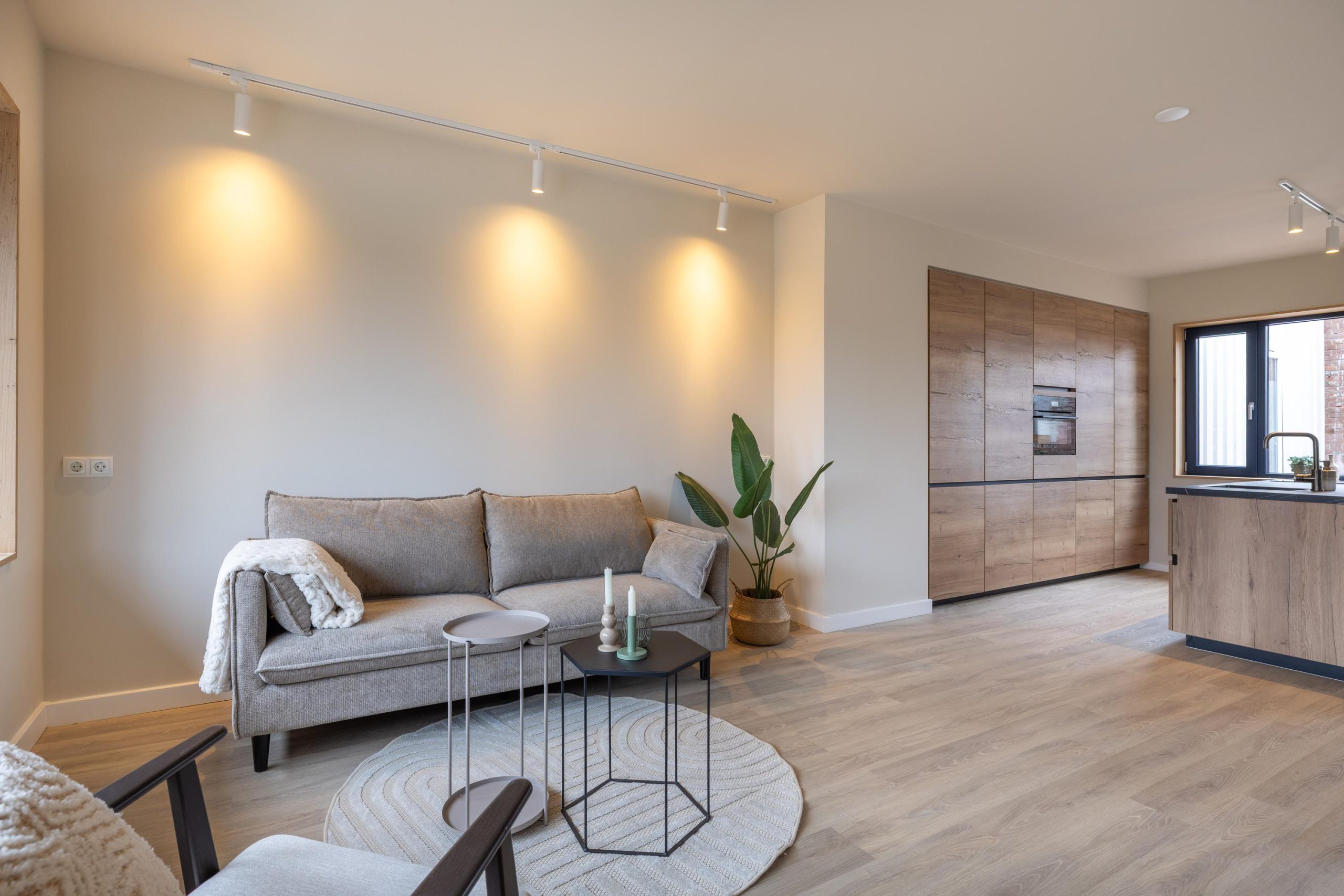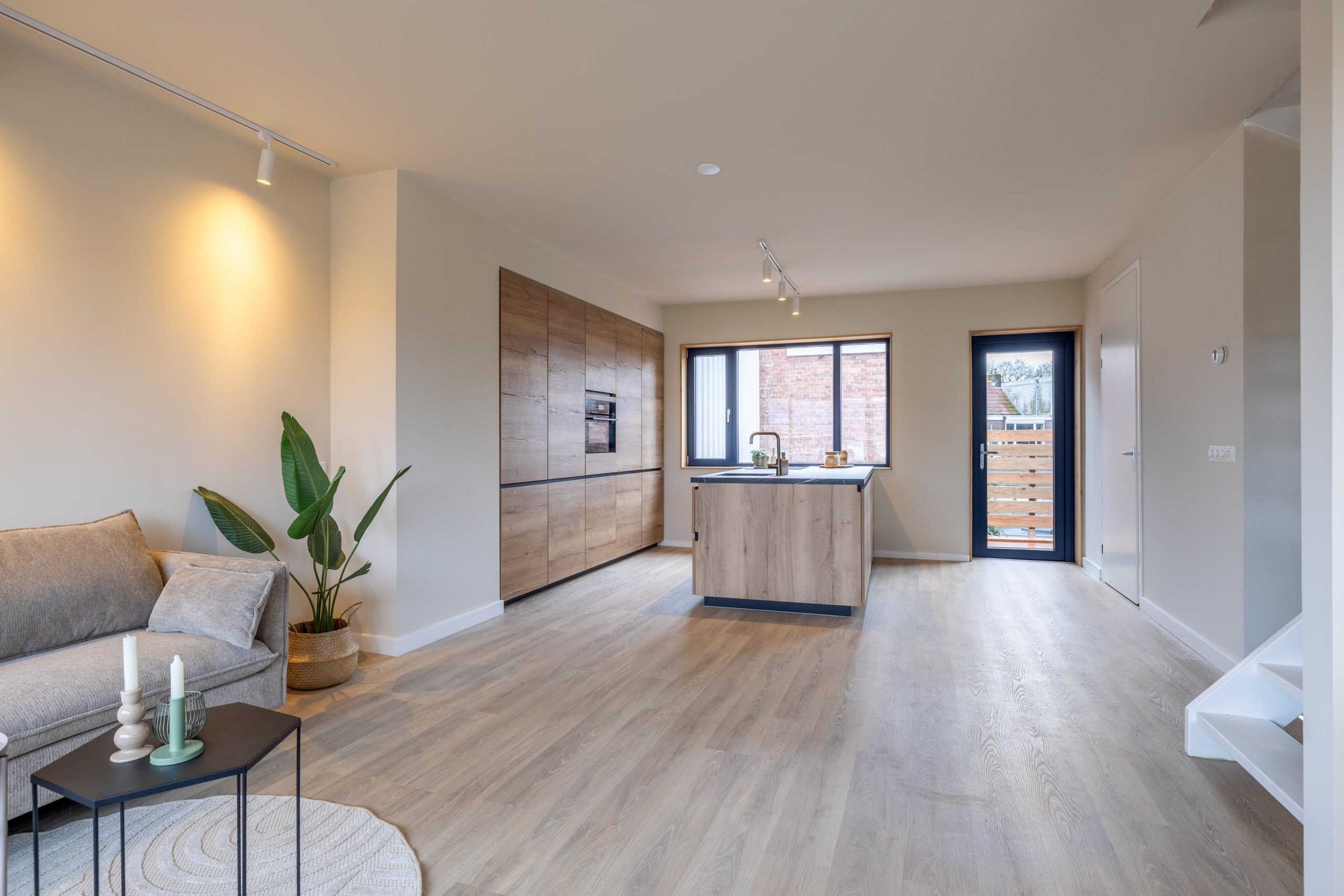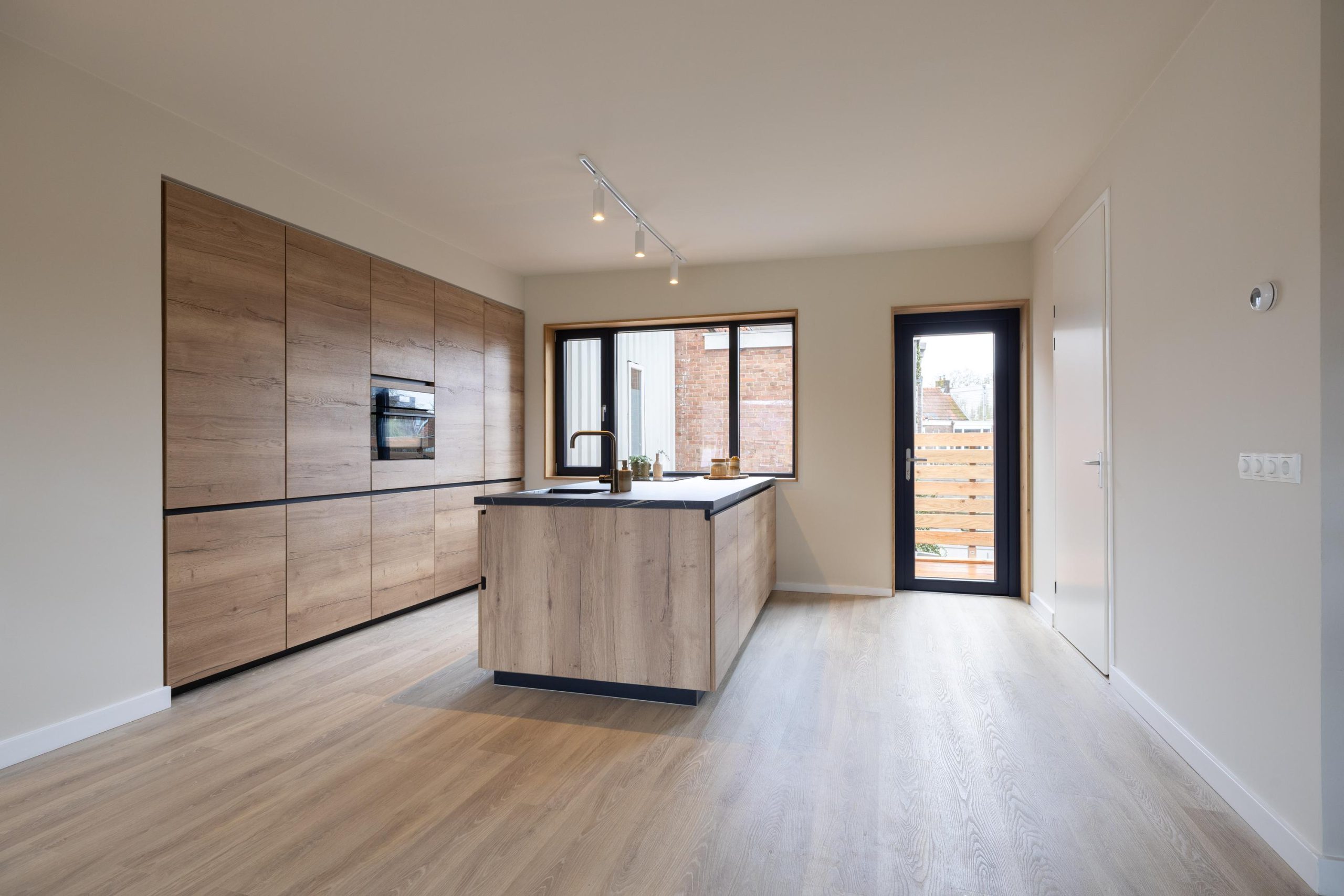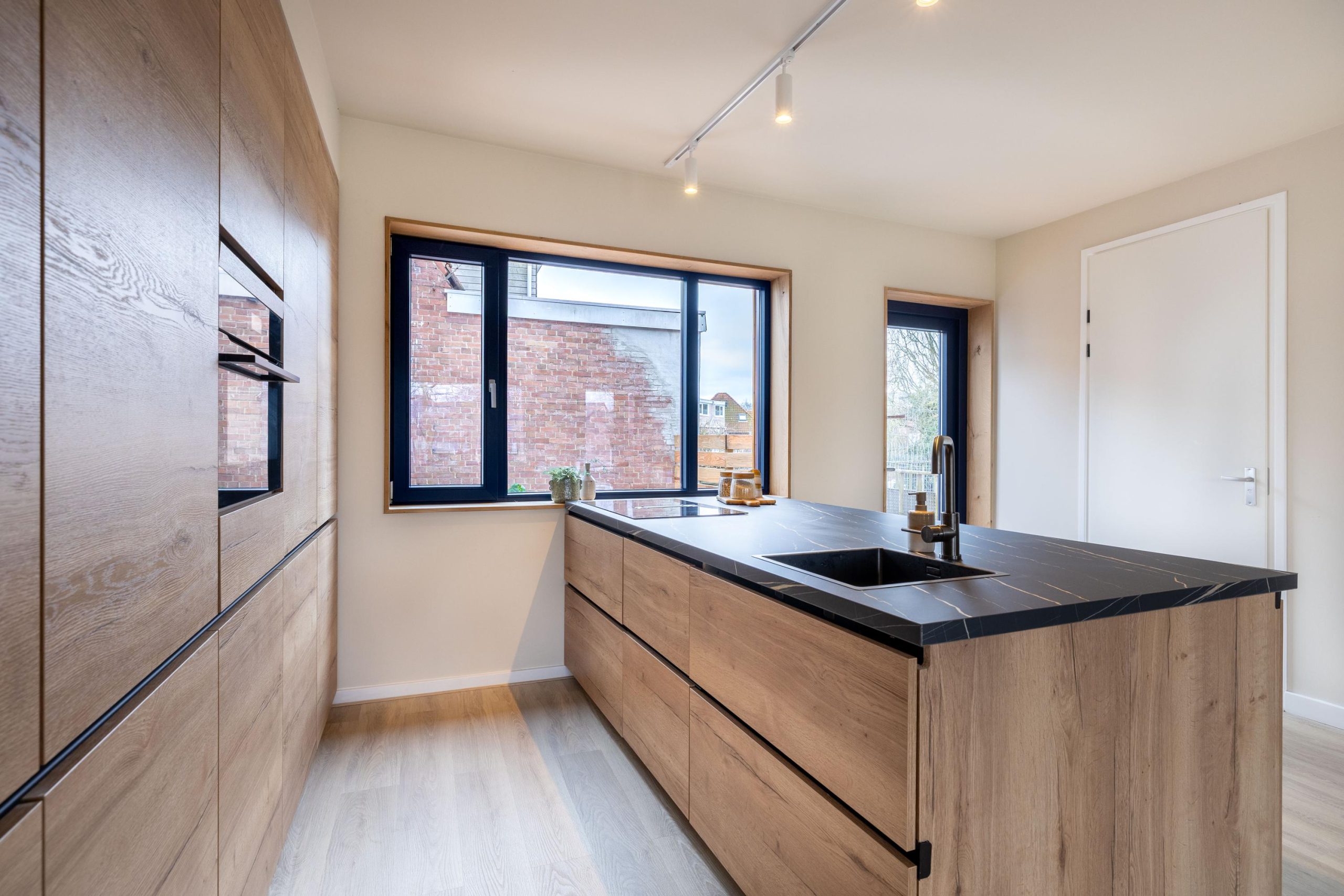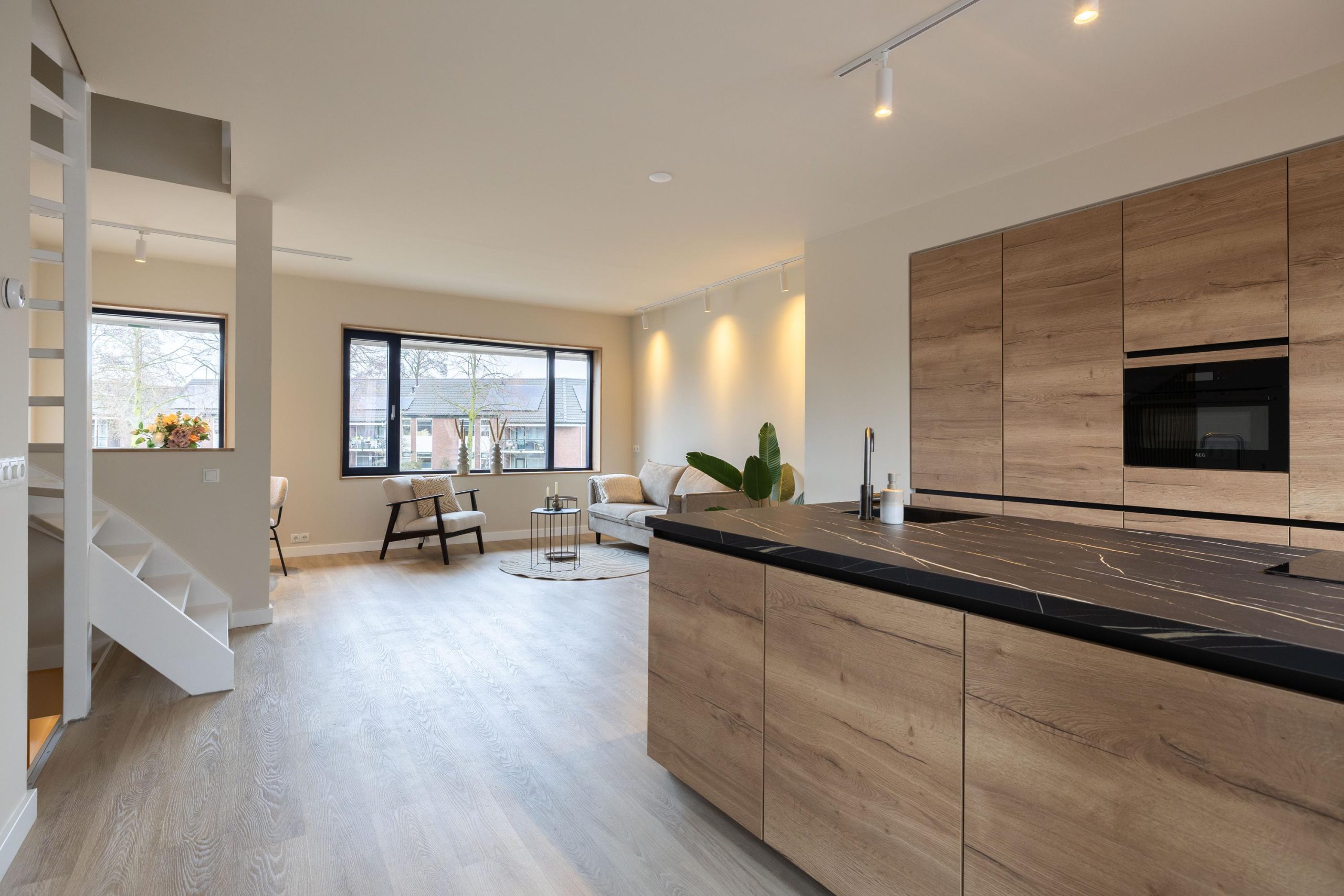 - Open leefkeuken met veel kastruimte en eikenhouten afwerking
