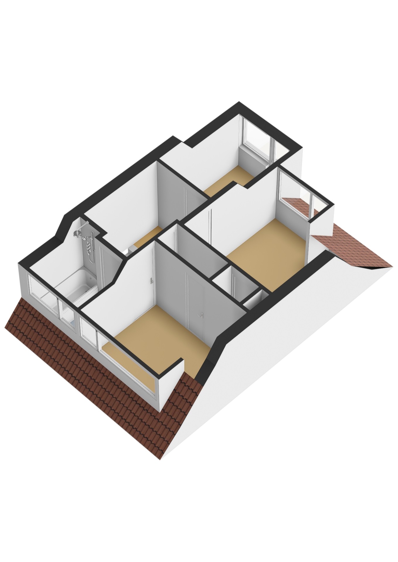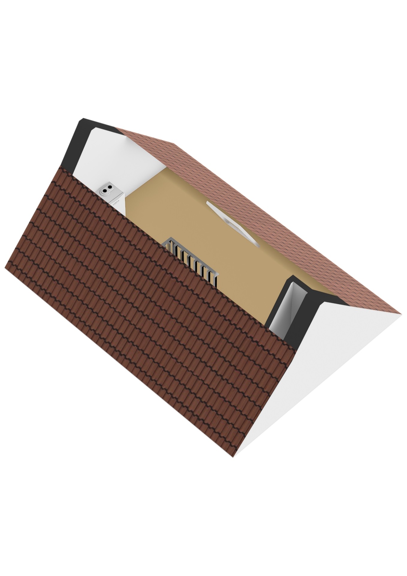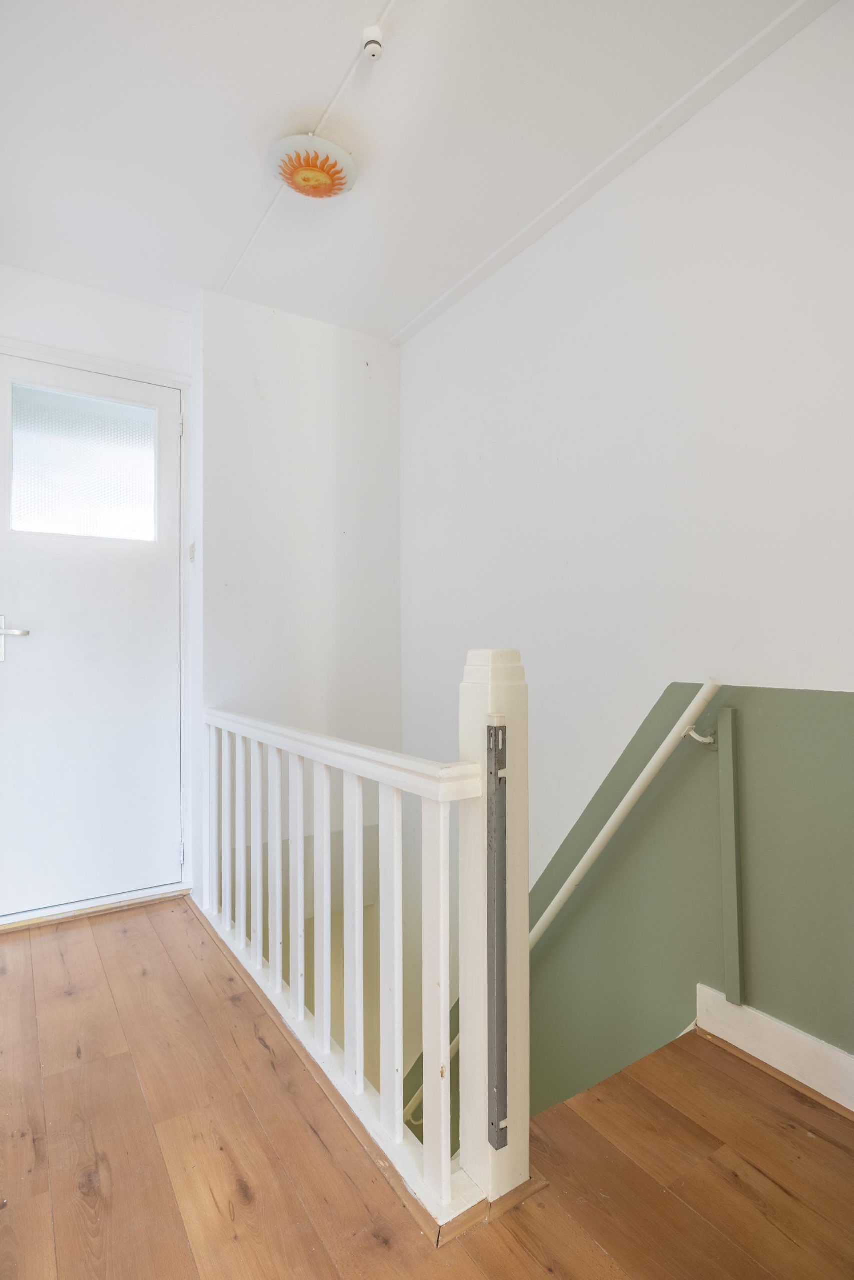 Via de vaste trap die achter een deur verstopt zit bereik je de zolder: een praktische bergzolder met mogelijkheden voor een extra kamer.