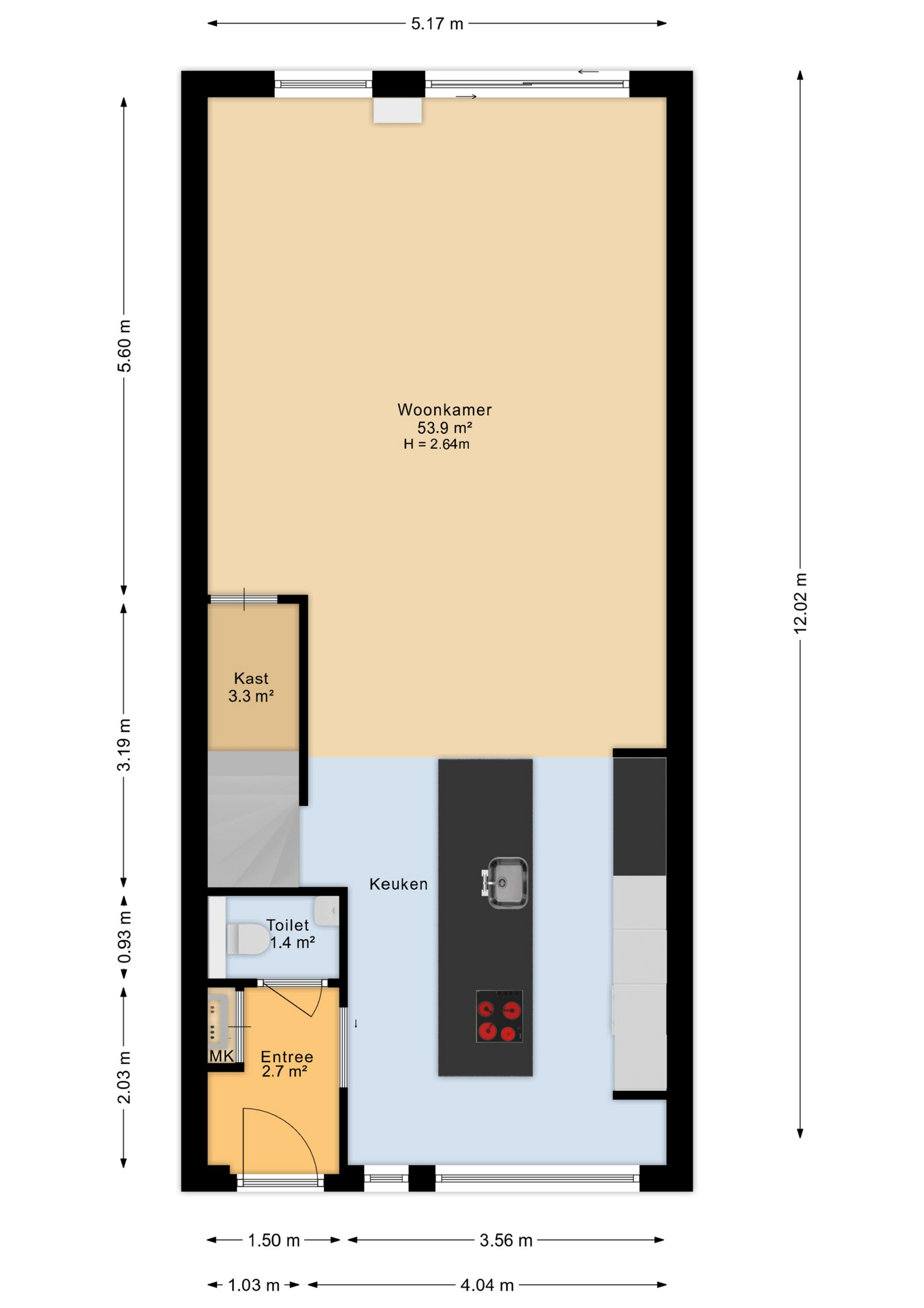 Uitbouw van 2,40 meter; woonkamer ruim 12 meter diep