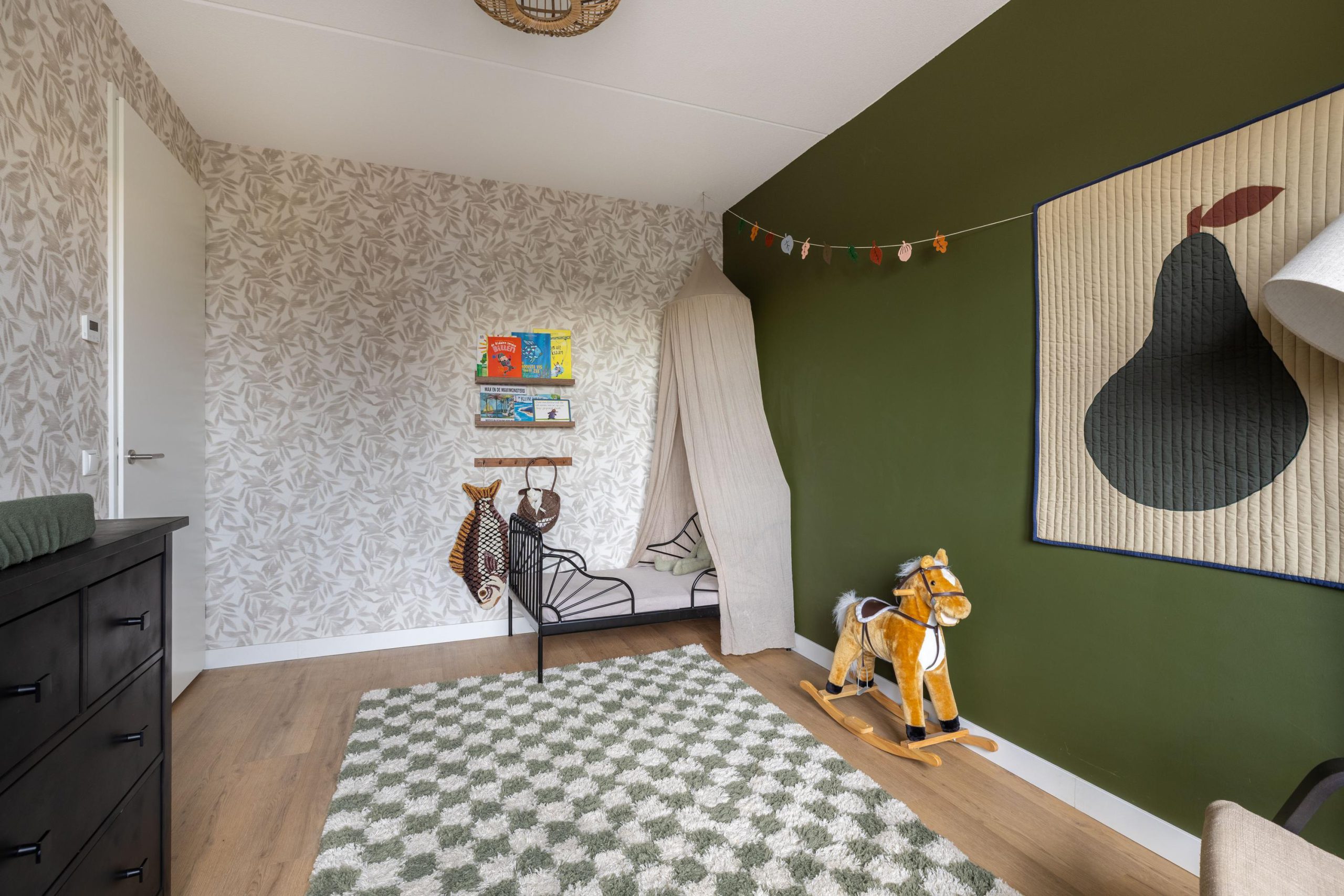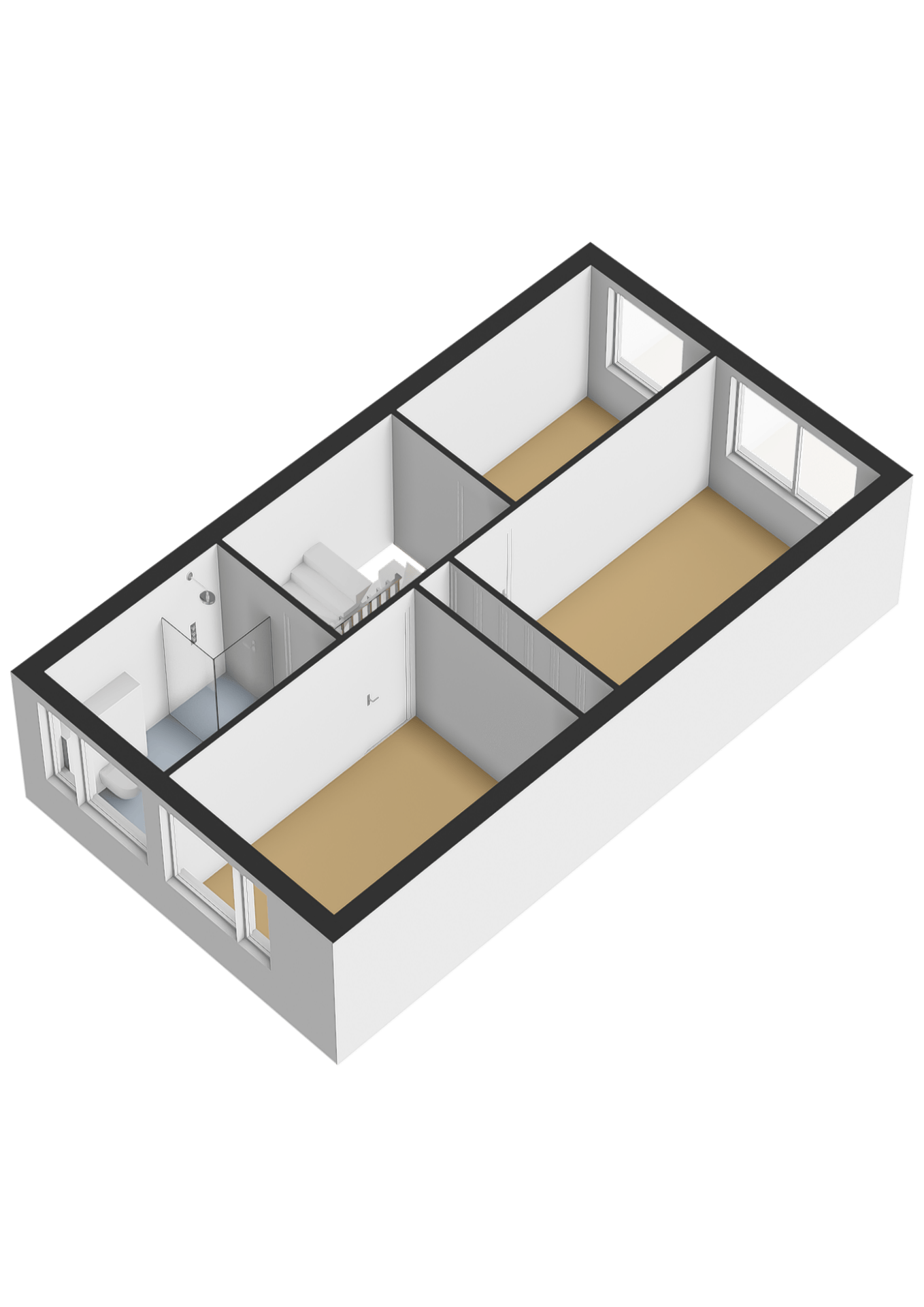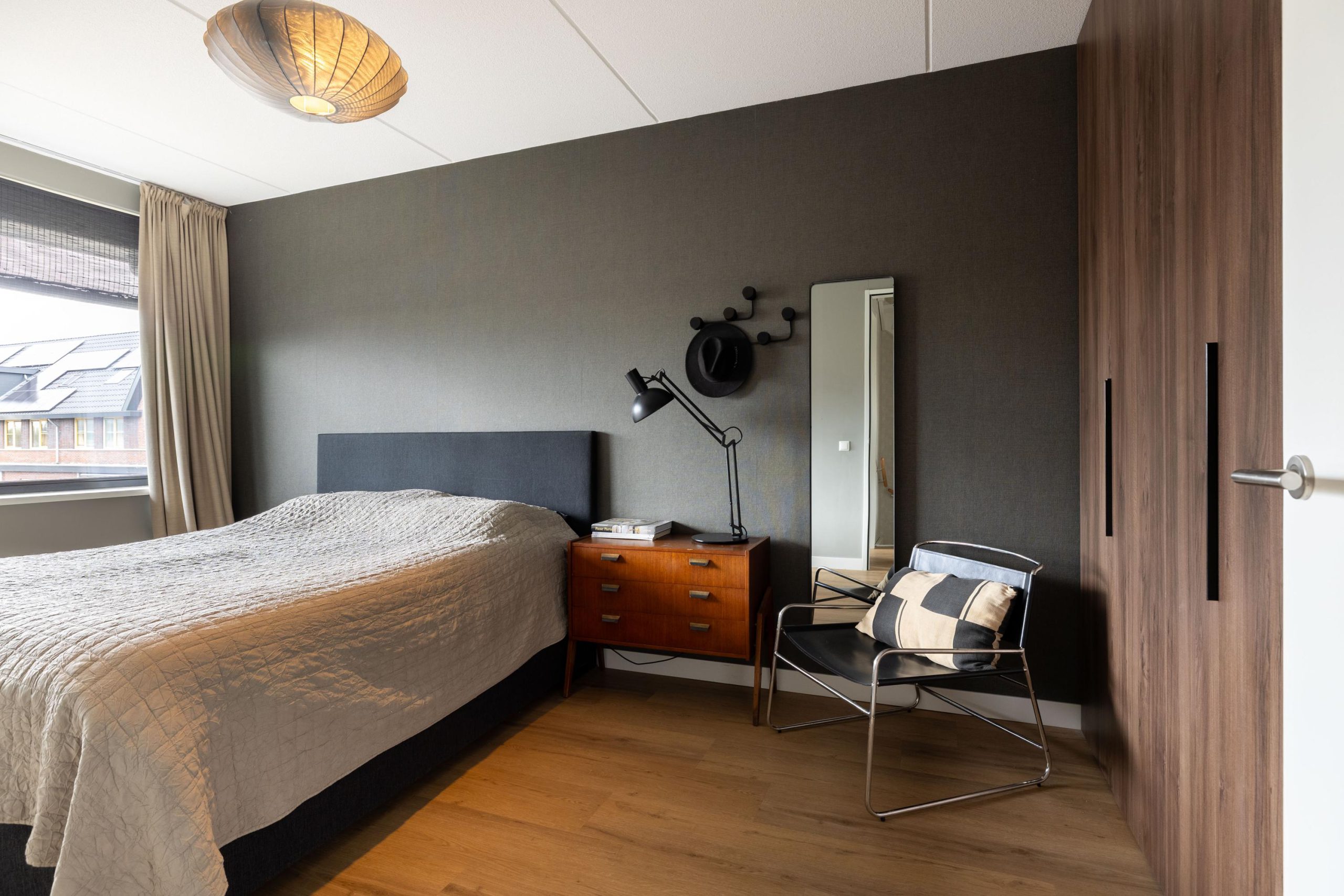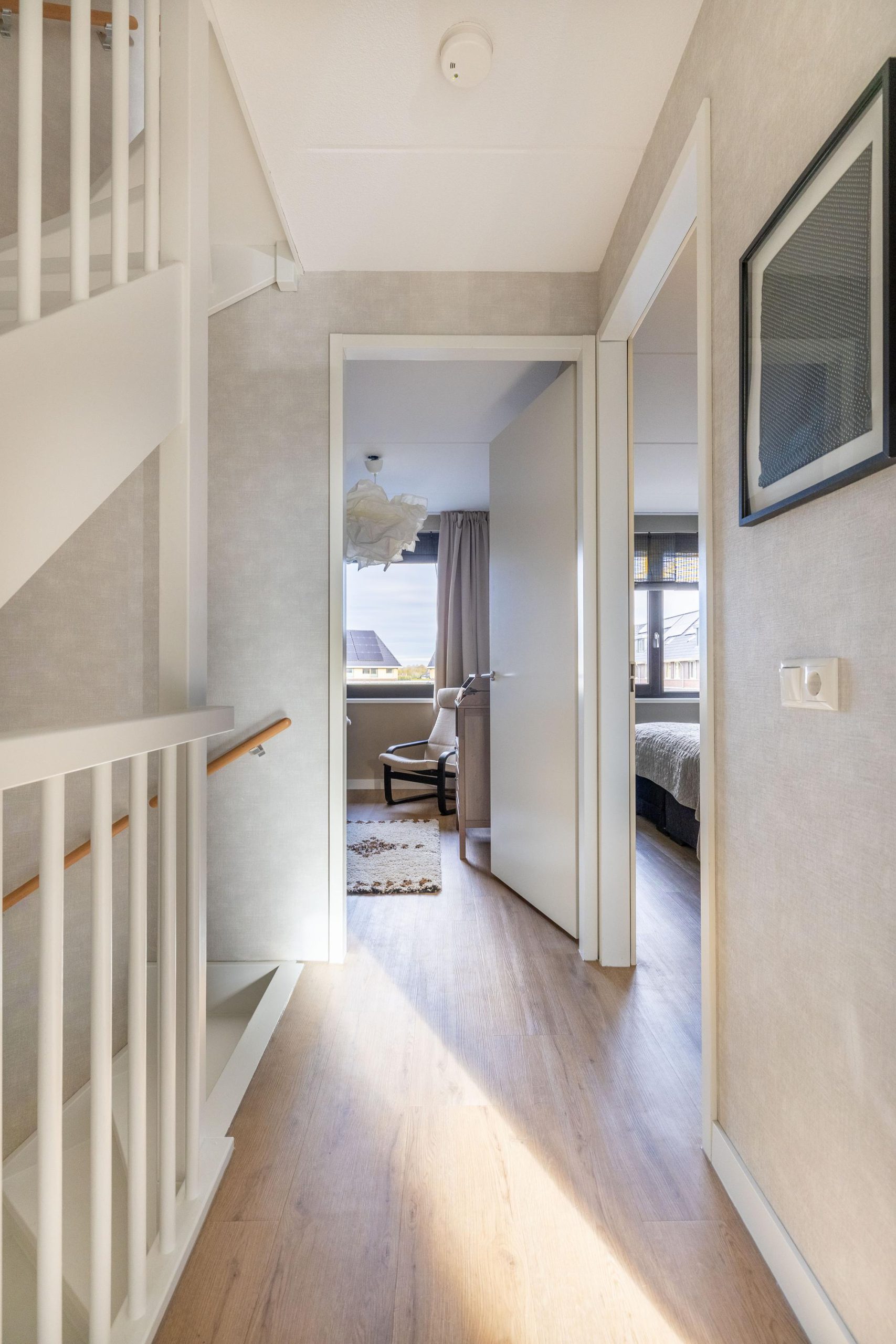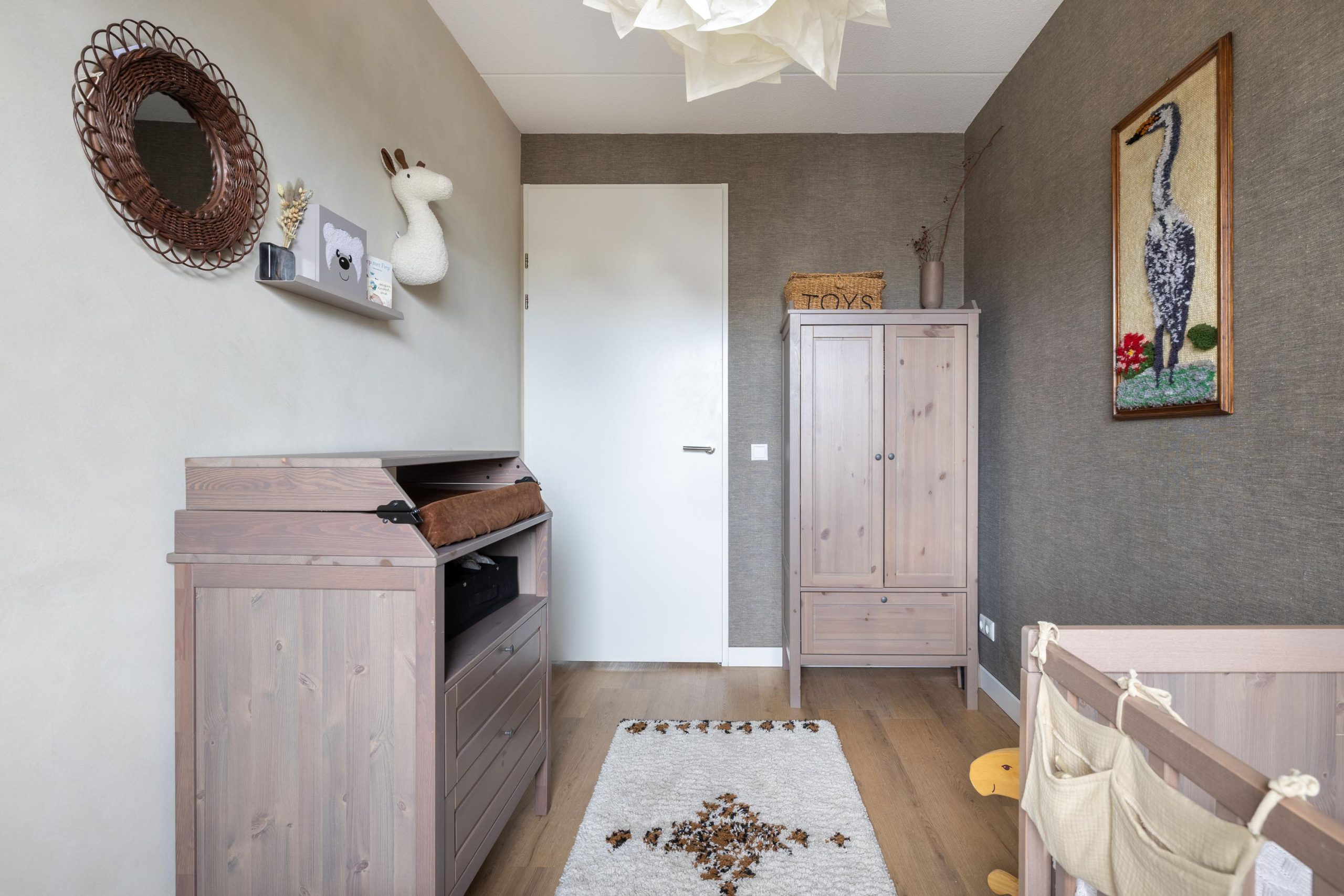 Ook hier is aan alles gedacht. Deze verdieping is volledig afgetimmerd en tot in detail afgewerkt, met twee extra slaapkamers en een berging waar de warmtepomp en het witgoed netjes zijn weggewerkt. De vloer is afgewerkt in visgraatmotief – een subtiele verwijzing naar de benedenverdieping en een mooi geheel door de hele woning.