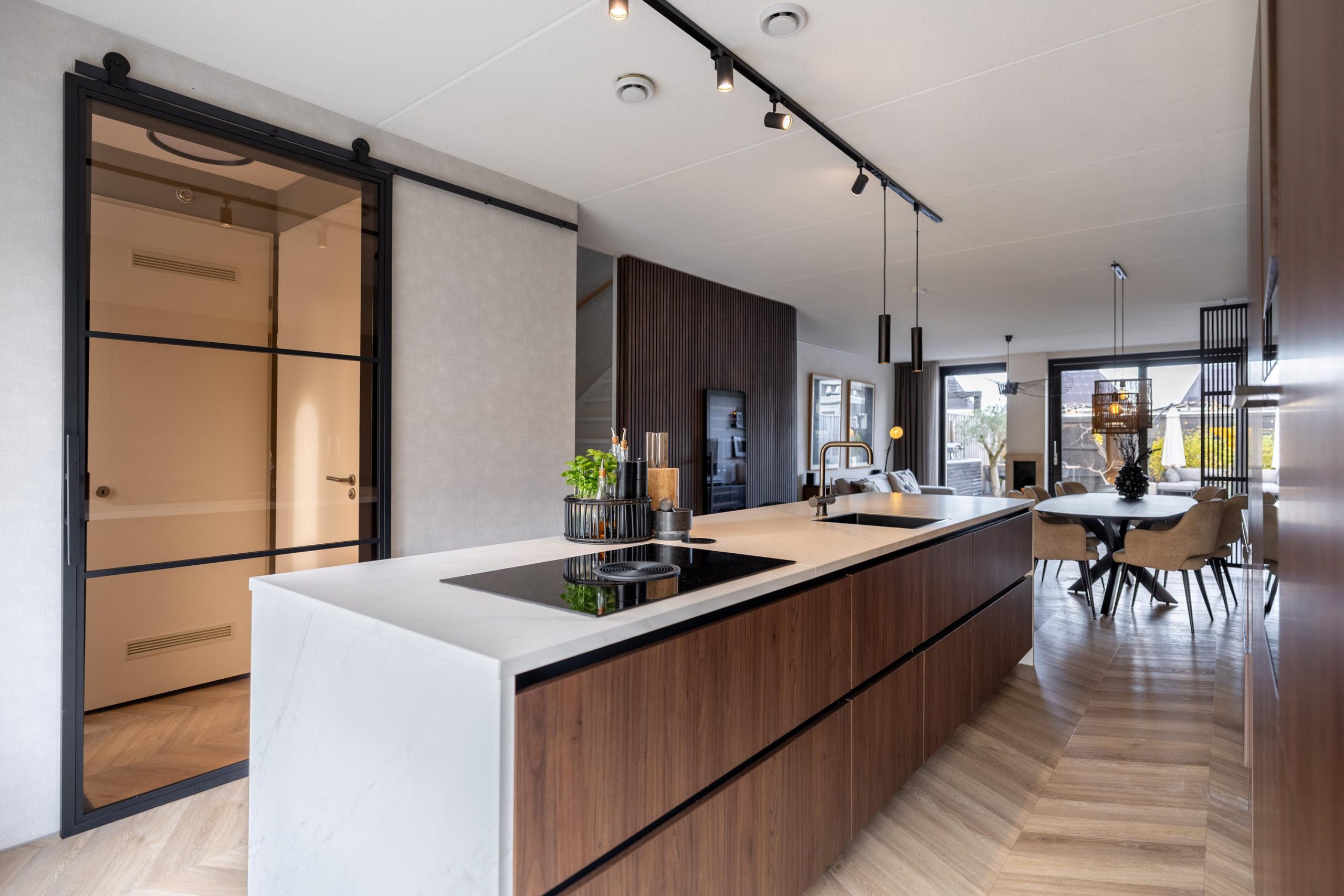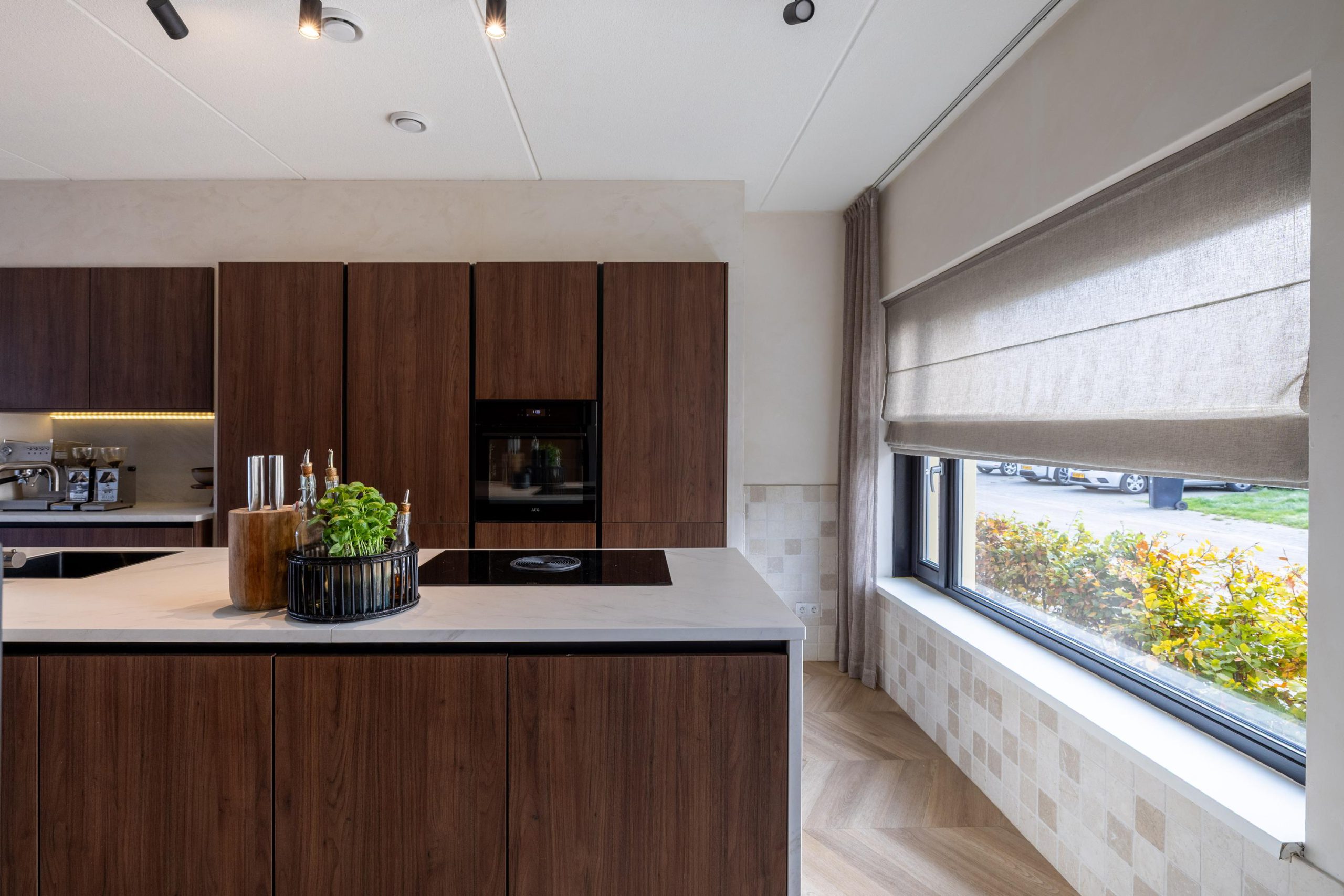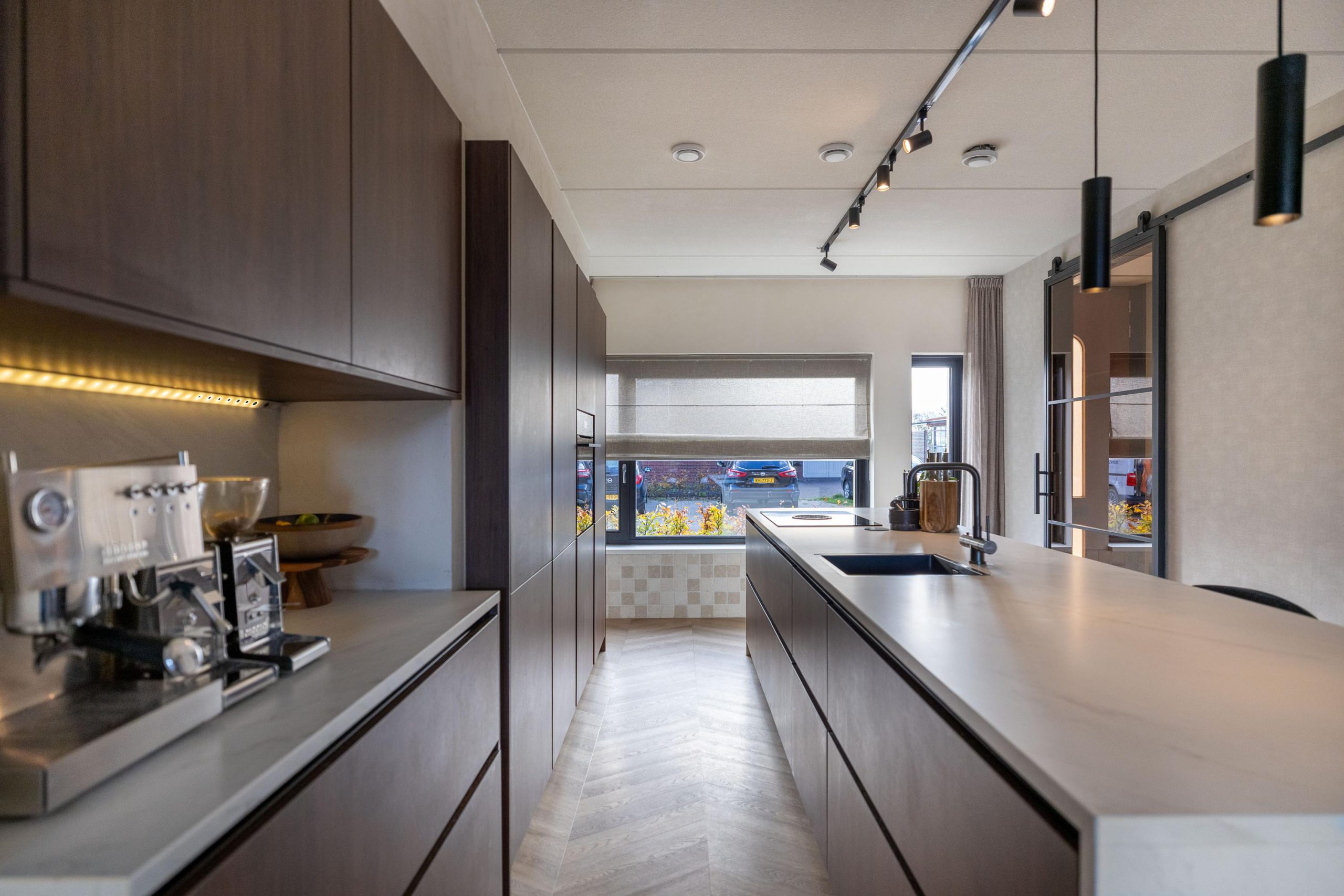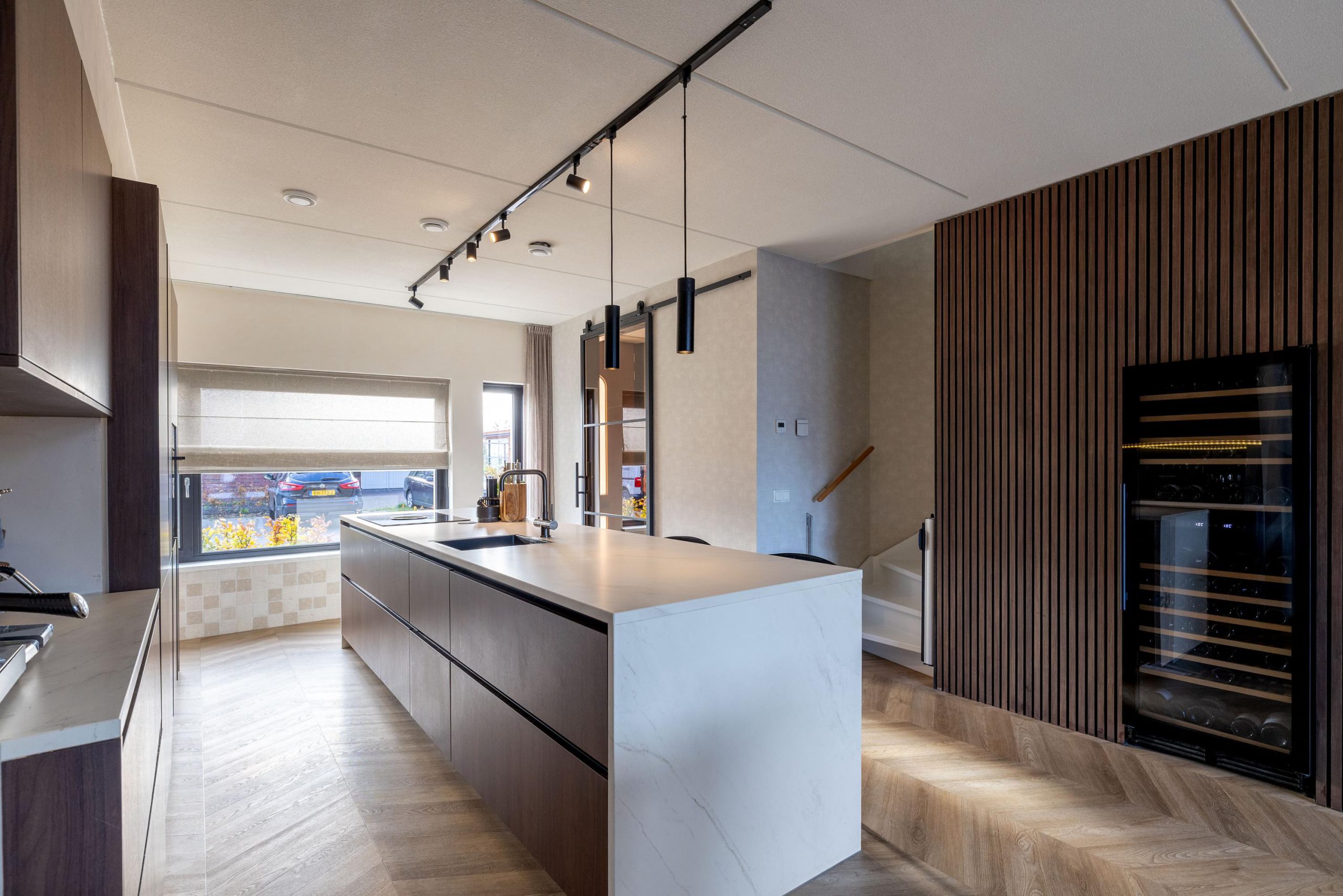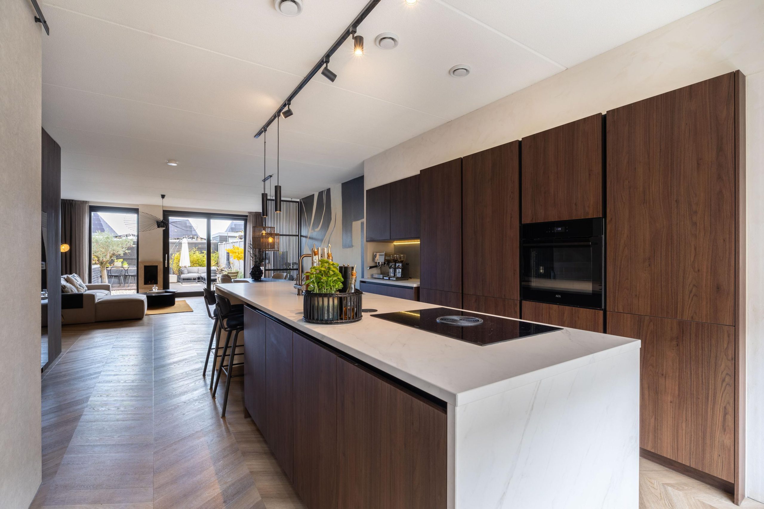 De keuken is een echte eyecatcher: modern van stijl, met een keramisch werkblad en een royaal kookeiland van maar liefst 3,6 meter. Perfect voor wie houdt van koken en gezelligheid. De wijnklimaatkast met plek voor 150 flessen wijn maakt het helemaal af. Ook staat er in de woonkamer een prachtige bio-ethanolhaard die meteen warmte en sfeer brengt.