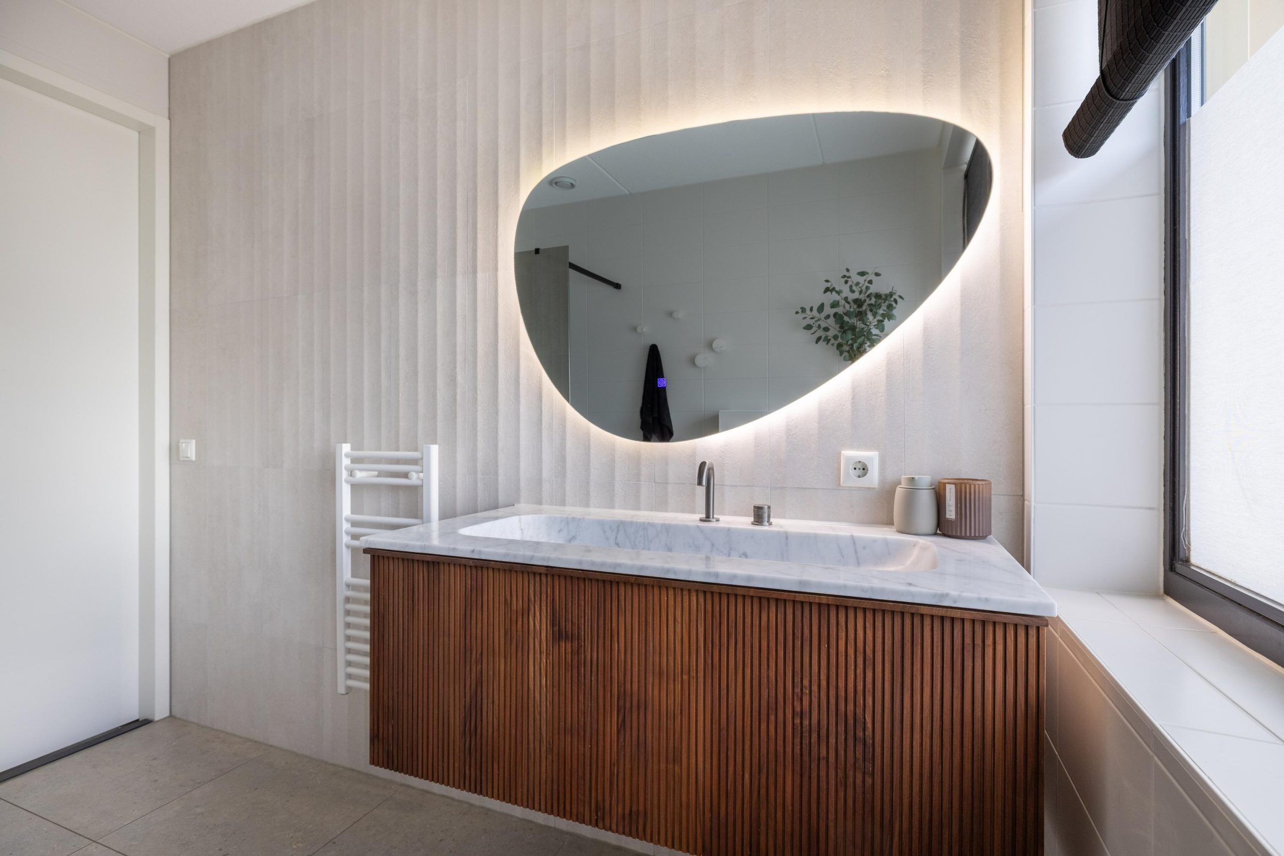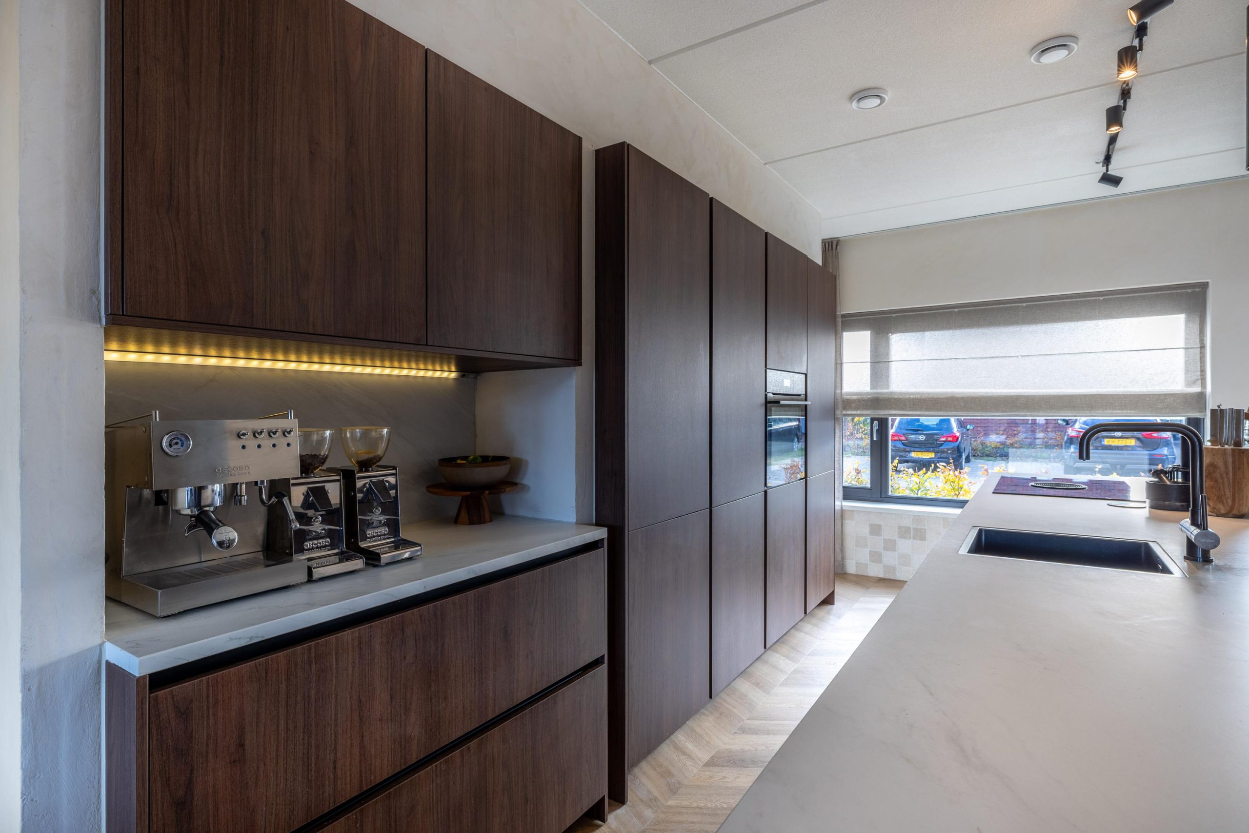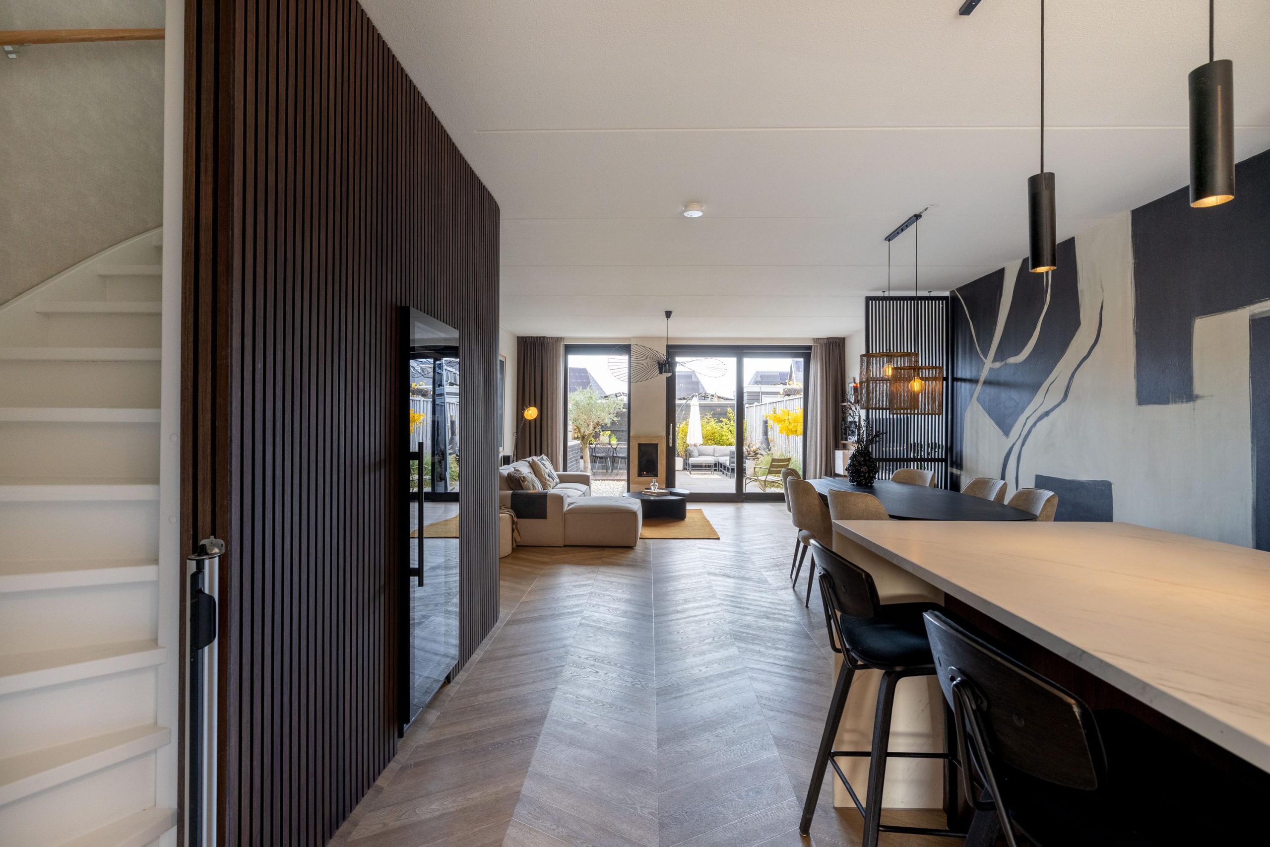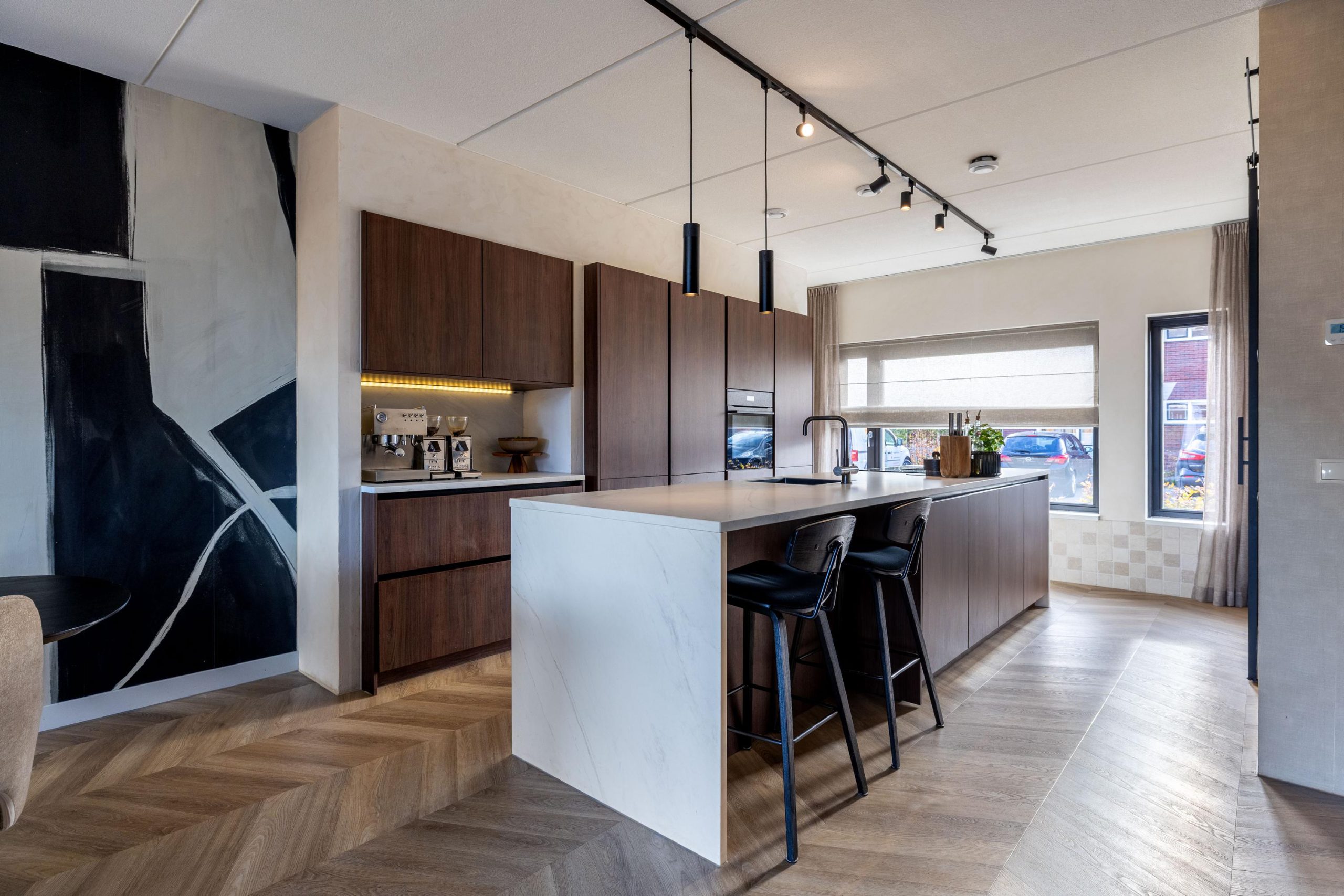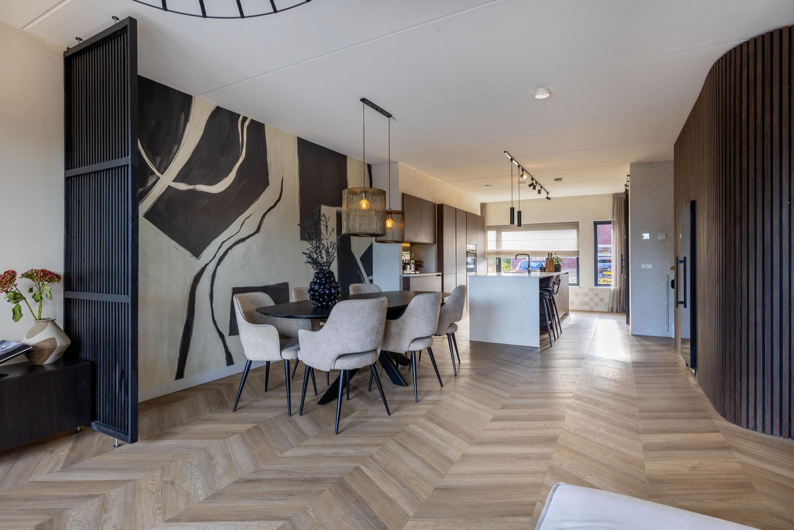 De keuken is een echte eyecatcher: modern van stijl, met een keramisch werkblad en een royaal kookeiland van maar liefst 3,6 meter. Perfect voor wie houdt van koken en gezelligheid. De wijnklimaatkast met plek voor 150 flessen wijn maakt het helemaal af. Ook staat er in de woonkamer een prachtige bio-ethanolhaard die meteen warmte en sfeer brengt.