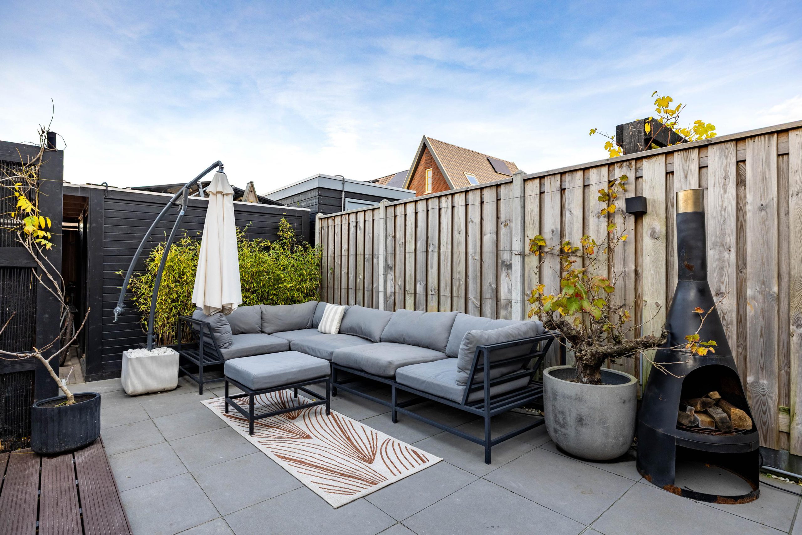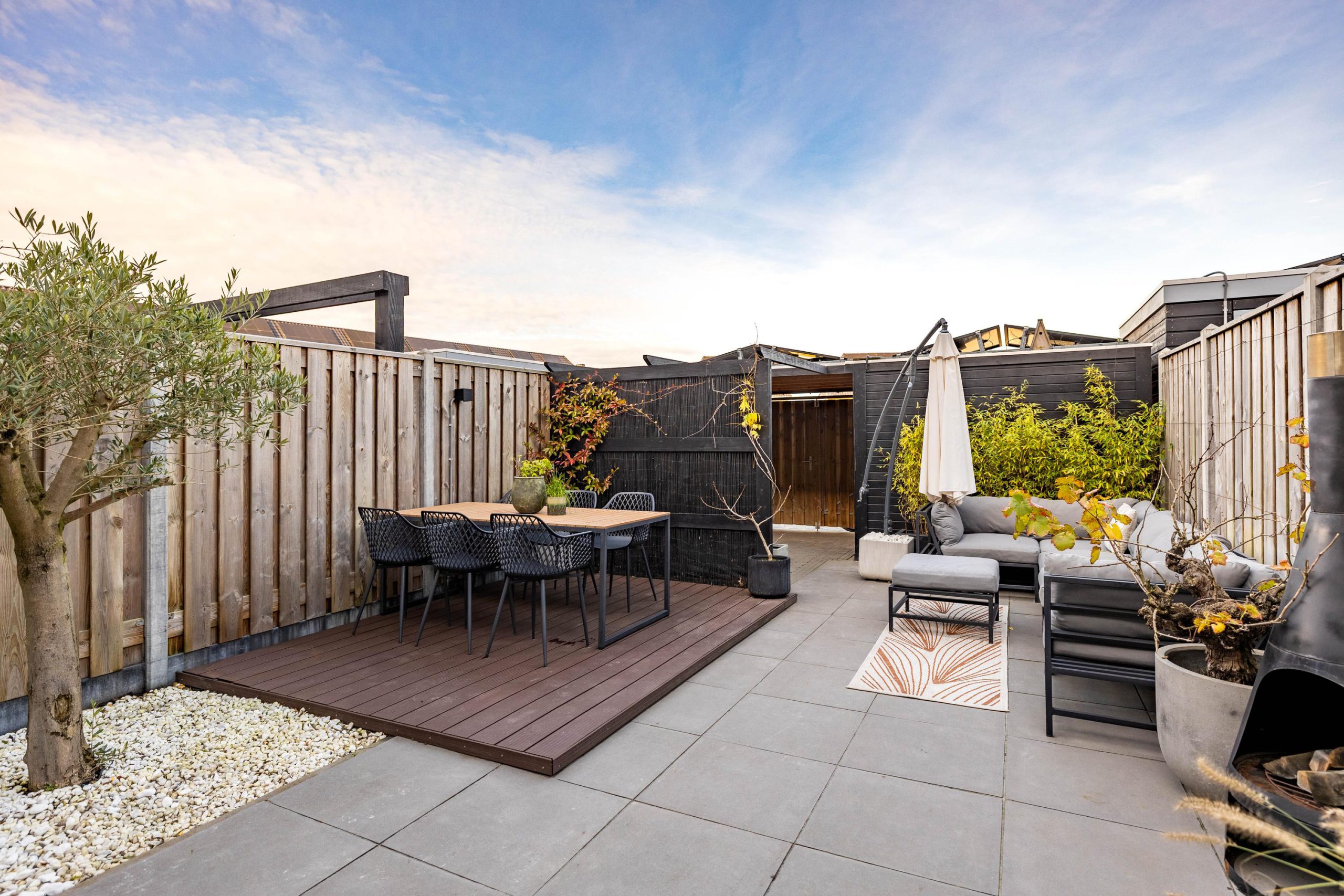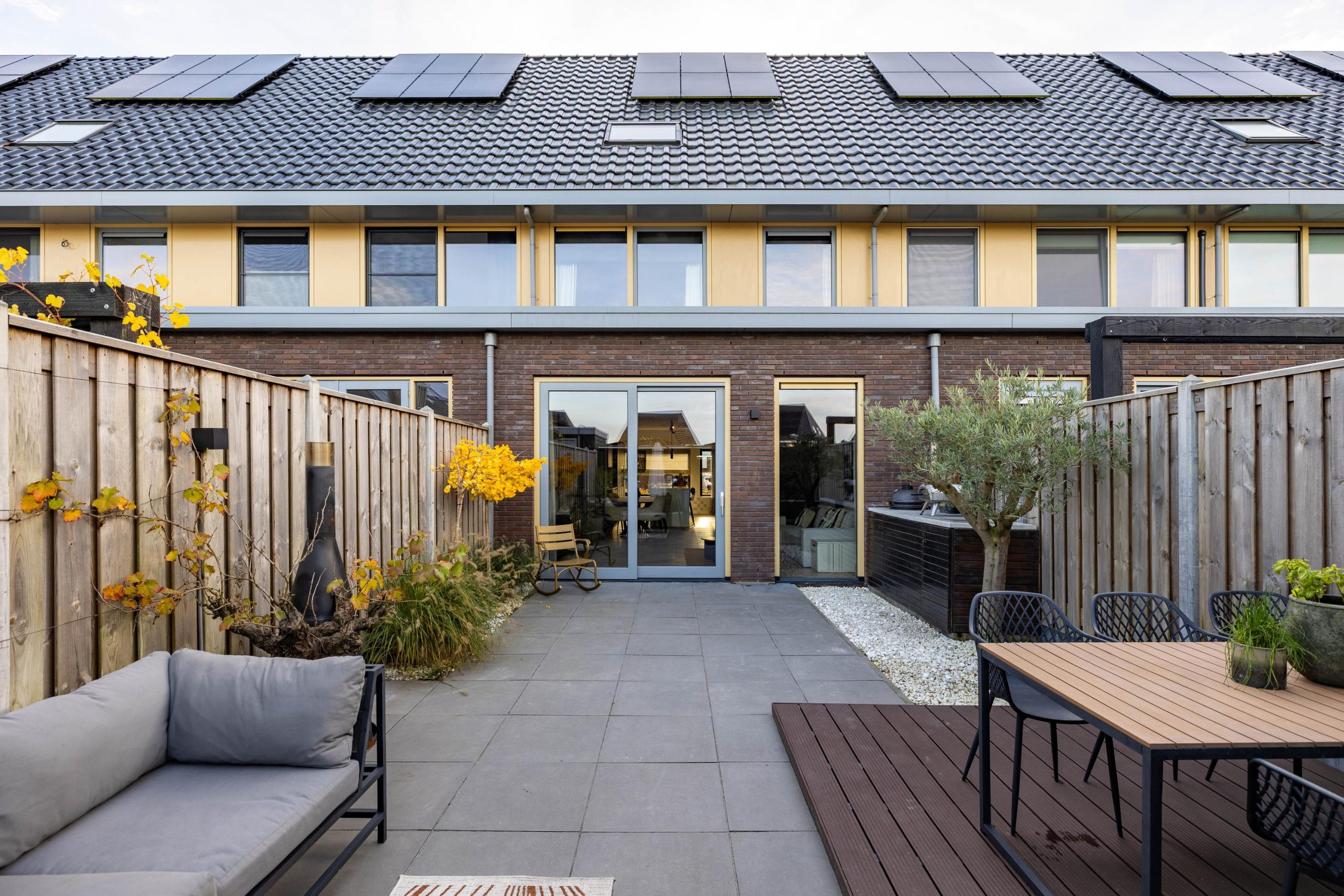 Via de achterpui loop je de tuin in, en daar wacht een echt buitenparadijs. De prachtige buitenkeuken vormt het hart van deze fijne buitenruimte: hier bereid je met gemak een zomerse maaltijd terwijl de kinderen spelen of vrienden aanschuiven met een glas wijn. De tuin is zorgvuldig aangelegd, met plek voor een ruime eettafel, een loungebank en volop groen. Dankzij de gunstige ligging en het vrije gevoel aan de rand van de wijk is dit een plek waar je graag de lange zomeravonden doorbrengt – een verlengstuk van je woonkamer, maar dan onder de open lucht.
