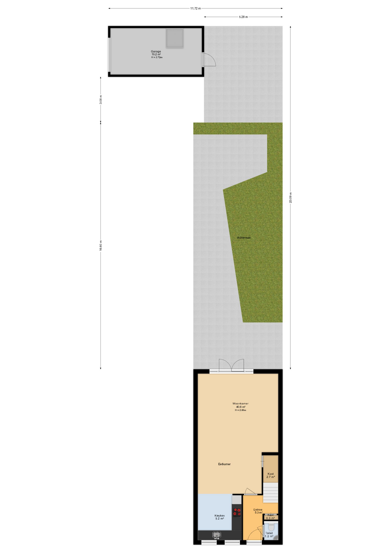 - Parkeren op eigen terrein voor 2 auto’s + garage met een ruime vliering