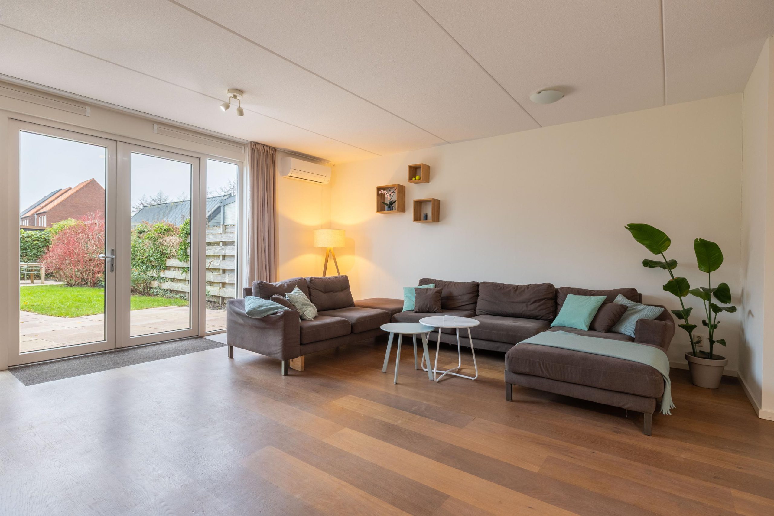Je komt binnen in de hal met vloerverwarming, net als in de woonkamer, keuken en het toilet op de begane grond. De massief houten vloer voelt warm aan en combineert perfect met het moderne afwerkingsniveau. De woonkamer is heerlijk licht en heeft openslaande deuren naar de tuin – volledig uitgevoerd in onderhoudsarm kunststof, net als de kozijnen in de rest van de woning.
