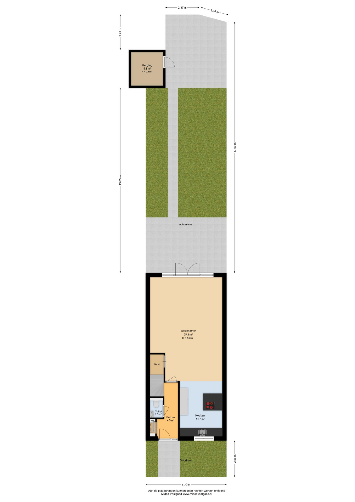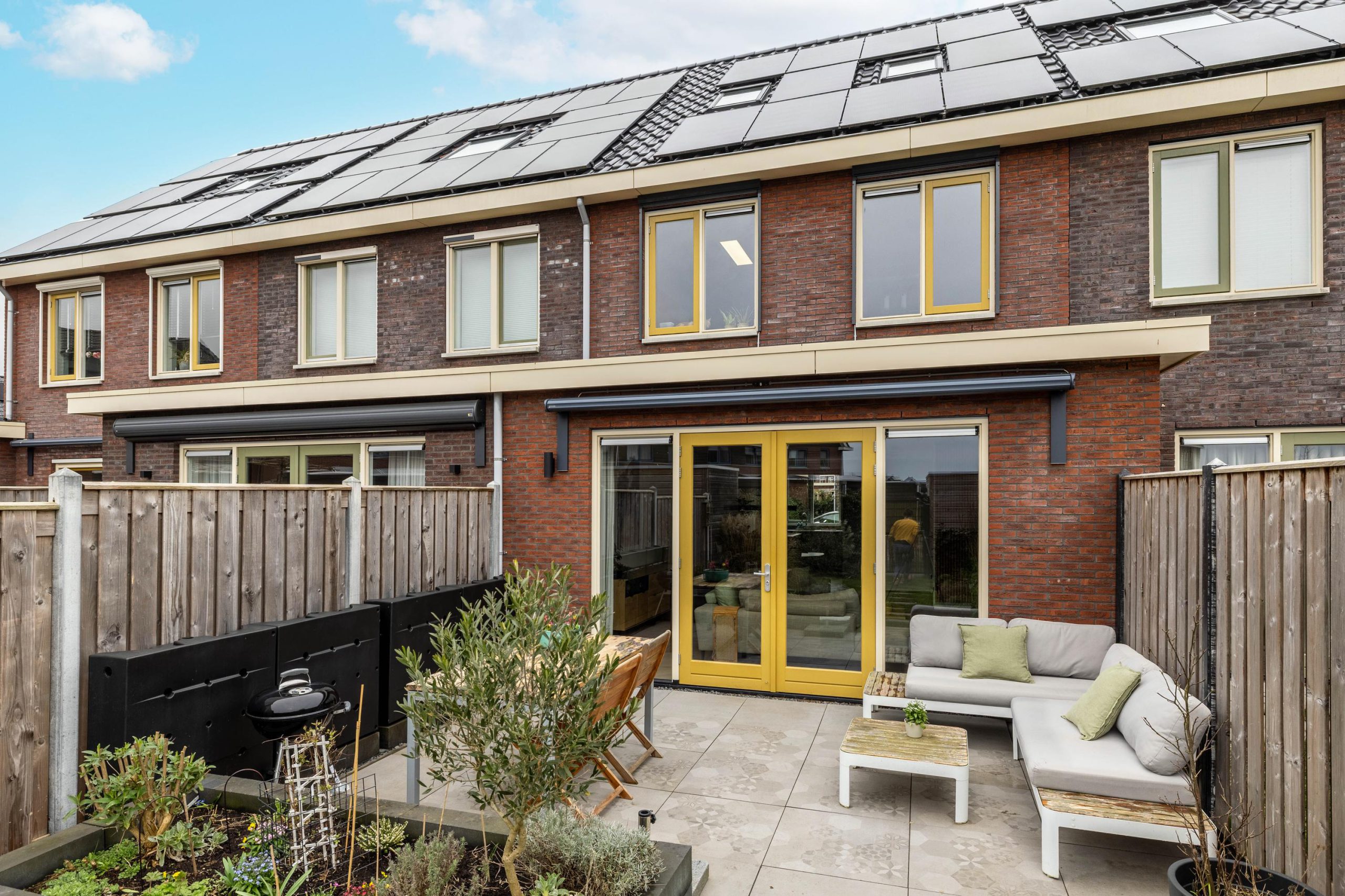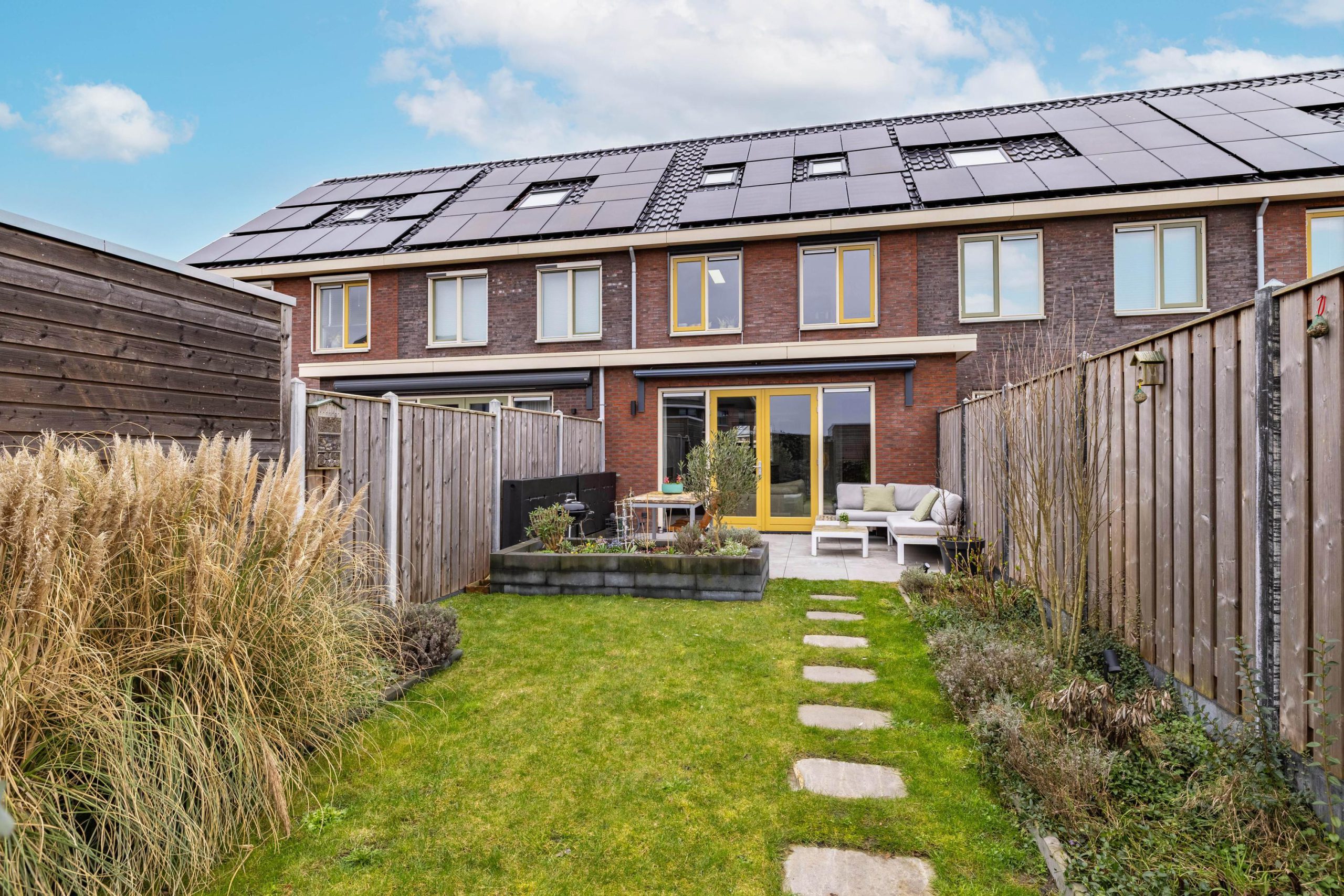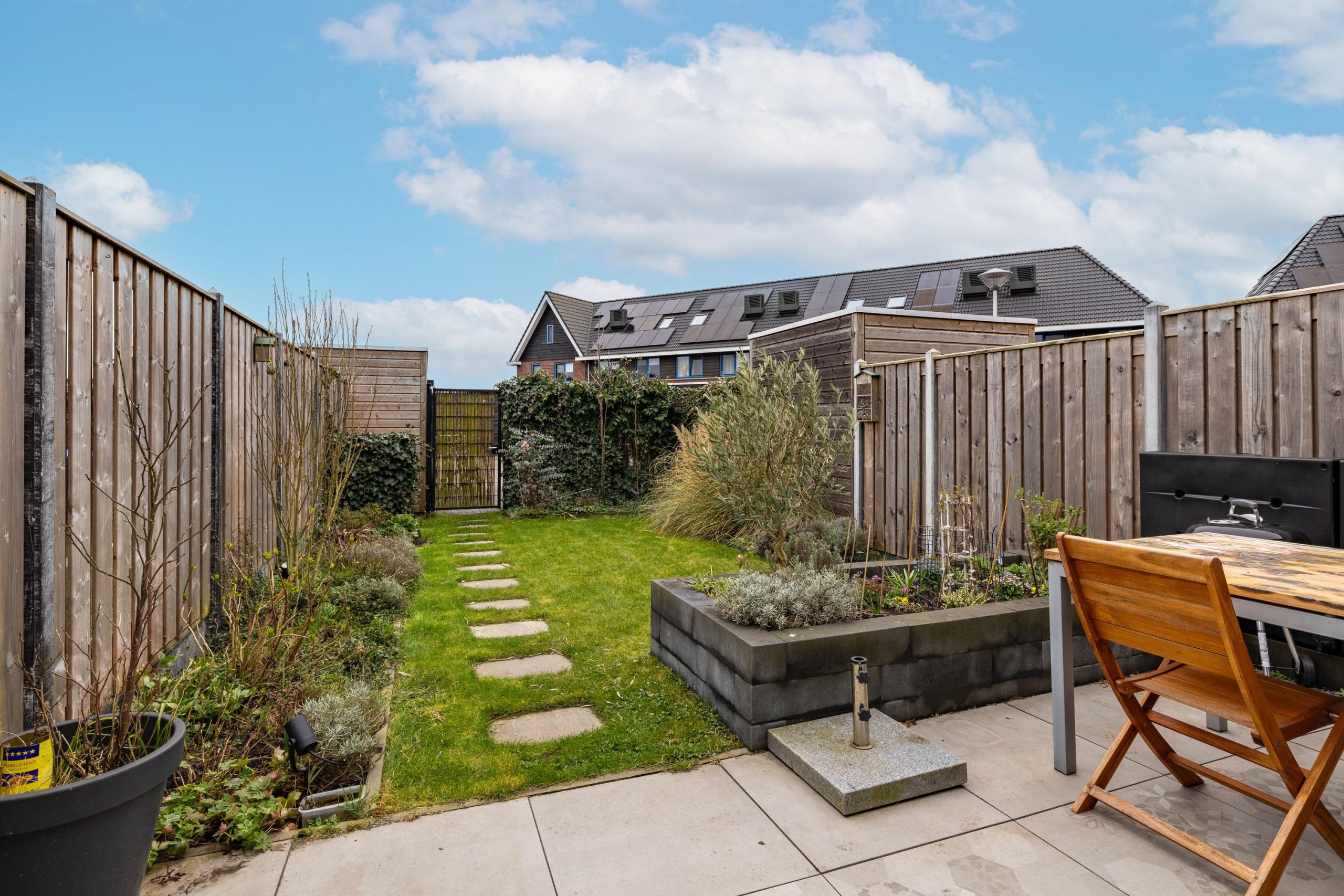 De achtertuin ligt op het zuidwesten en is daarmee perfect gepositioneerd voor zonliefhebbers. Hier geniet je tot in de avond van het buitenleven. De tuin is netjes aangelegd en voorzien van een zonnescherm, wat zorgt voor extra verkoeling op de warme dagen.