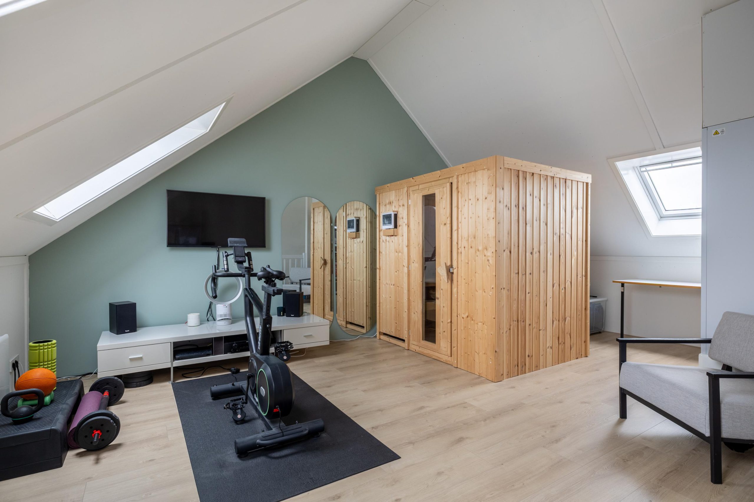 - Sauna en zeer lichte zolder met drie dakramen