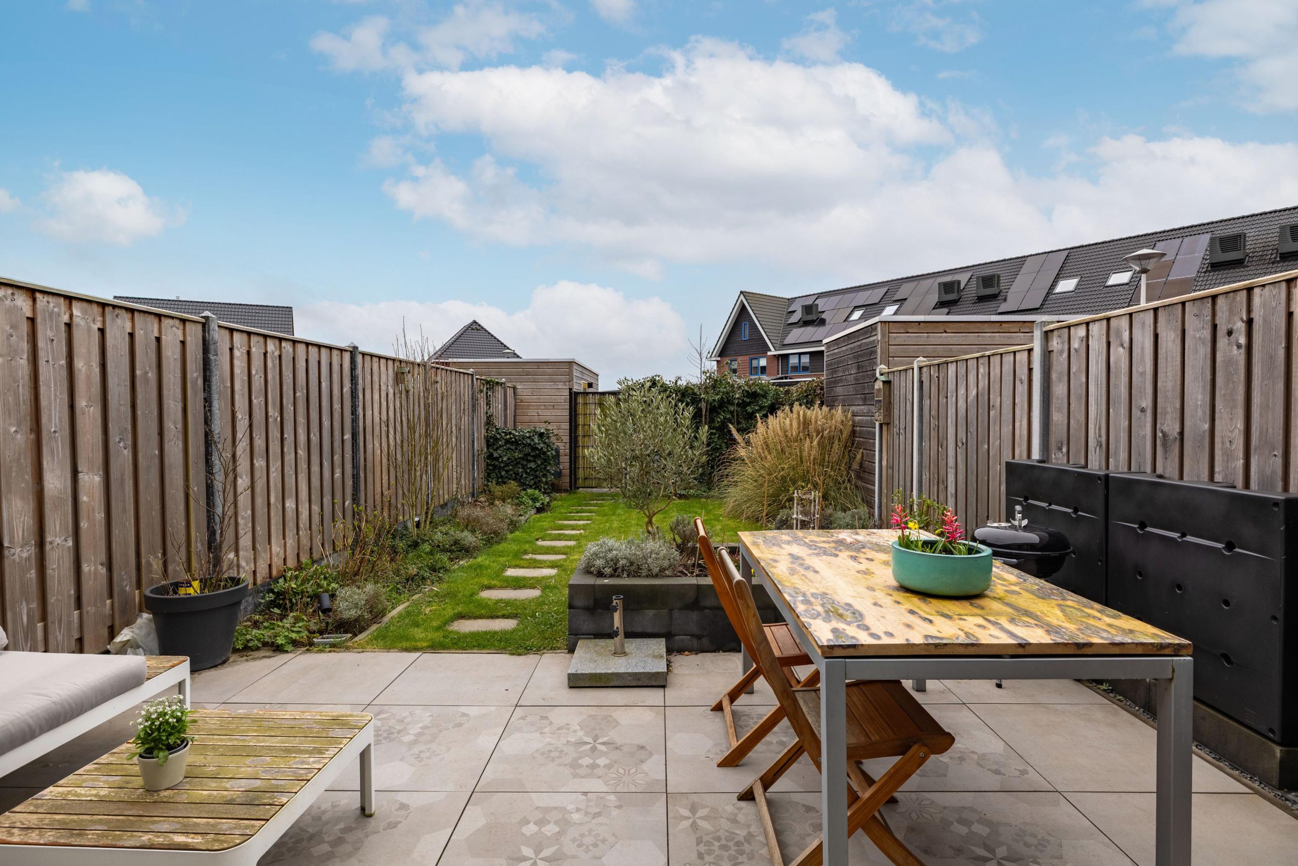 - Tuin op het zuidwesten met zonnescherm