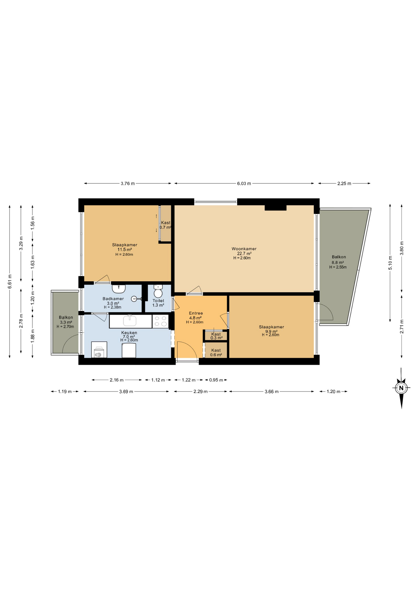 Het appartement beschikt over 2 slaapkamers. De grootste slaapkamer heeft een handige inbouwkast; de tweede kamer is ideaal als logeerkamer, werkkamer of hobbyruimte.