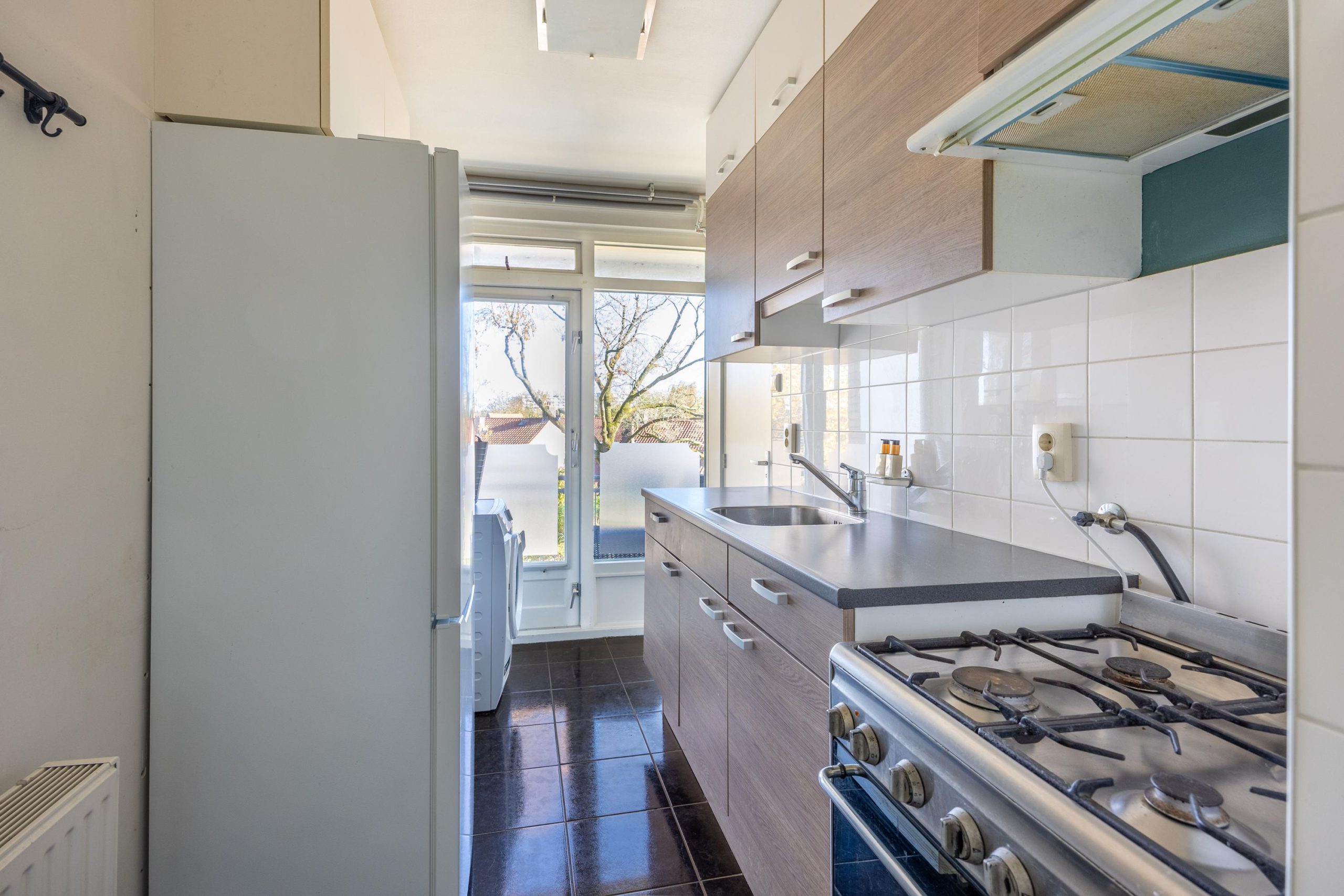 De keuken is praktisch ingericht en voorzien van een Remeha cv-ketel uit 2024. Ook is hier de aansluiting voor de wasmachine aanwezig. Een fijne, functionele plek die je eenvoudig naar eigen smaak kunt moderniseren.