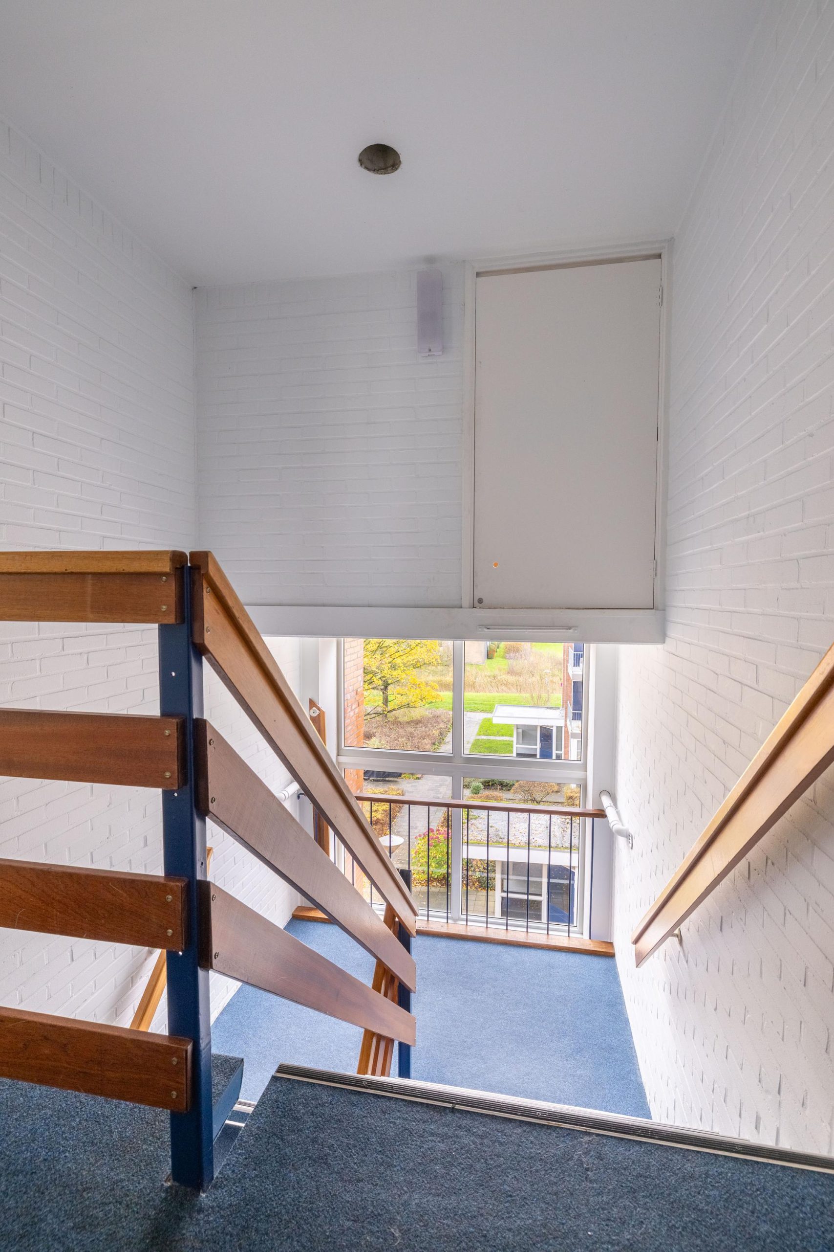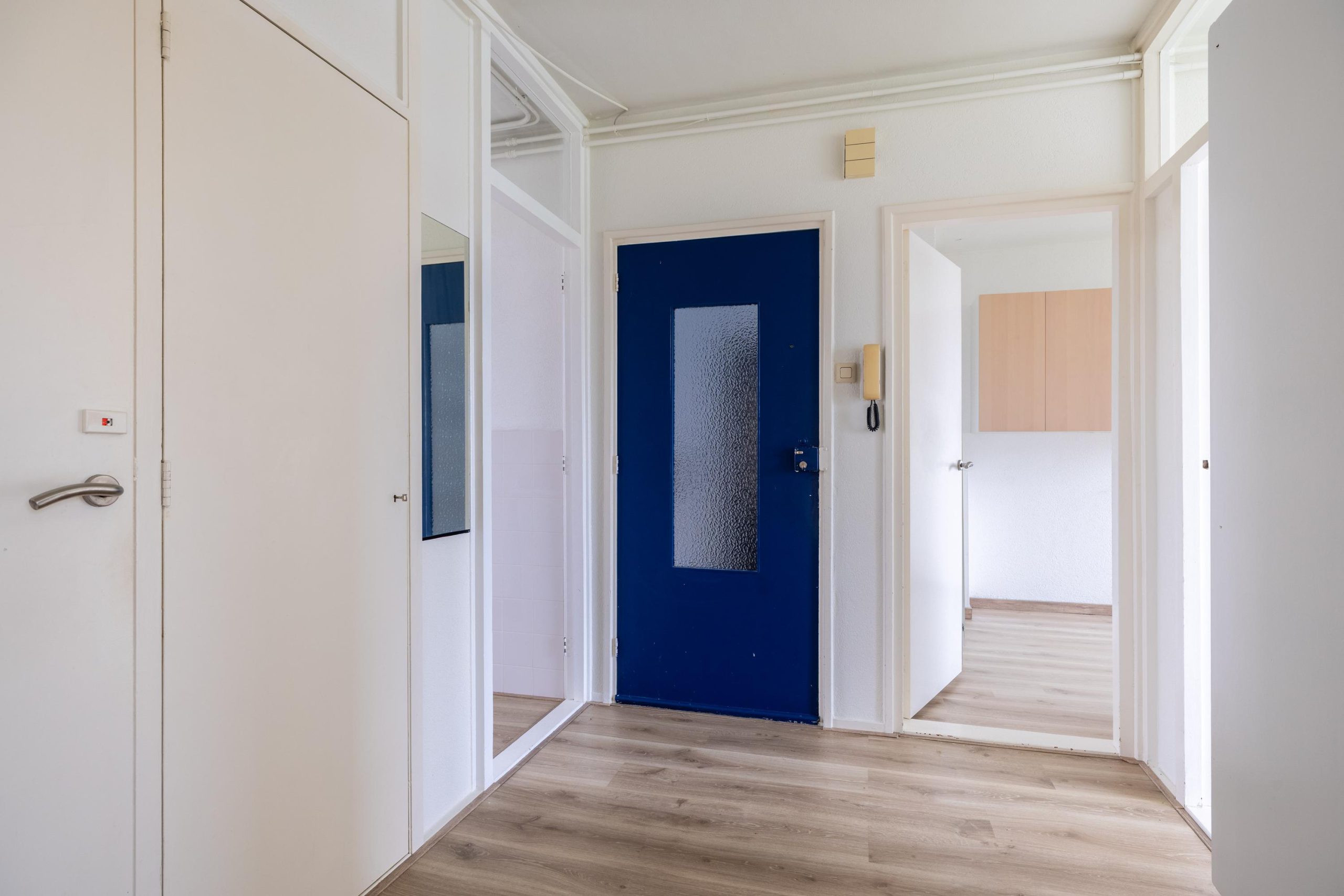 Via het portiek bereik je de voordeur van het appartement. Binnen stap je de hal in: overzichtelijk, logisch ingedeeld en met toegang tot alle vertrekken.