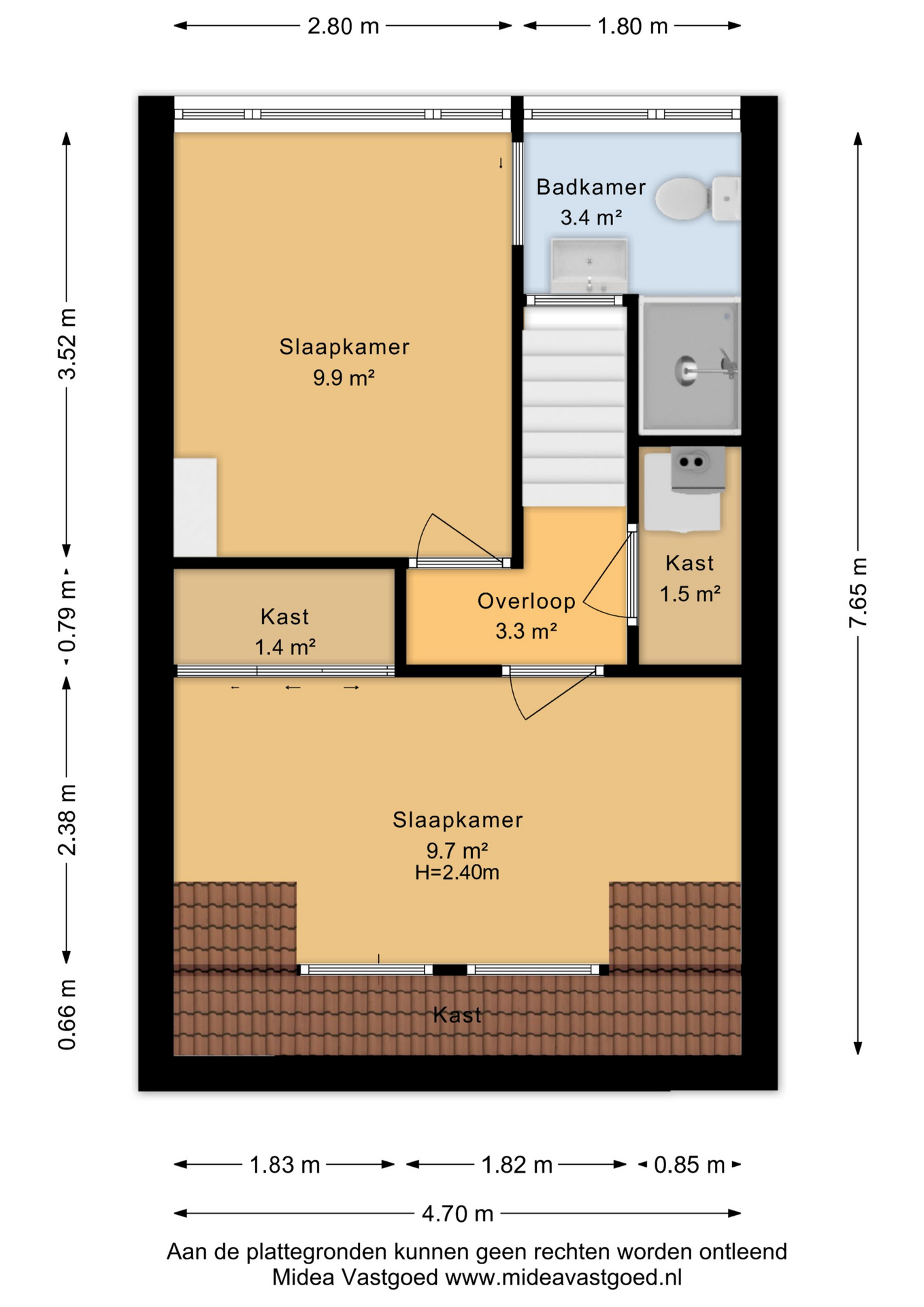 Op de eerste verdieping vind je twee fijne slaapkamers, elk met een prettige lichtinval en een verzorgde uitstraling. De master bedroom voelt ruim en comfortabel aan en heeft als extra pluspunt de directe verbinding met de badkamer, wat zorgt voor net dat beetje extra gemak en privacy.