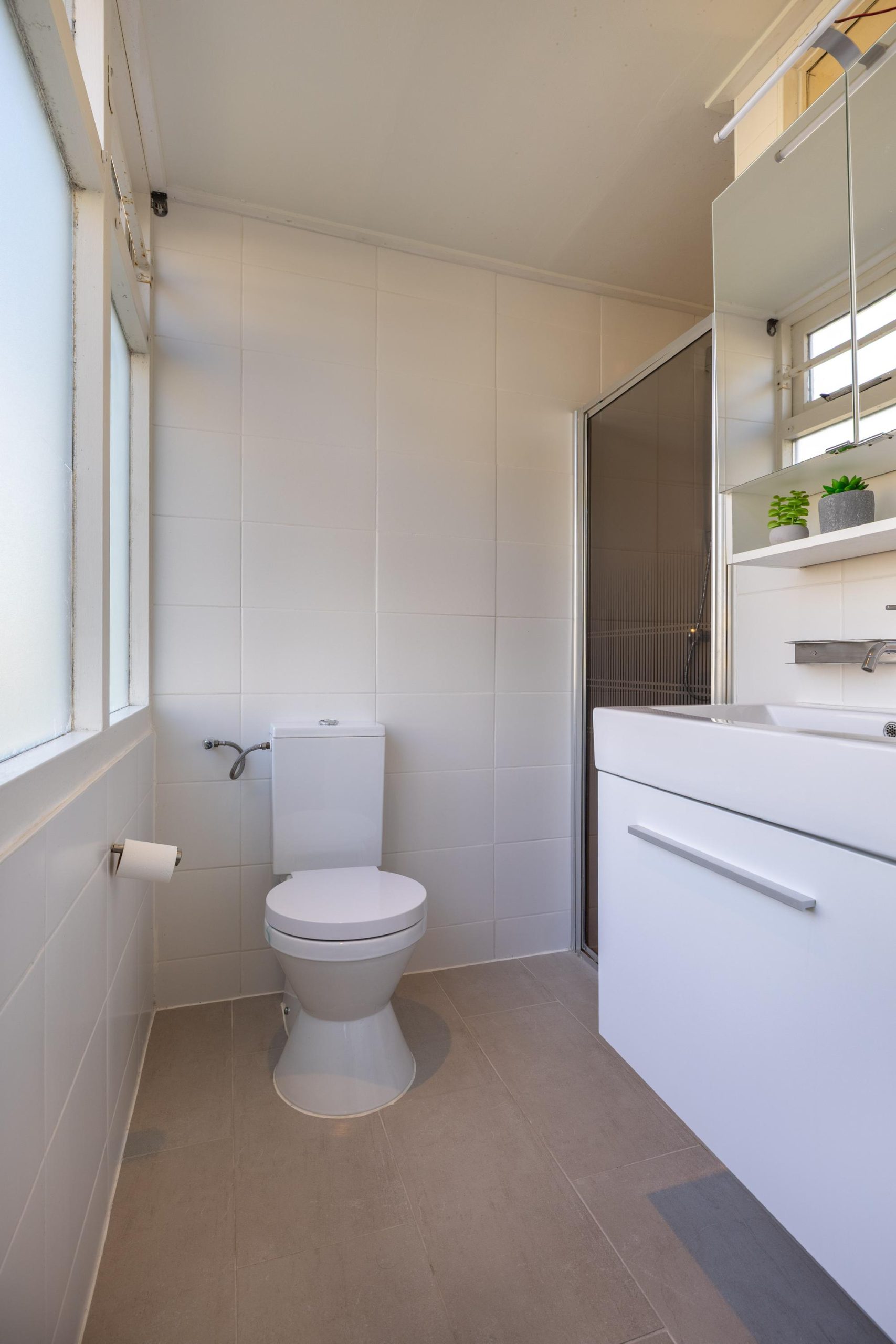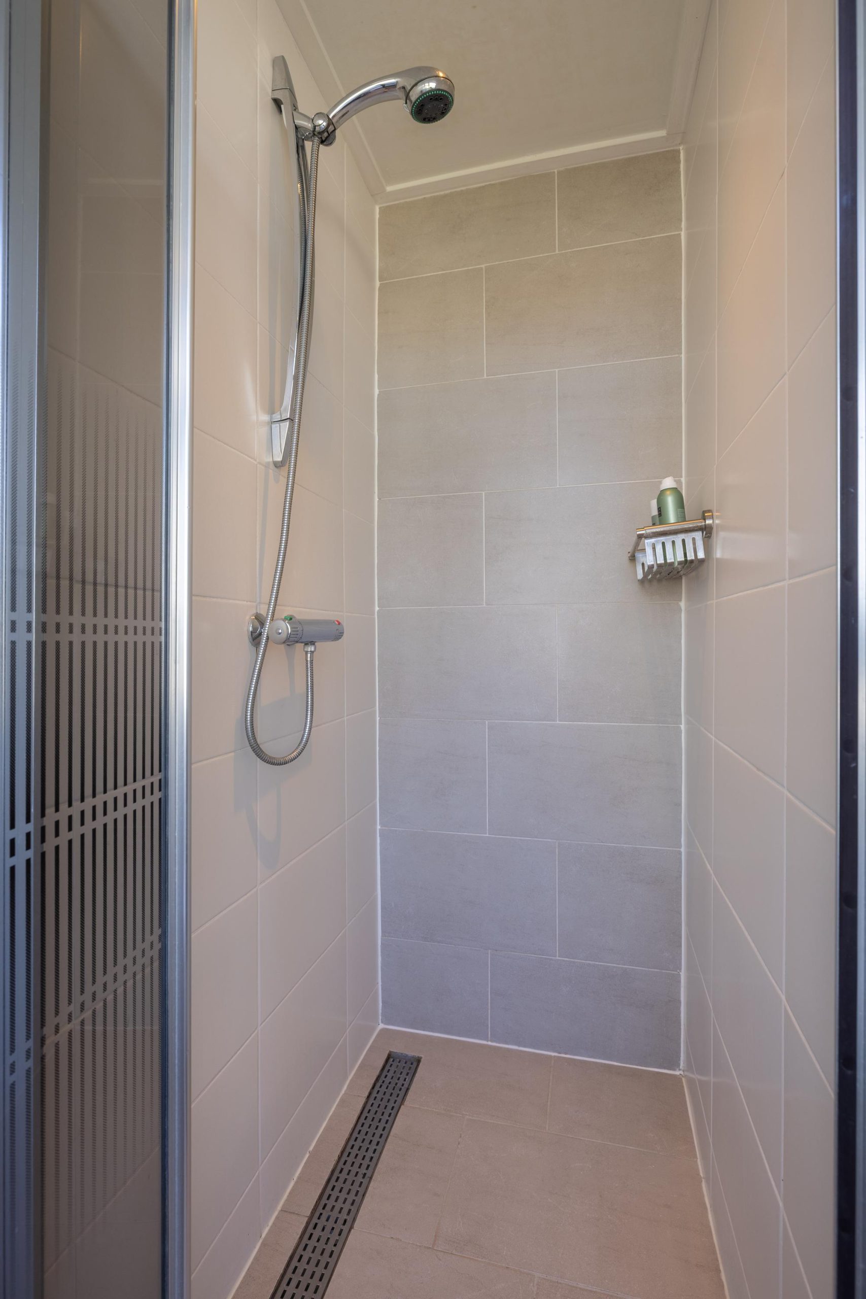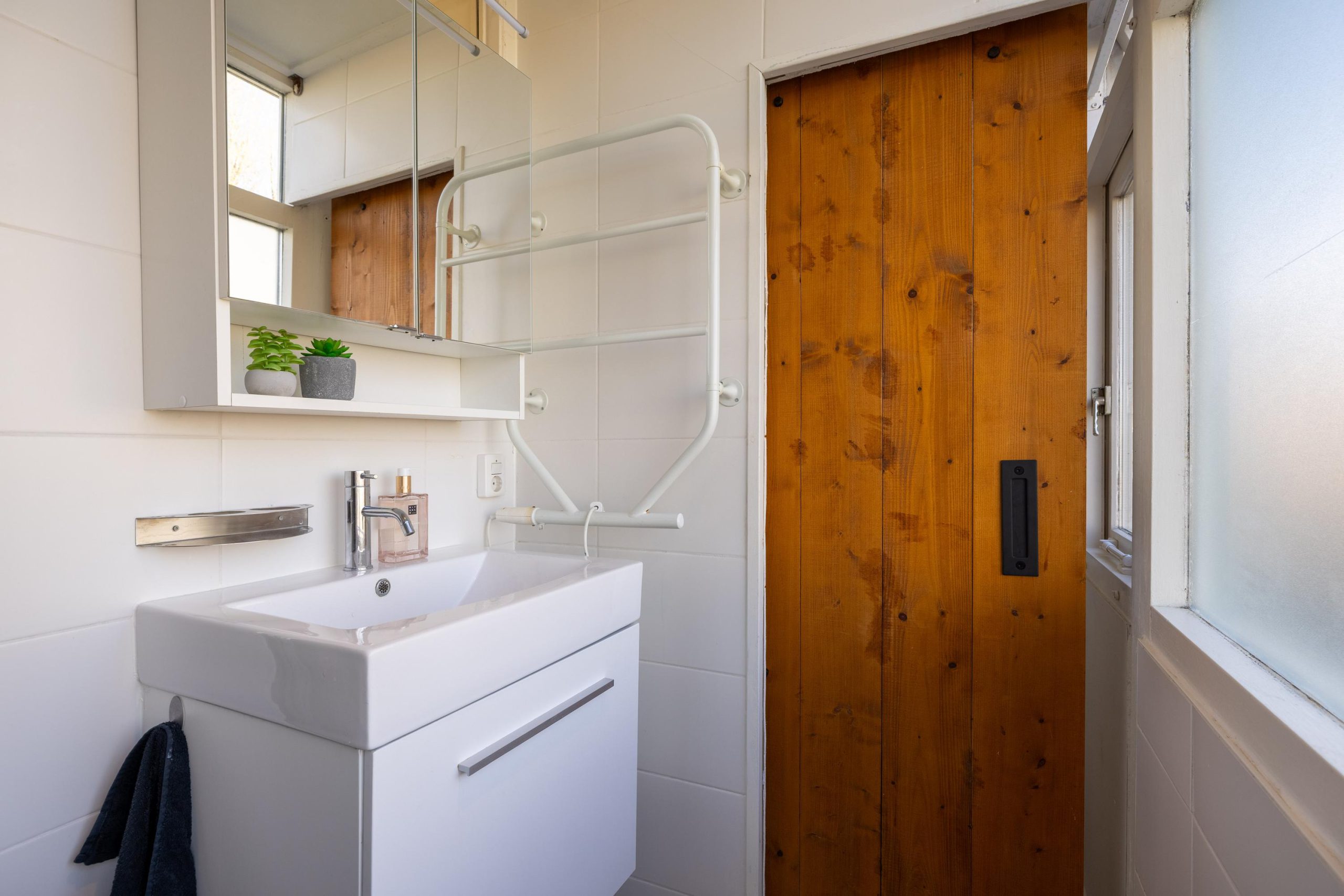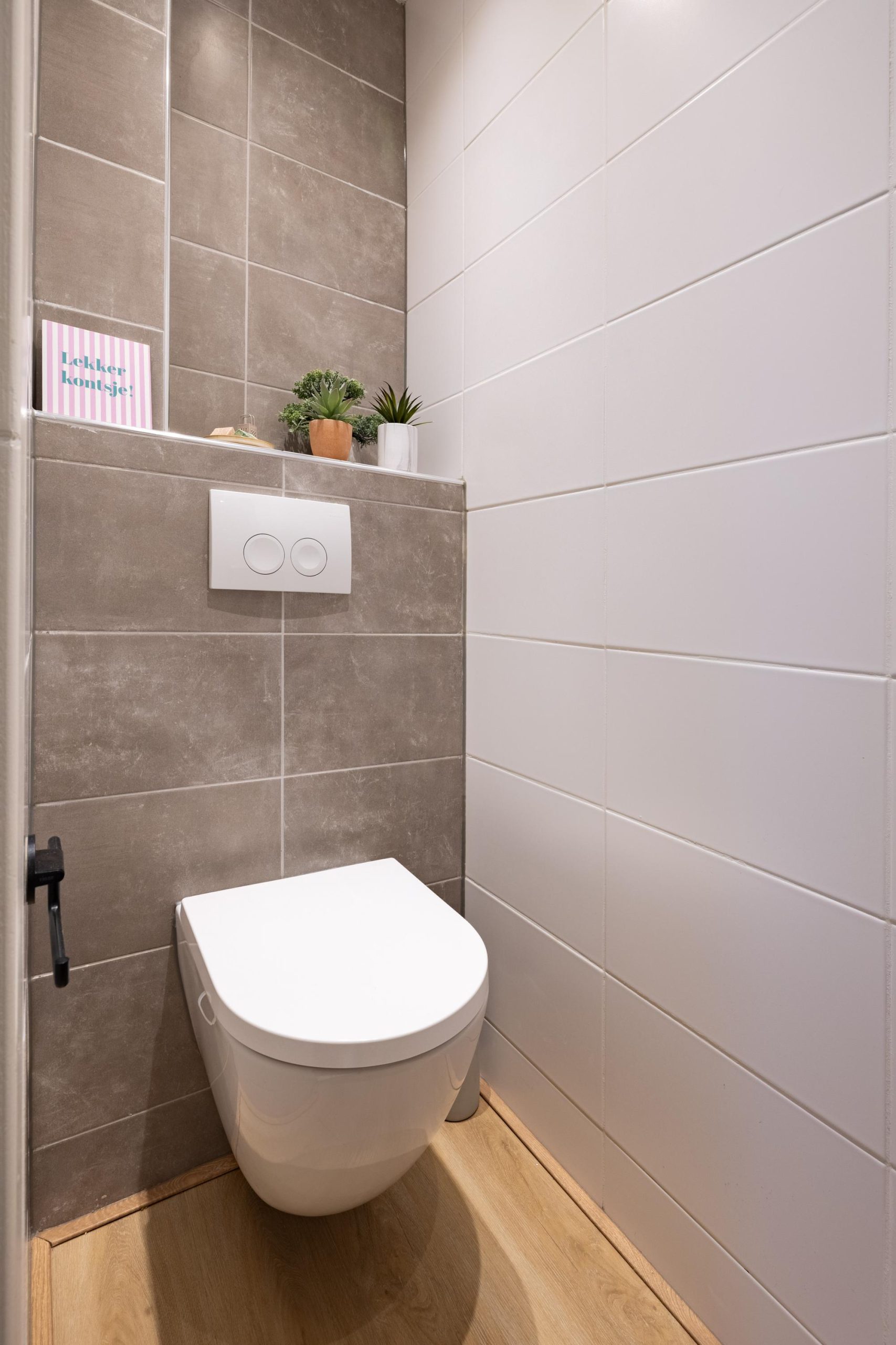 De badkamer zelf is praktisch ingedeeld en netjes afgewerkt, voorzien van een wastafel, toilet en douche. Alles is fris, functioneel en goed onderhouden, waardoor ook deze ruimte naadloos aansluit bij de rest van de woning!