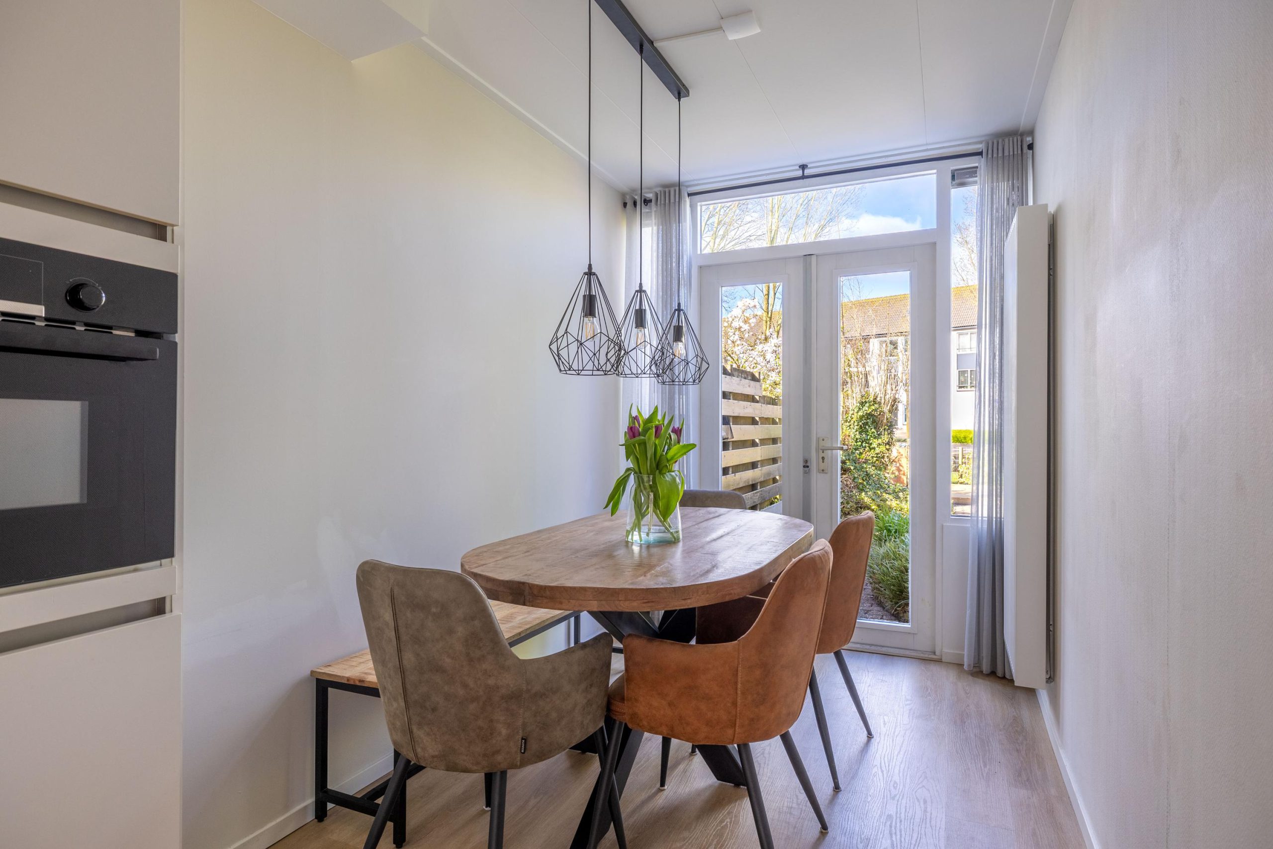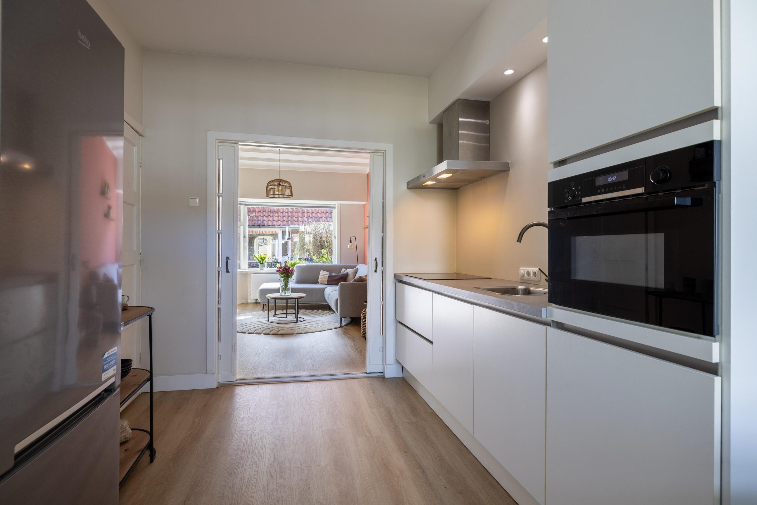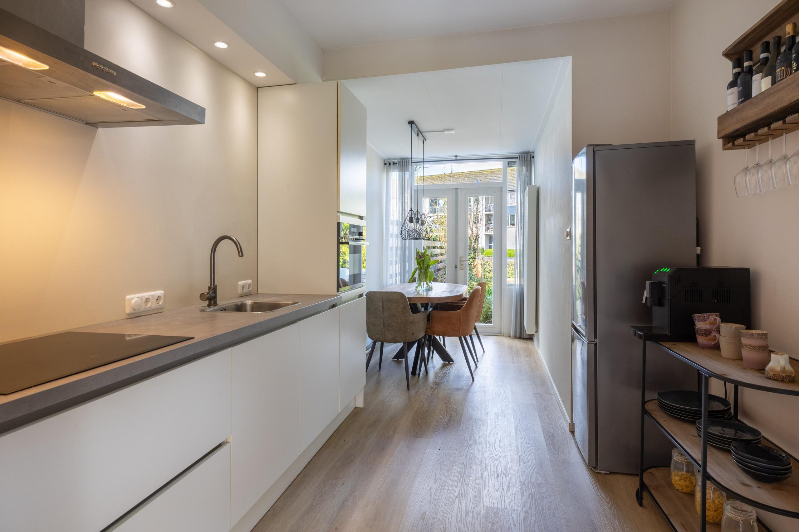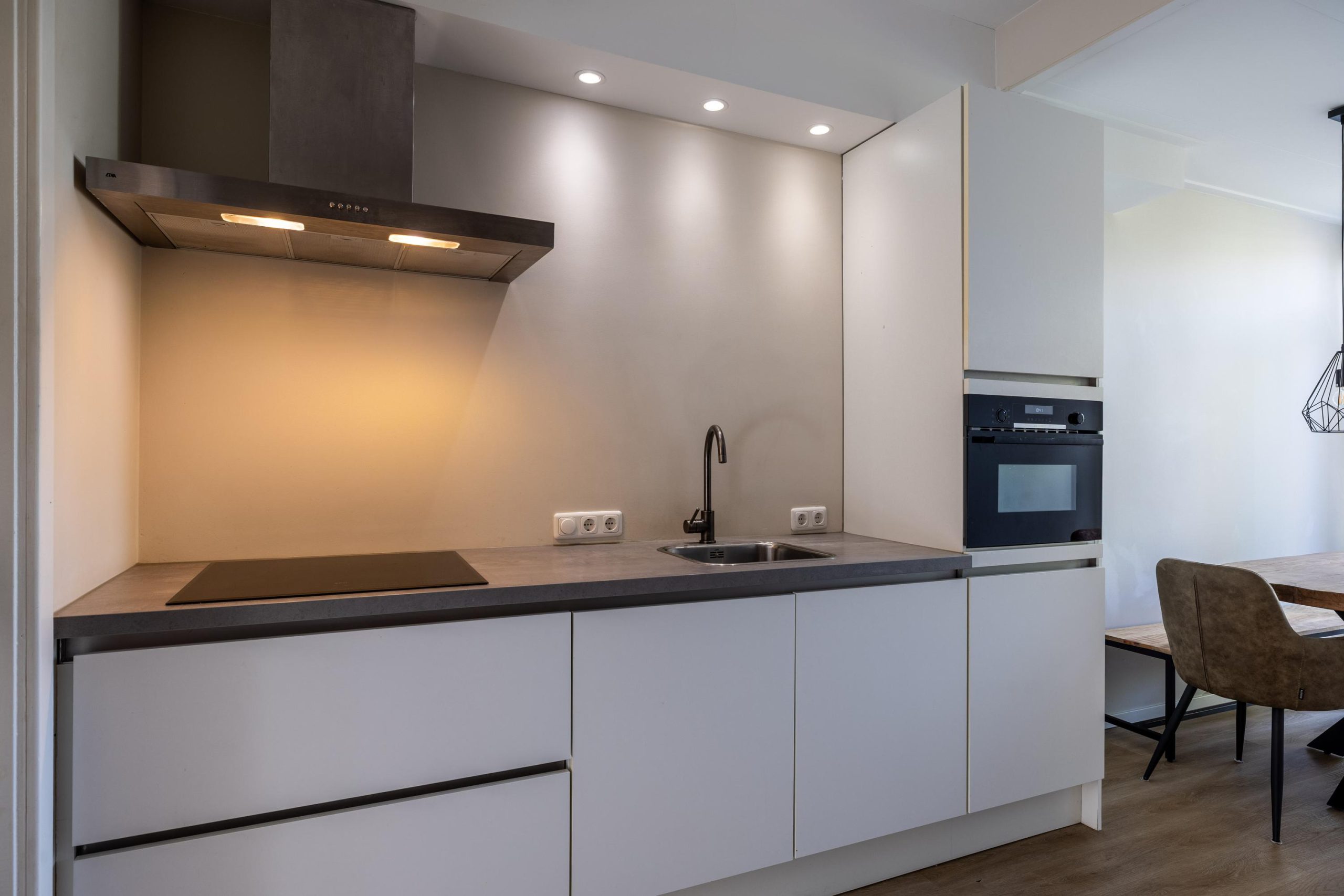 De keuken is verzorgd en sluit met zijn strakke afwerking mooi aan bij de rest van de woning. Het werkblad is vernieuwd en ook de kookplaat is recent vervangen door een elektrische variant. Daarnaast is er een nieuwe combimagnetron geplaatst, waardoor het geheel een frisse en eigentijdse uitstraling heeft.