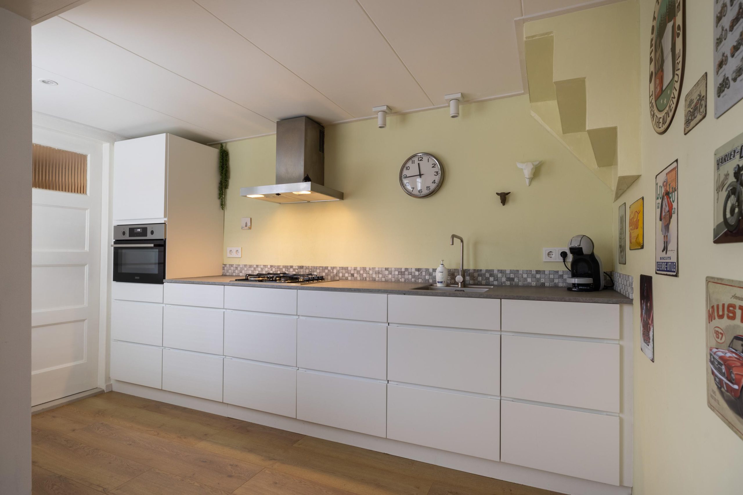 De halfopen keuken is geplaatst in 2022 en staat in verbinding met de woonkamer. Deze is compleet uitgerust met inbouwapparatuur en biedt veel kastruimte. Aansluitend aan de keuken vinden we een ruime en nette bijkeuken, ideaal voor extra opslag. Daarachter bevindt zich het ruime, moderne toilet met witgoedaansluiting.