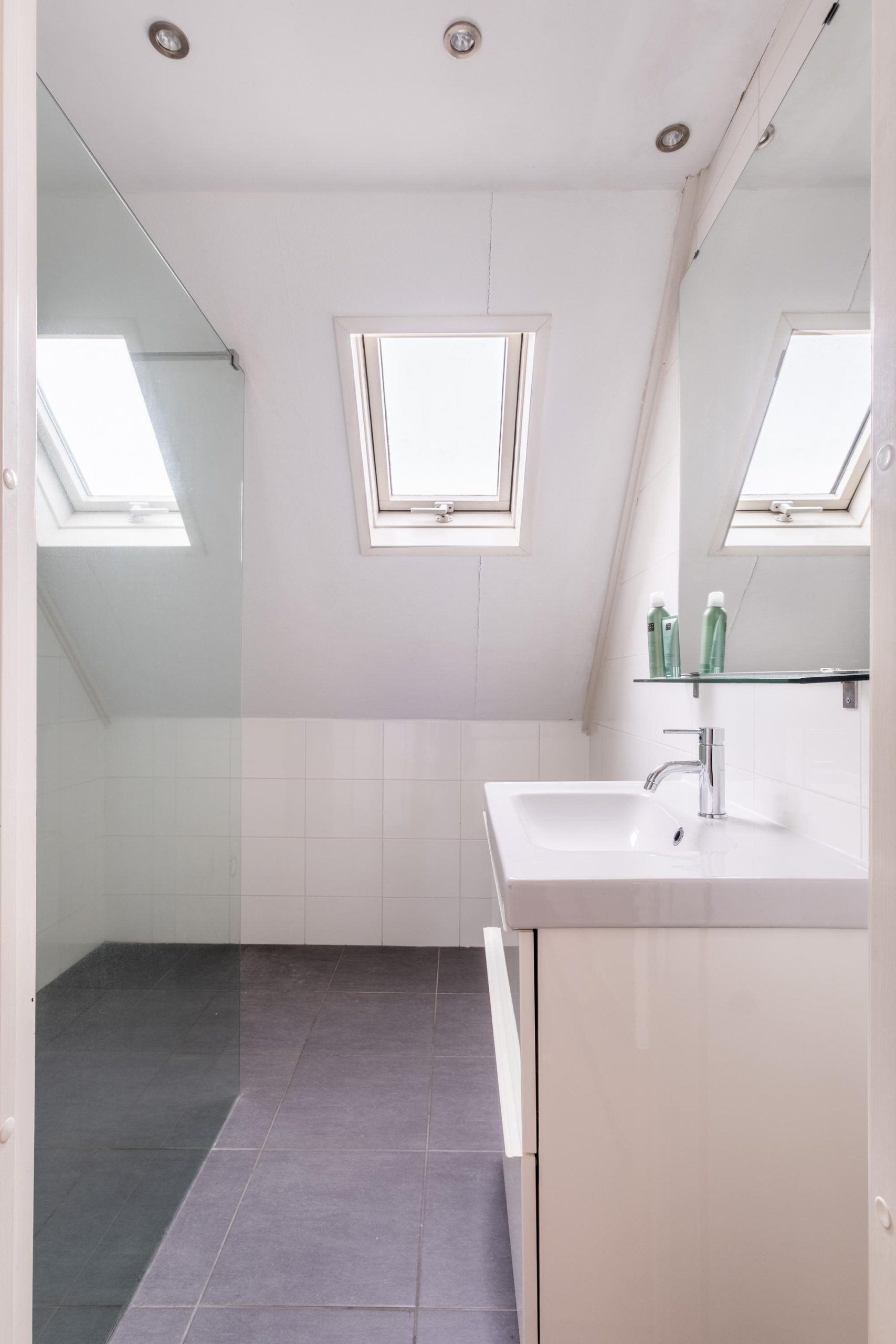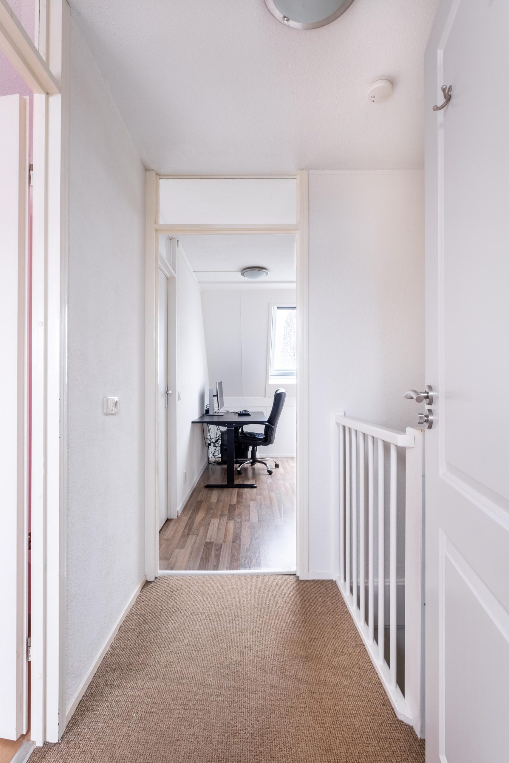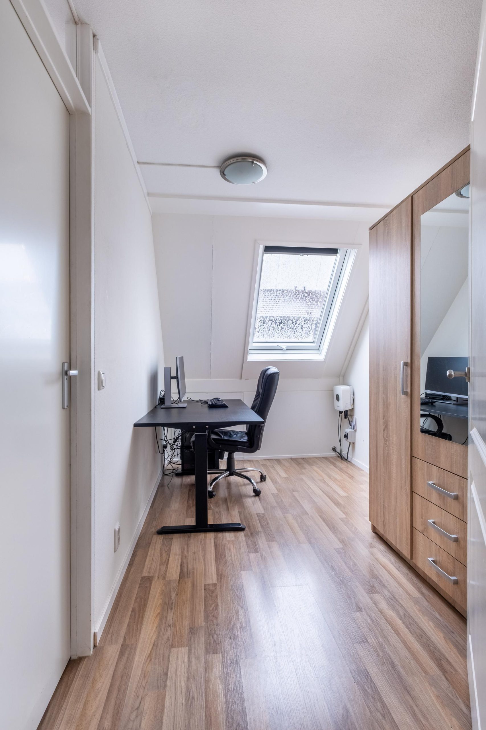 Op de eerste verdieping zijn twee slaapkamers te vinden. De hoofdslaapkamer is ruim en licht, terwijl de tweede kamer zich uitstekend leent als kinder-, werk- of logeerkamer. De badkamer is praktisch ingericht en beschikt over daglicht, wat bijdraagt aan een frisse uitstraling.