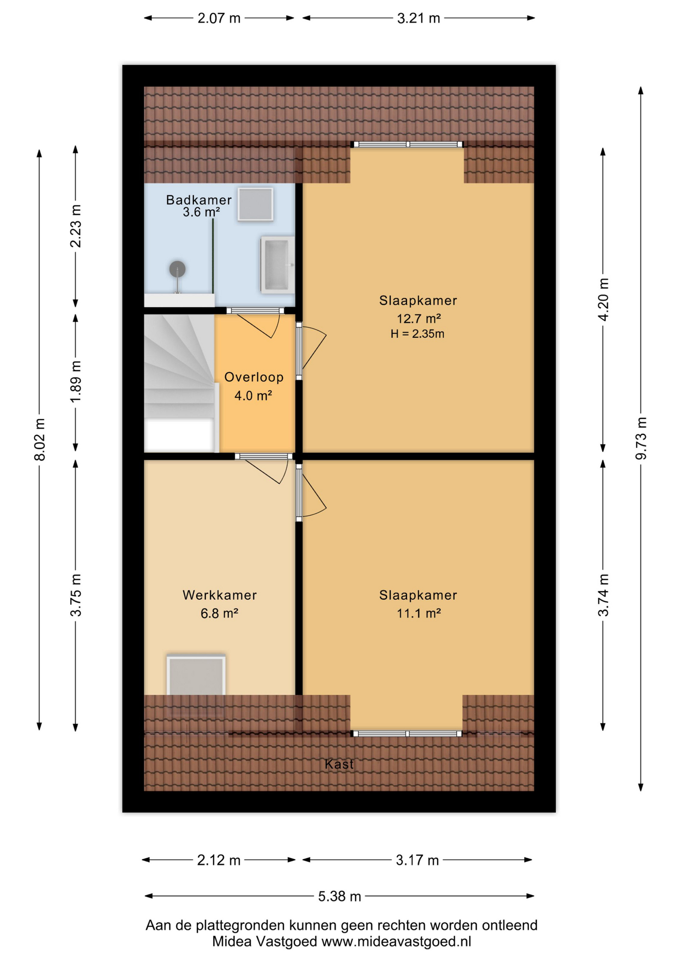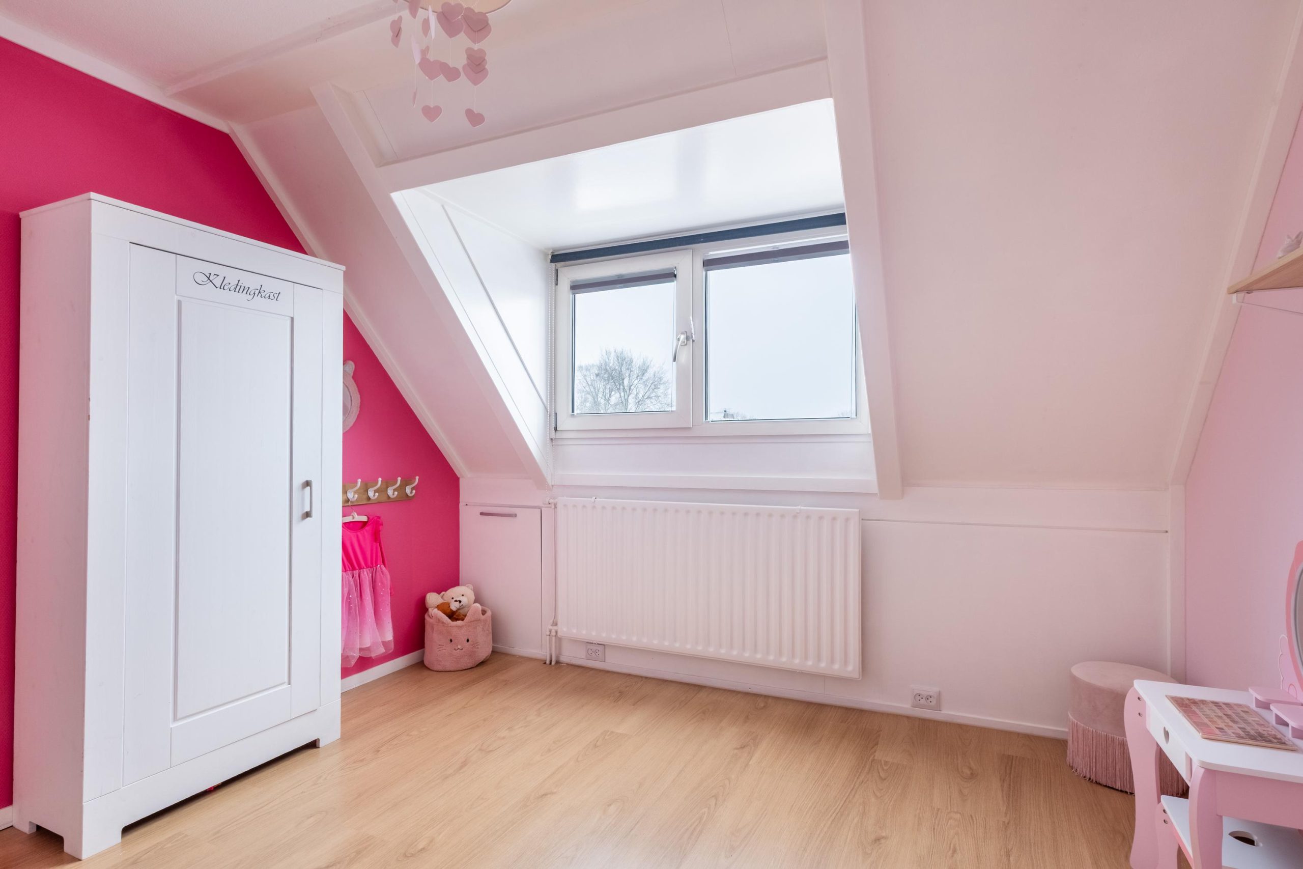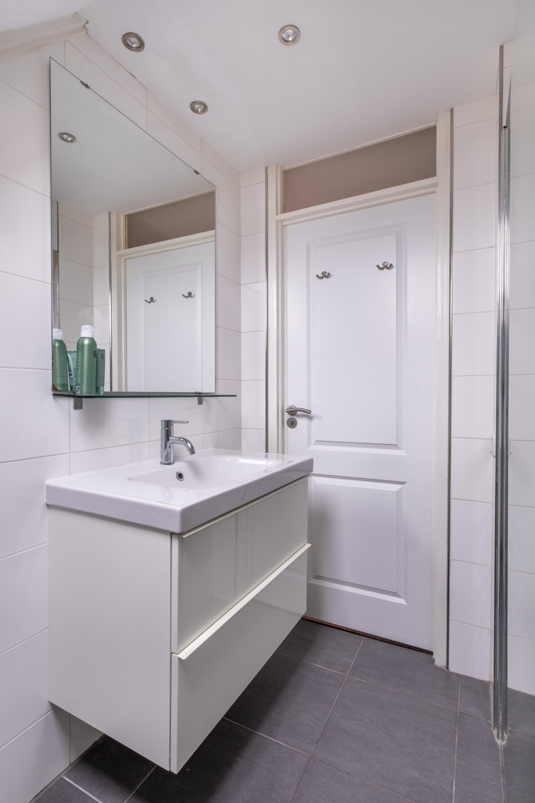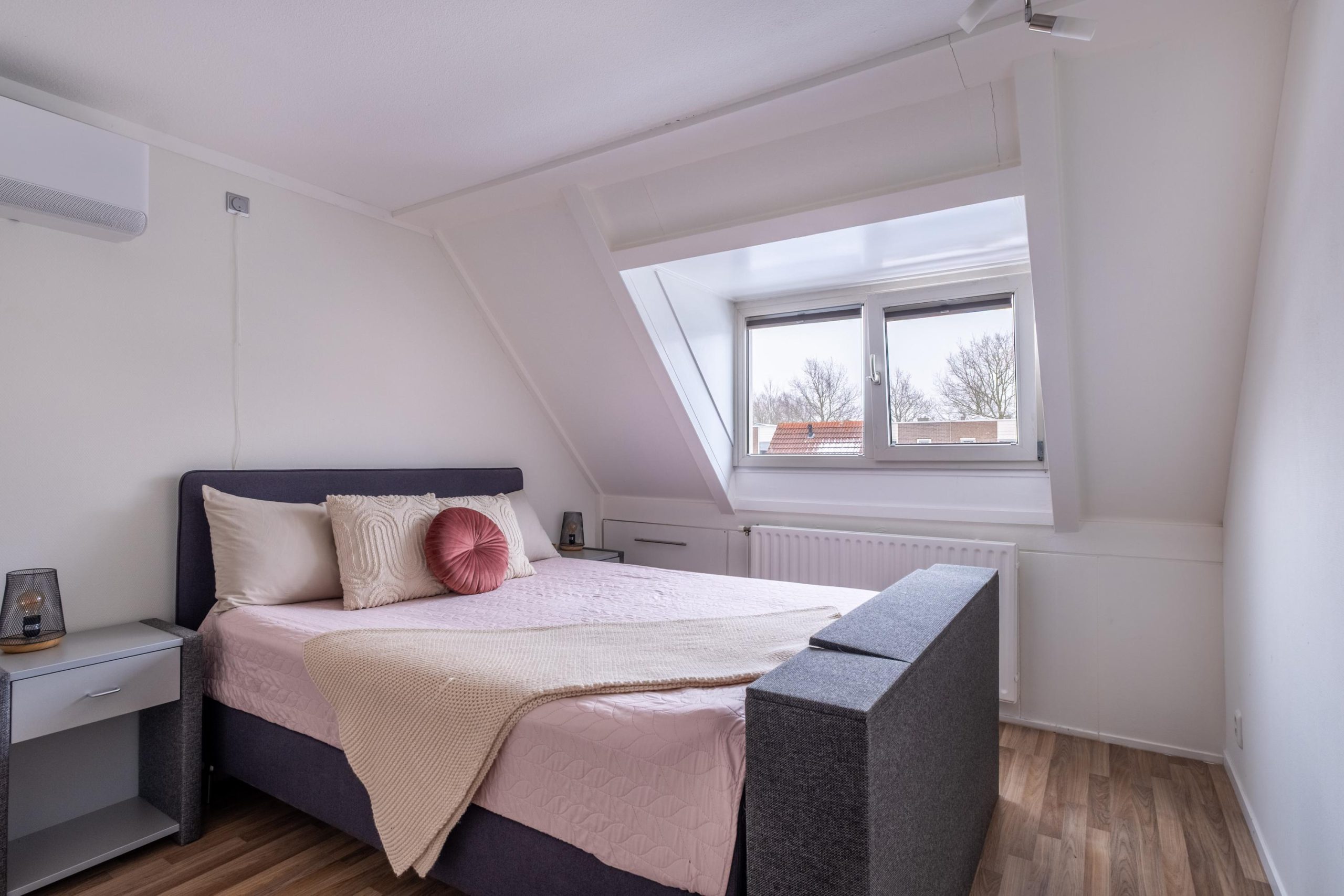 Op de eerste verdieping zijn twee slaapkamers te vinden. De hoofdslaapkamer is ruim en licht, terwijl de tweede kamer zich uitstekend leent als kinder-, werk- of logeerkamer. De badkamer is praktisch ingericht en beschikt over daglicht, wat bijdraagt aan een frisse uitstraling.