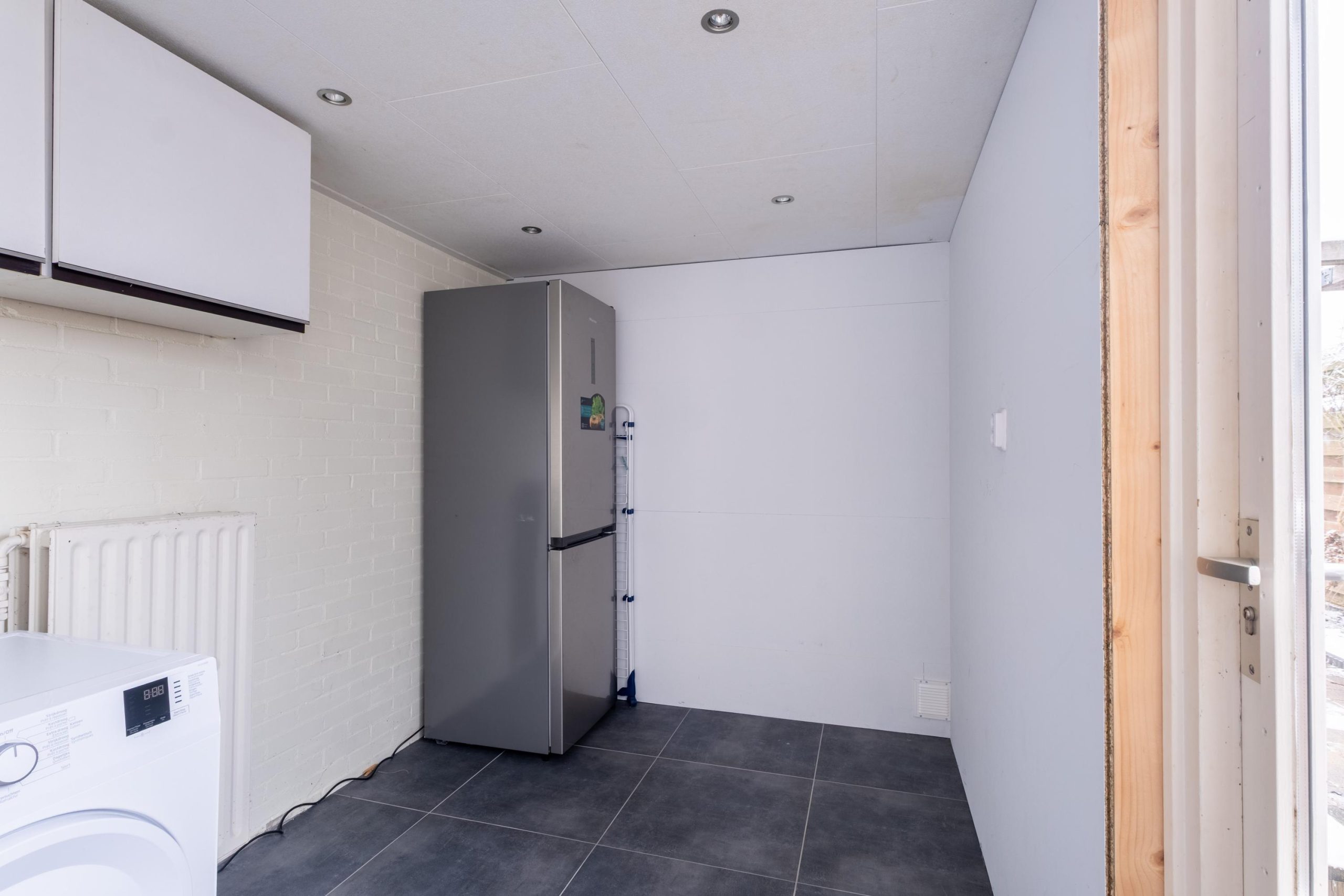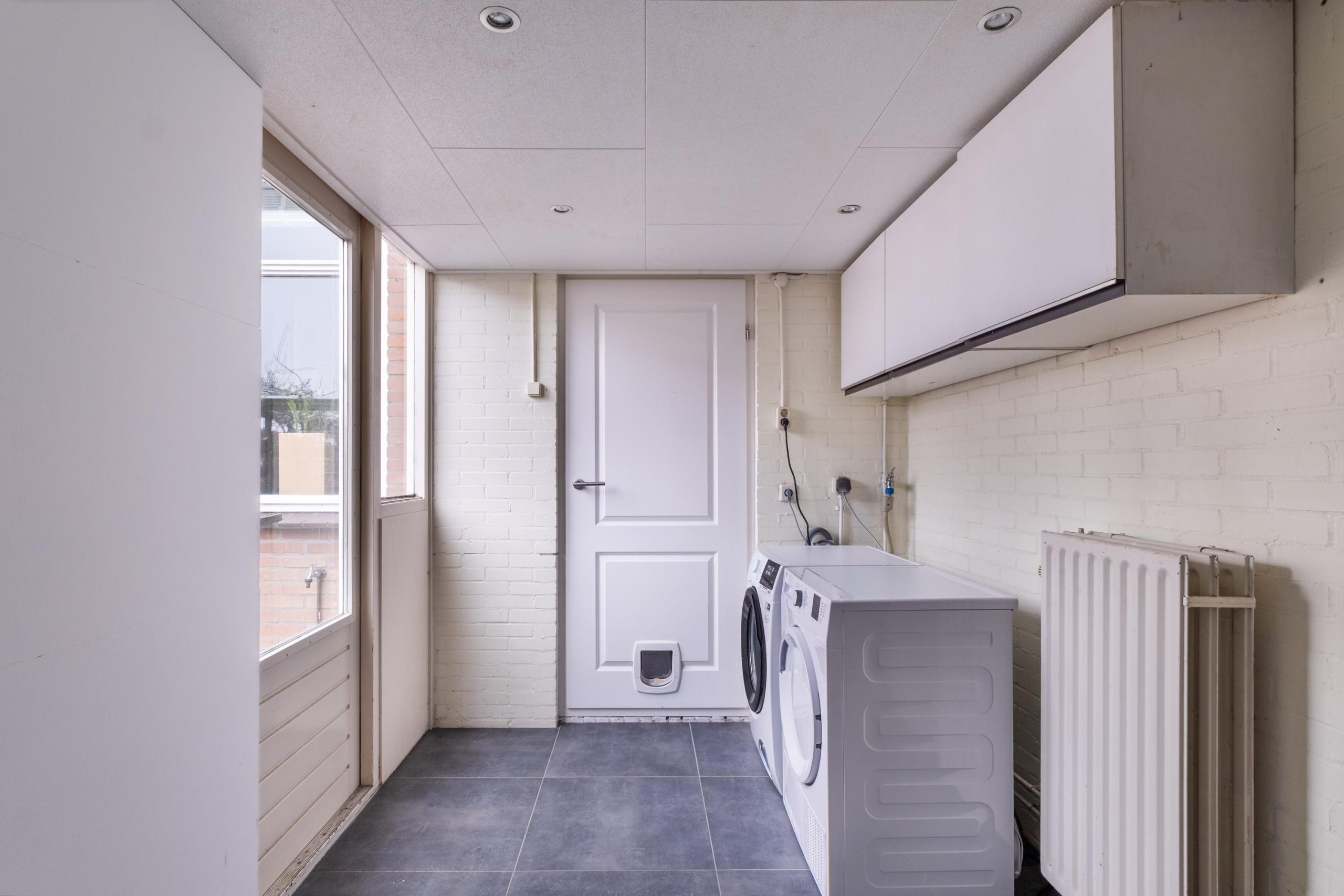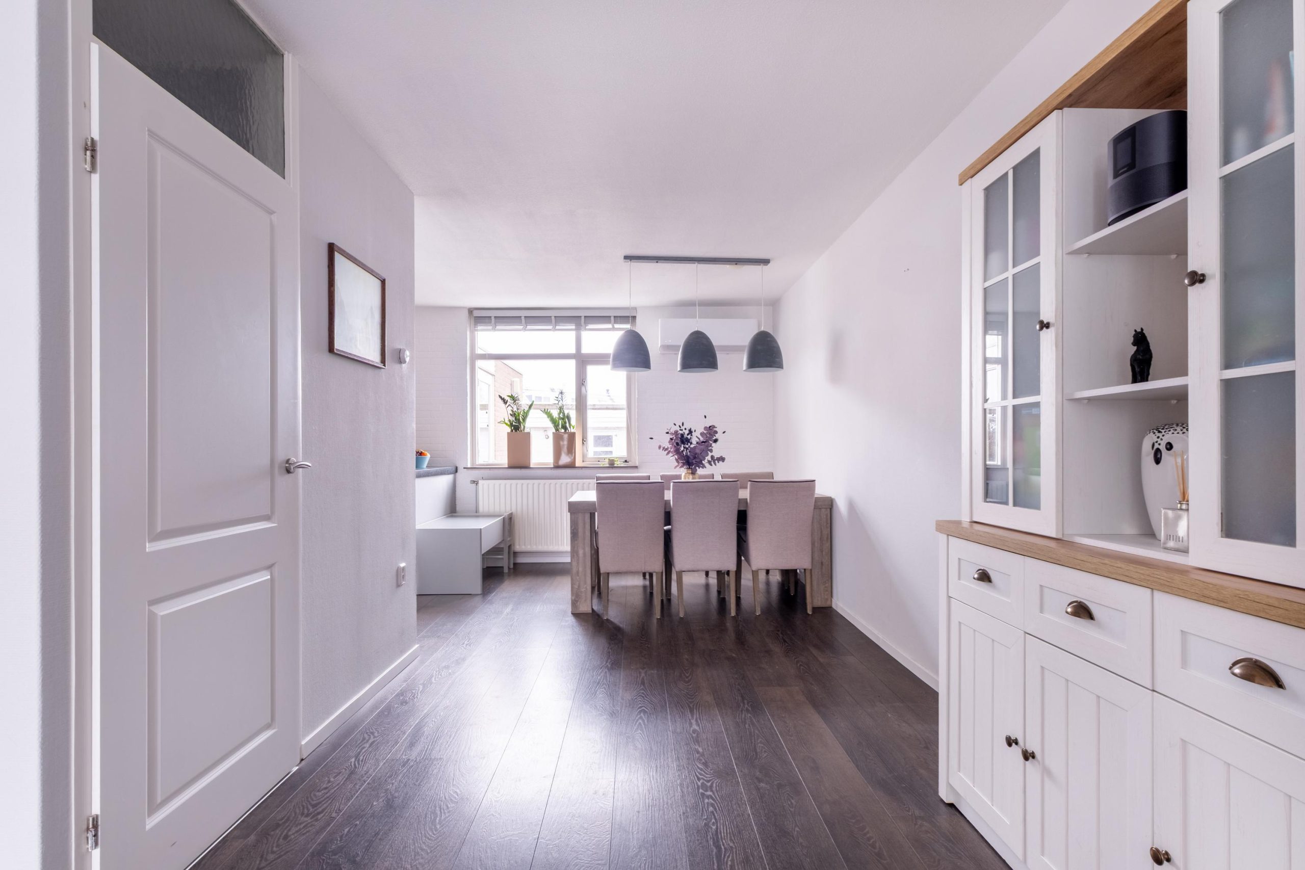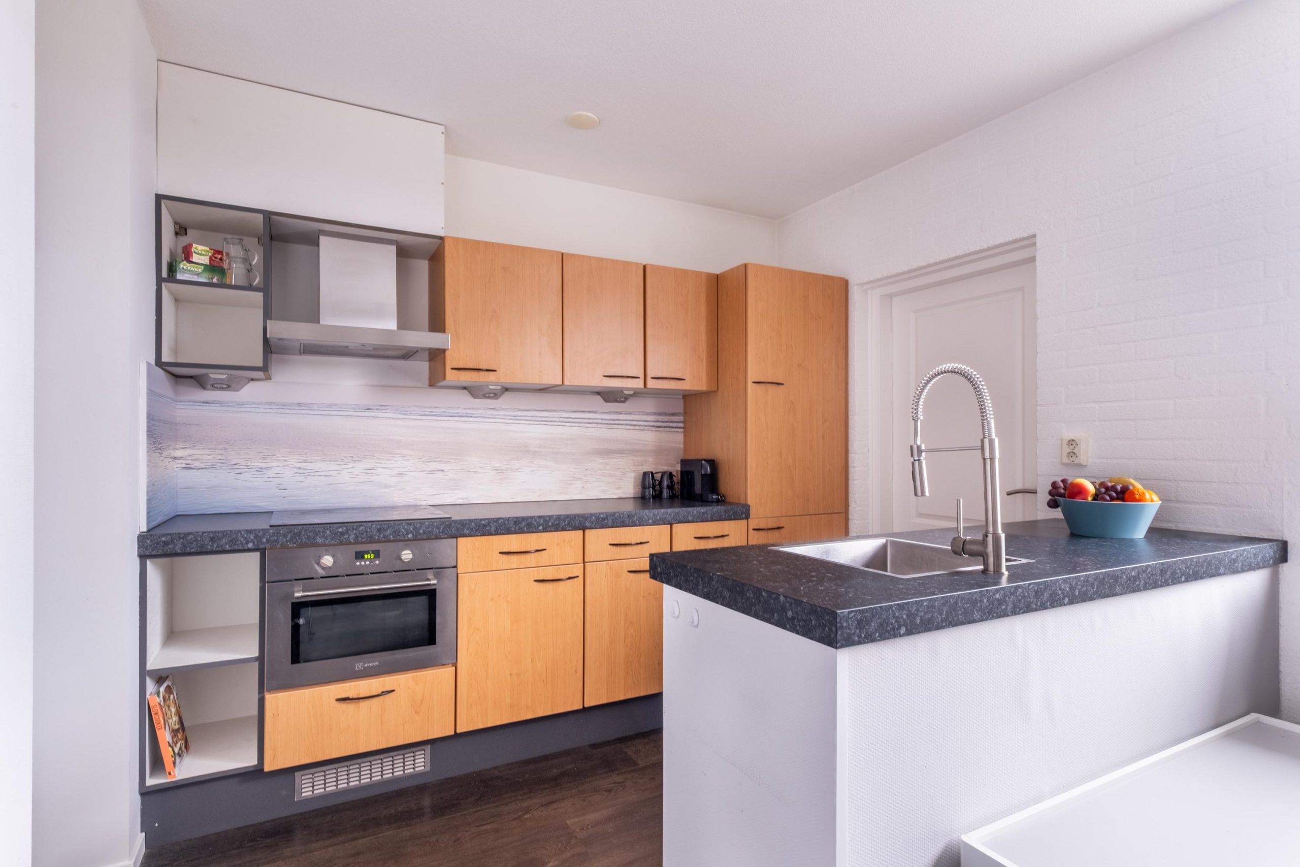 Aan de achterzijde van de woning bevinden zicht de keuken en het eetgedeelte. Vanuit de eethoek is er zicht op de tuin, wat zorgt voor een fijne verbindingen tussen binnen en buiten en maakt dit tot een centrale plek in huis.
