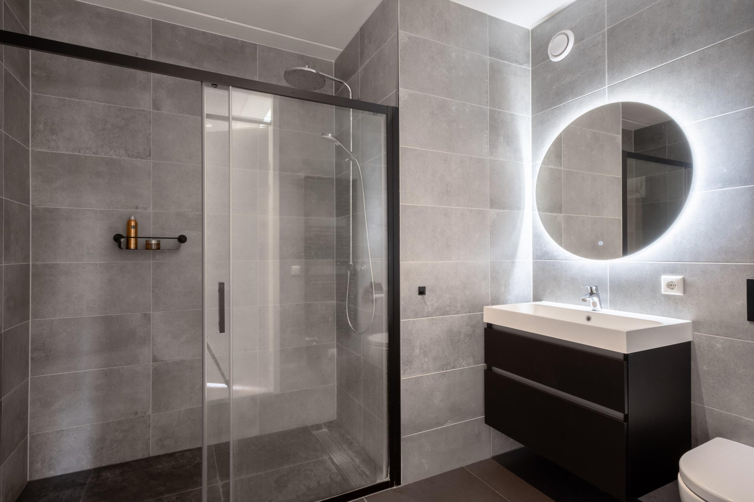 • Moderne badkamer met douche, toilet en wastafelmeubel