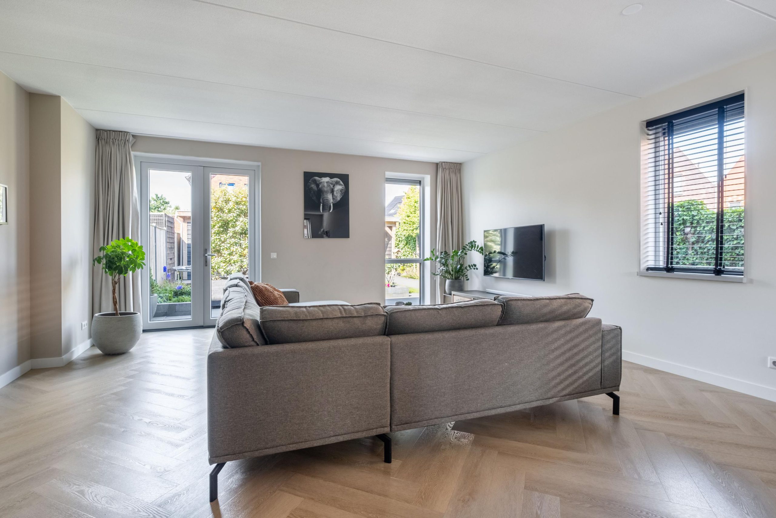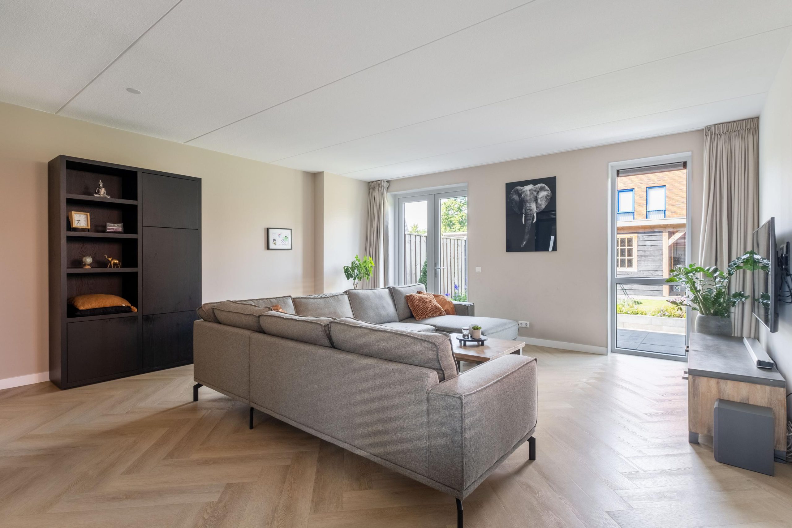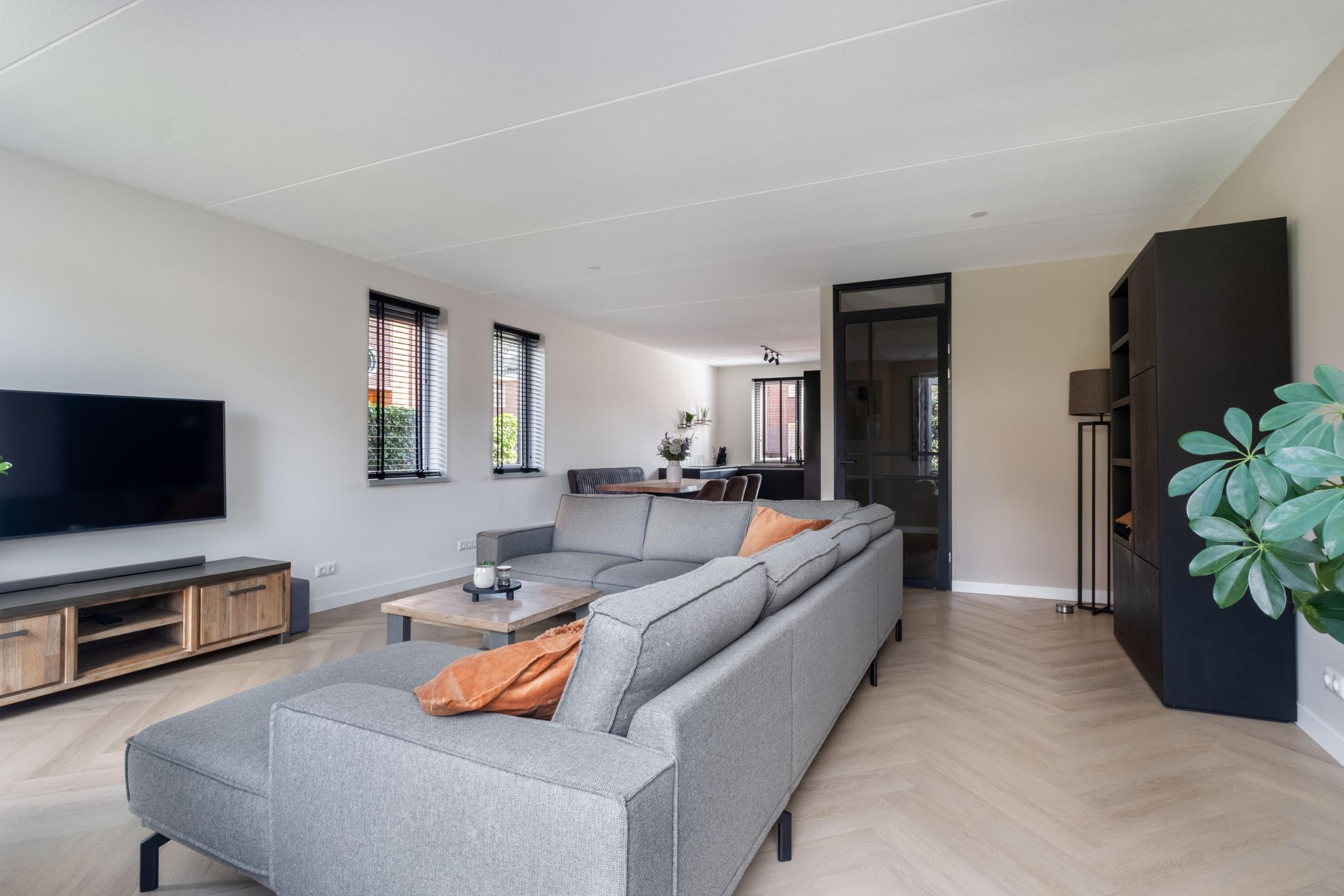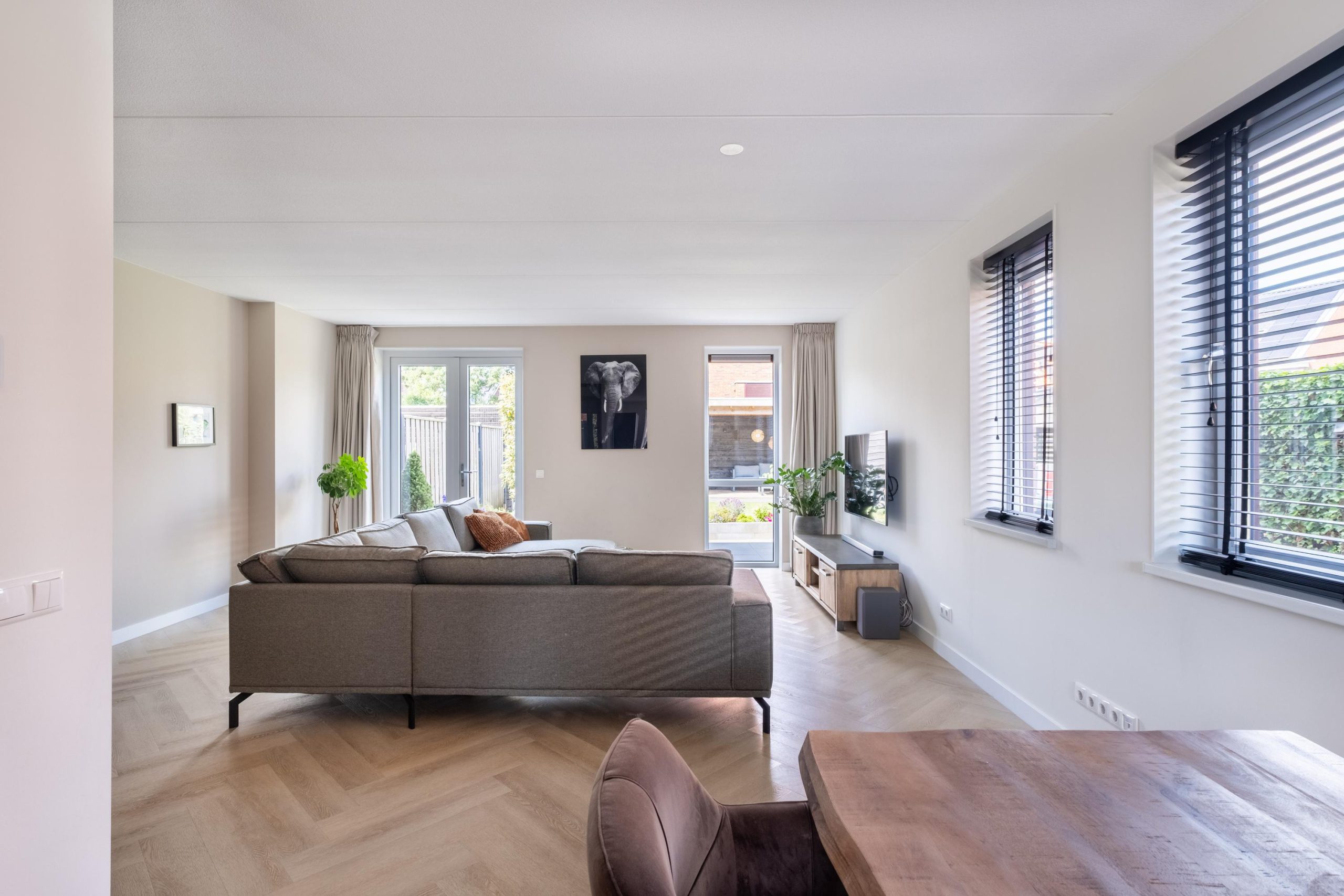 • Woonkamer met veel licht dankzij glazen deur en raampartijen