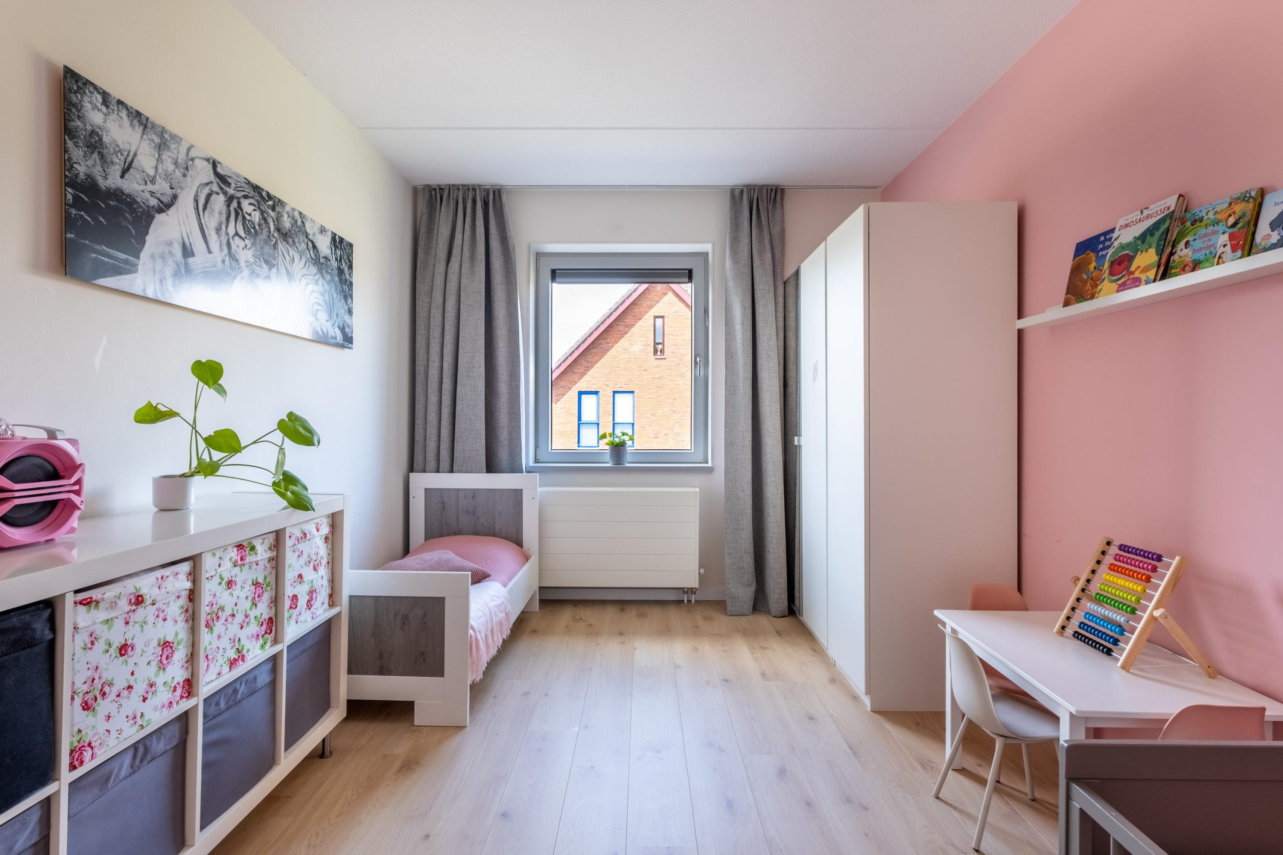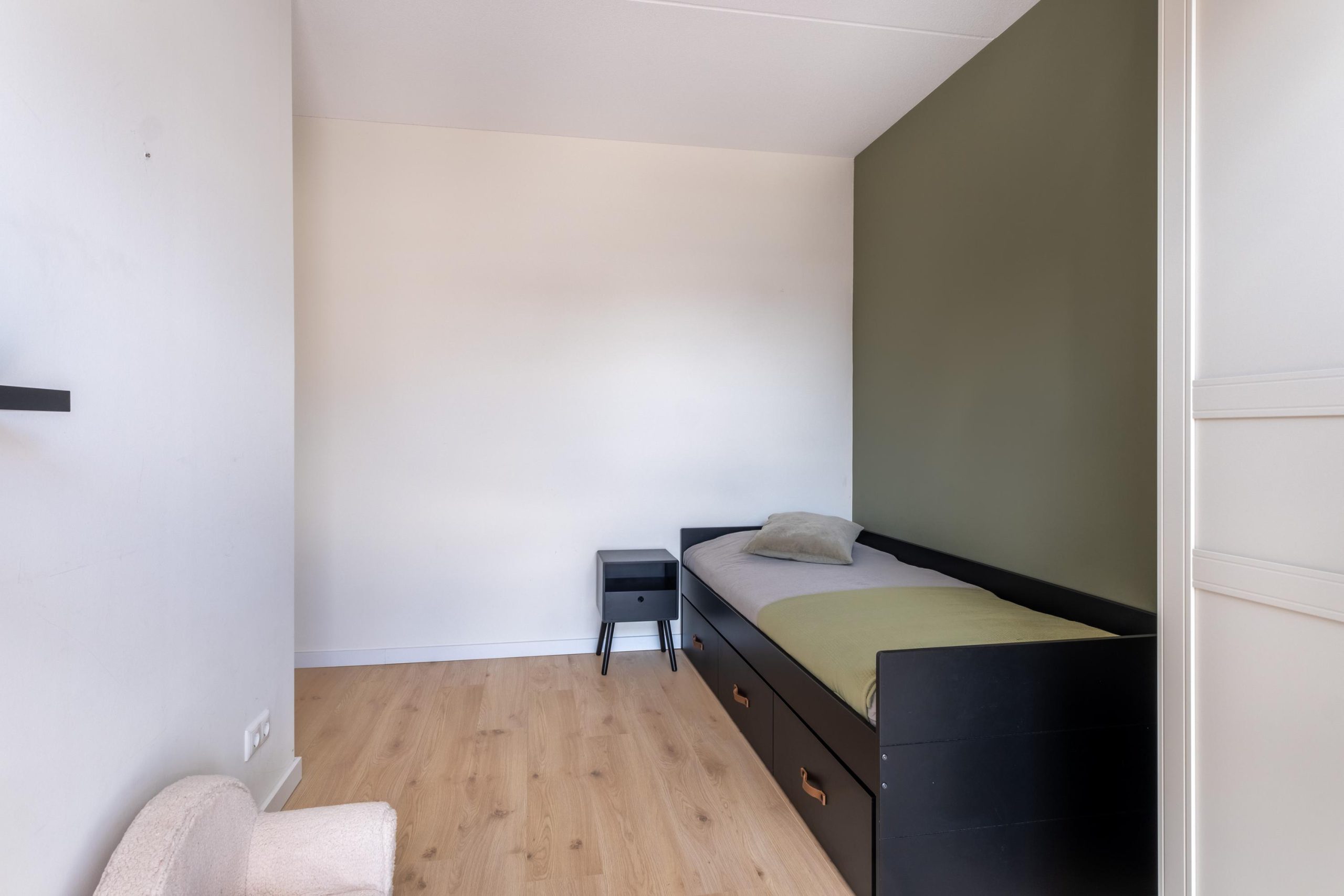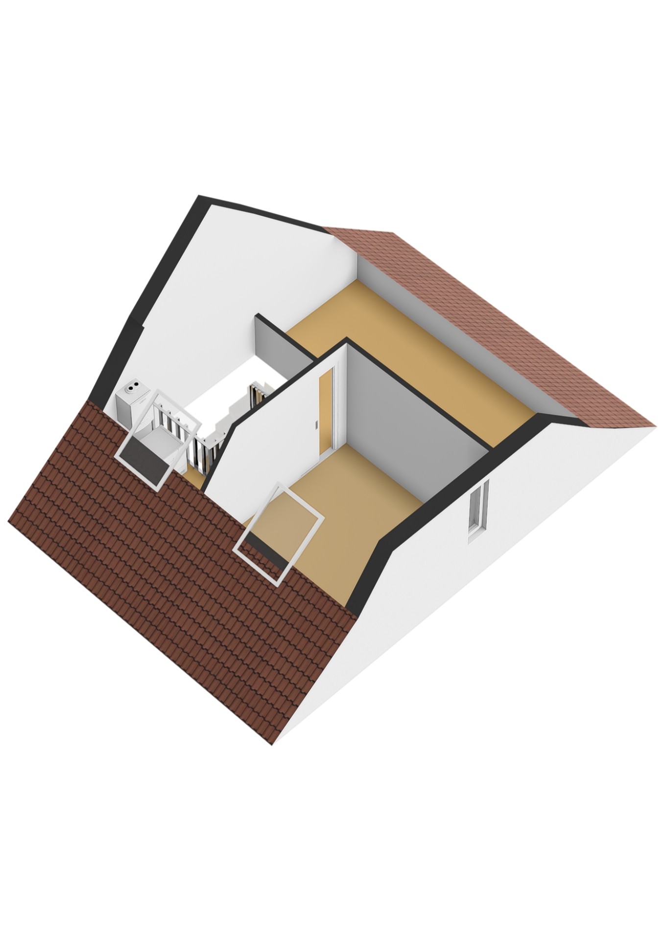 De tweede verdieping biedt nog een vierde slaapkamer en herbergt de technische installatie van de warmtepomp. Hiermee is de woning voorzien van de nieuwste technieken voor comfortabel en duurzaam wonen.