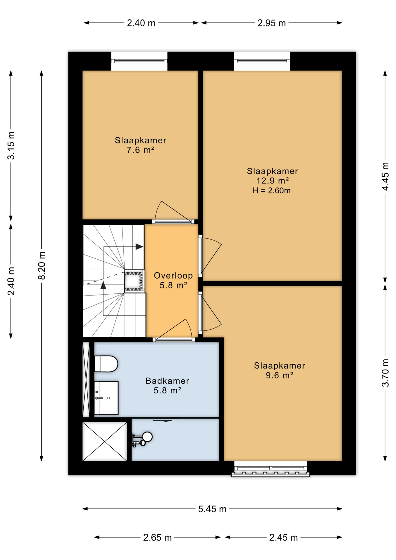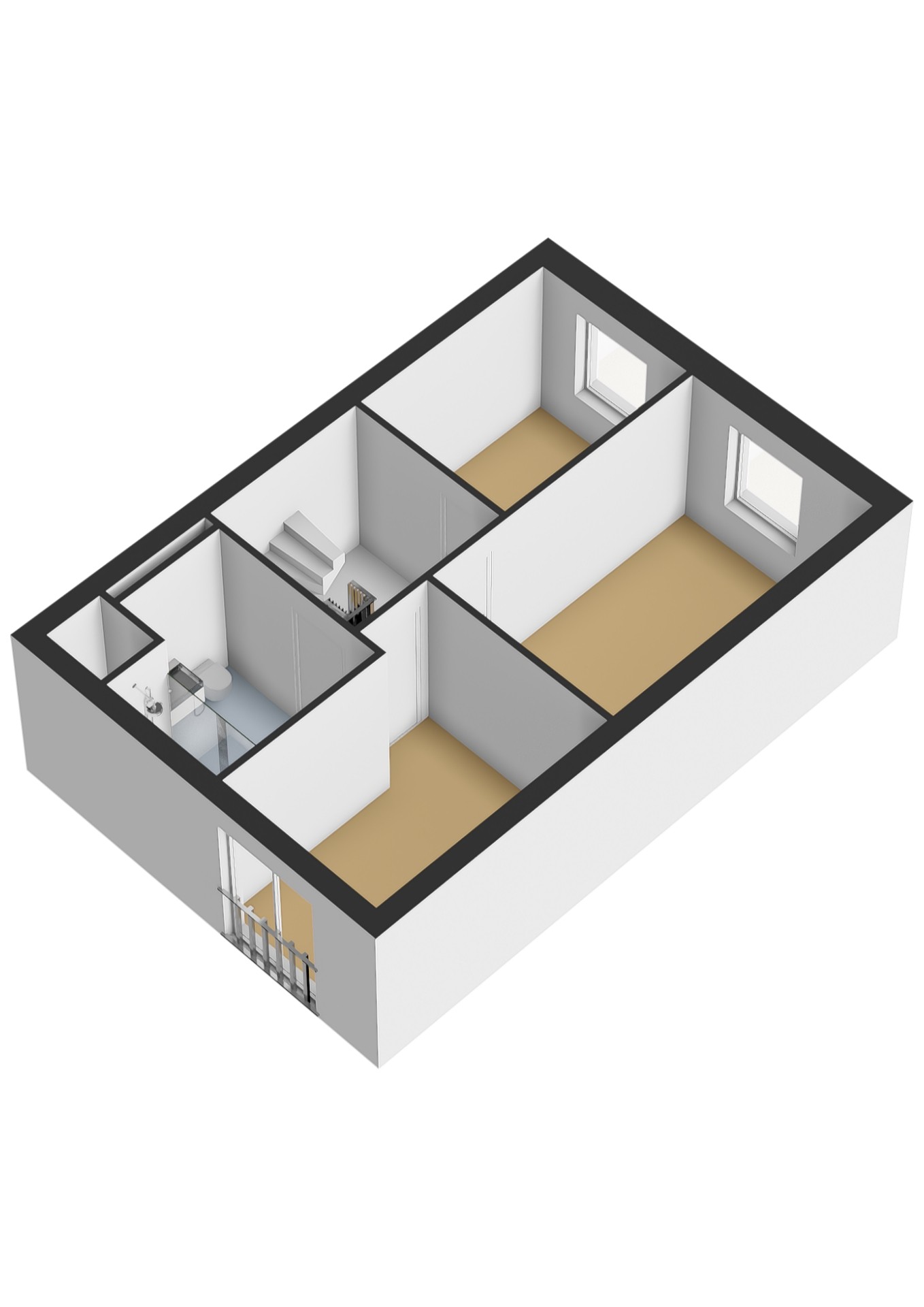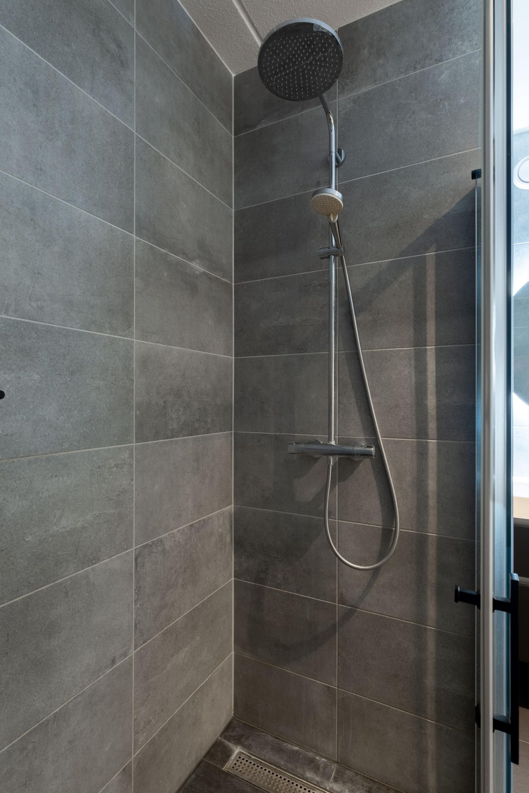 Op de eerste verdieping vind je drie slaapkamers en een moderne badkamer. Deze is voorzien van een wastafelmeubel, toilet en douche. Achter de ombouw bevindt zich de boiler.
