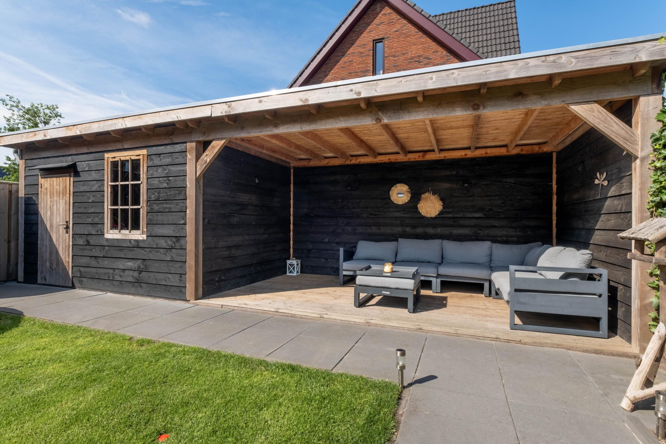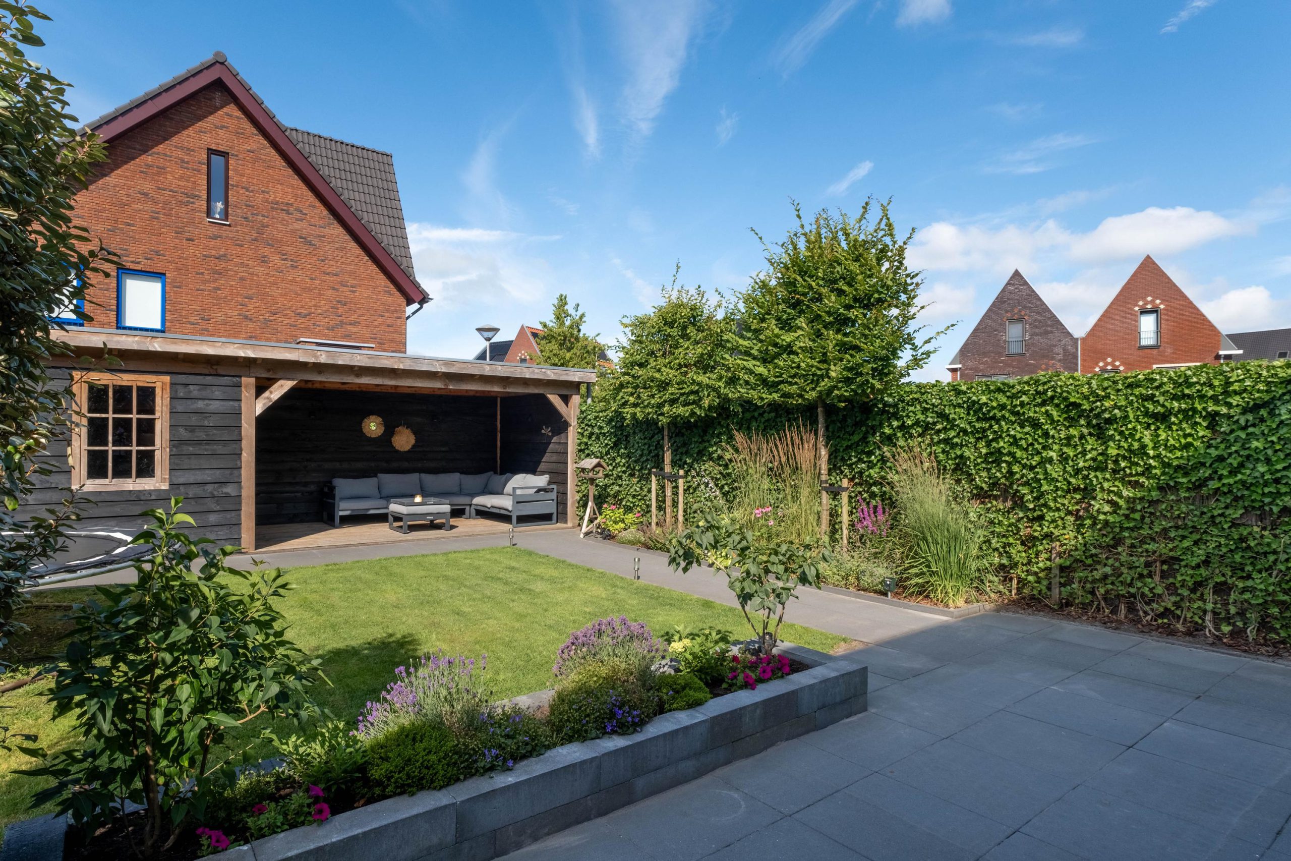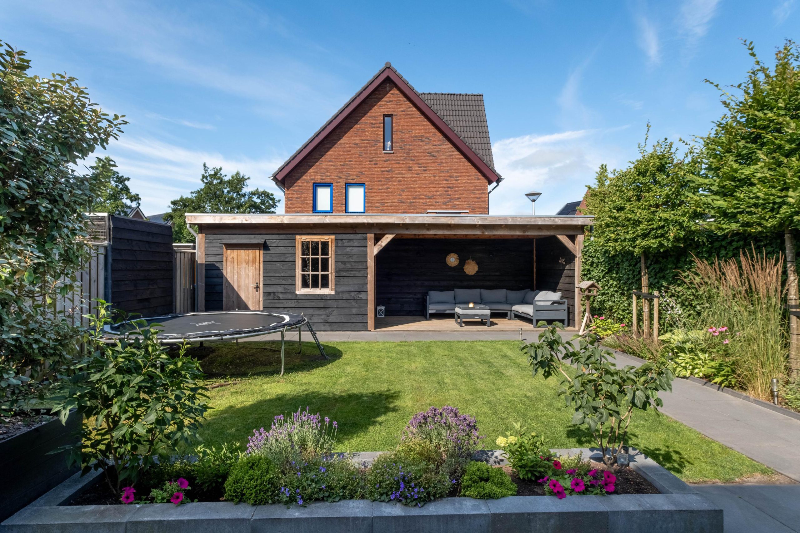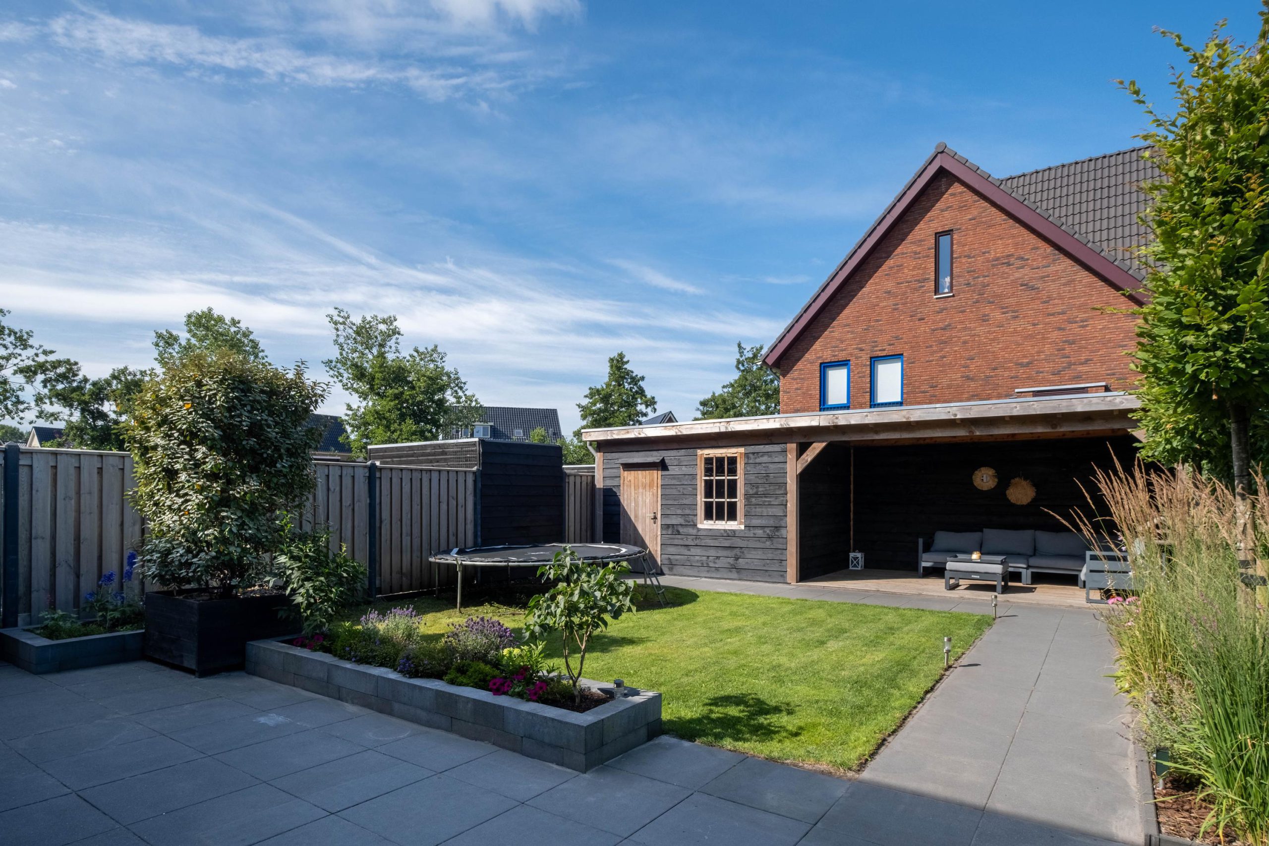 • Tuin met berging en overkapping