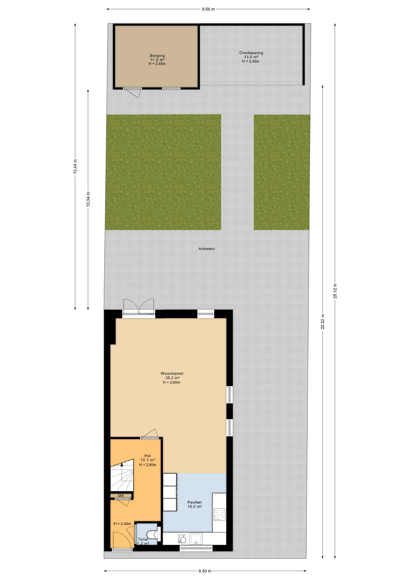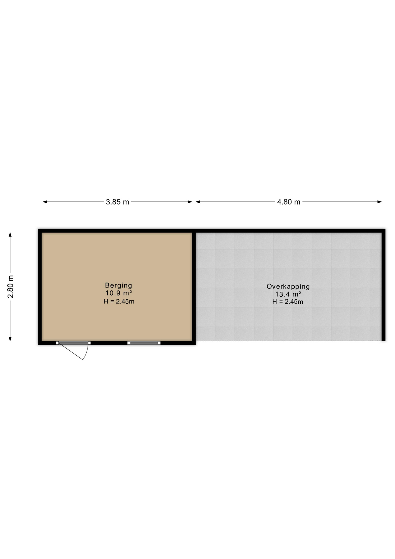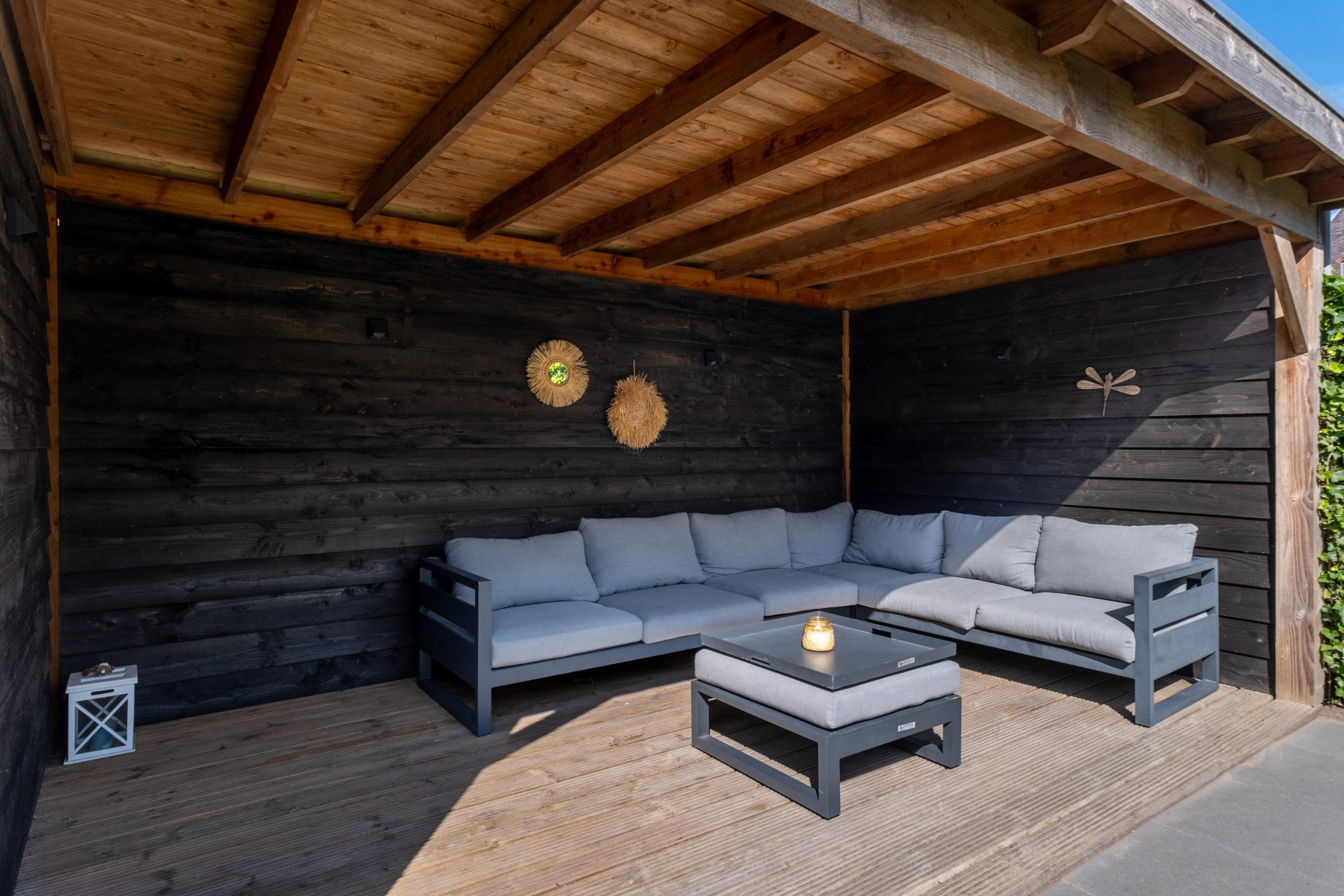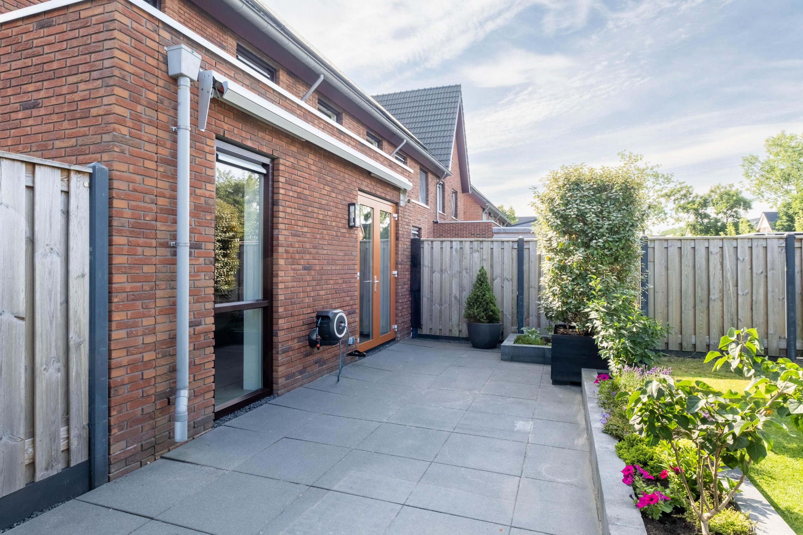 • Tuin met berging en overkapping