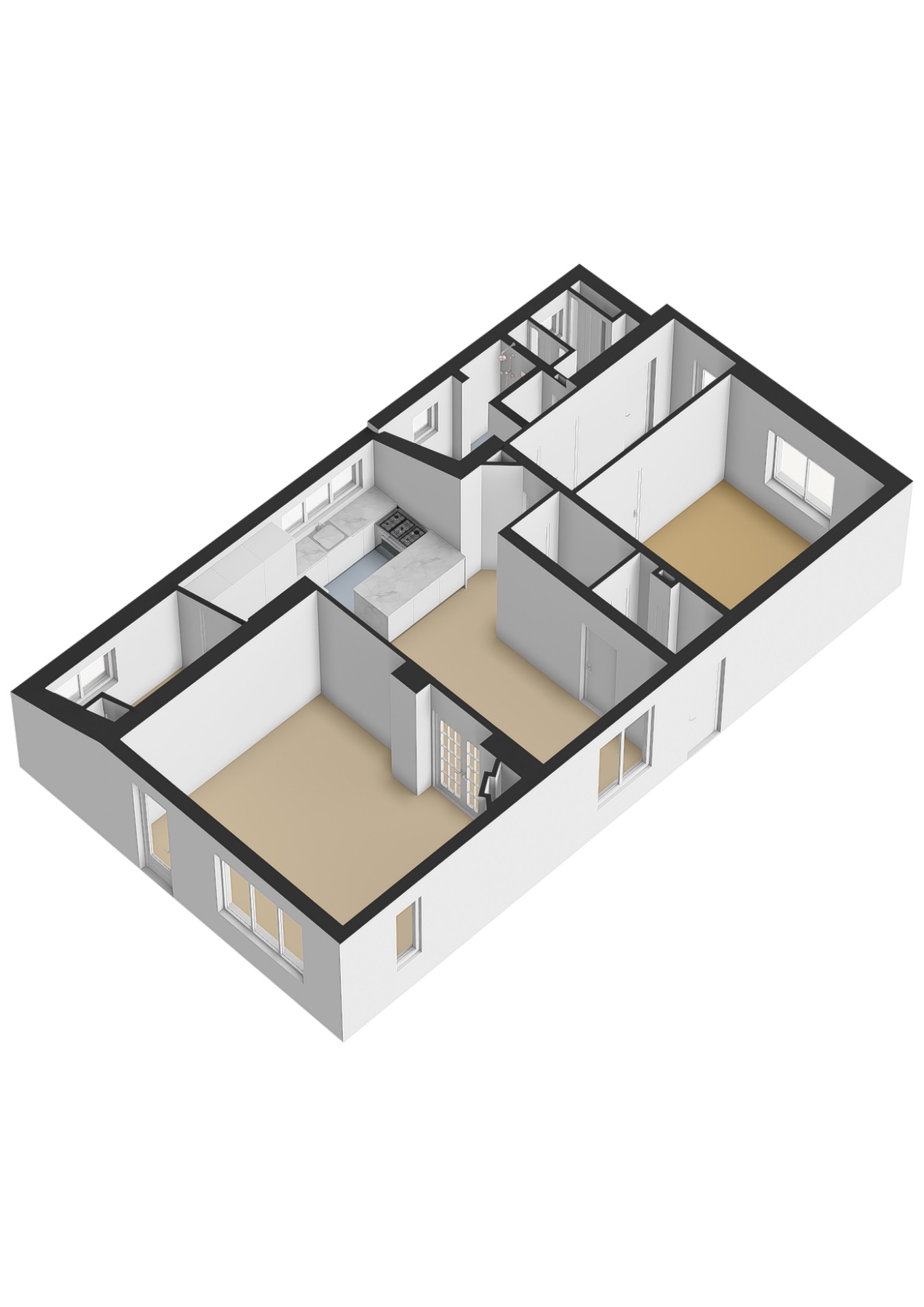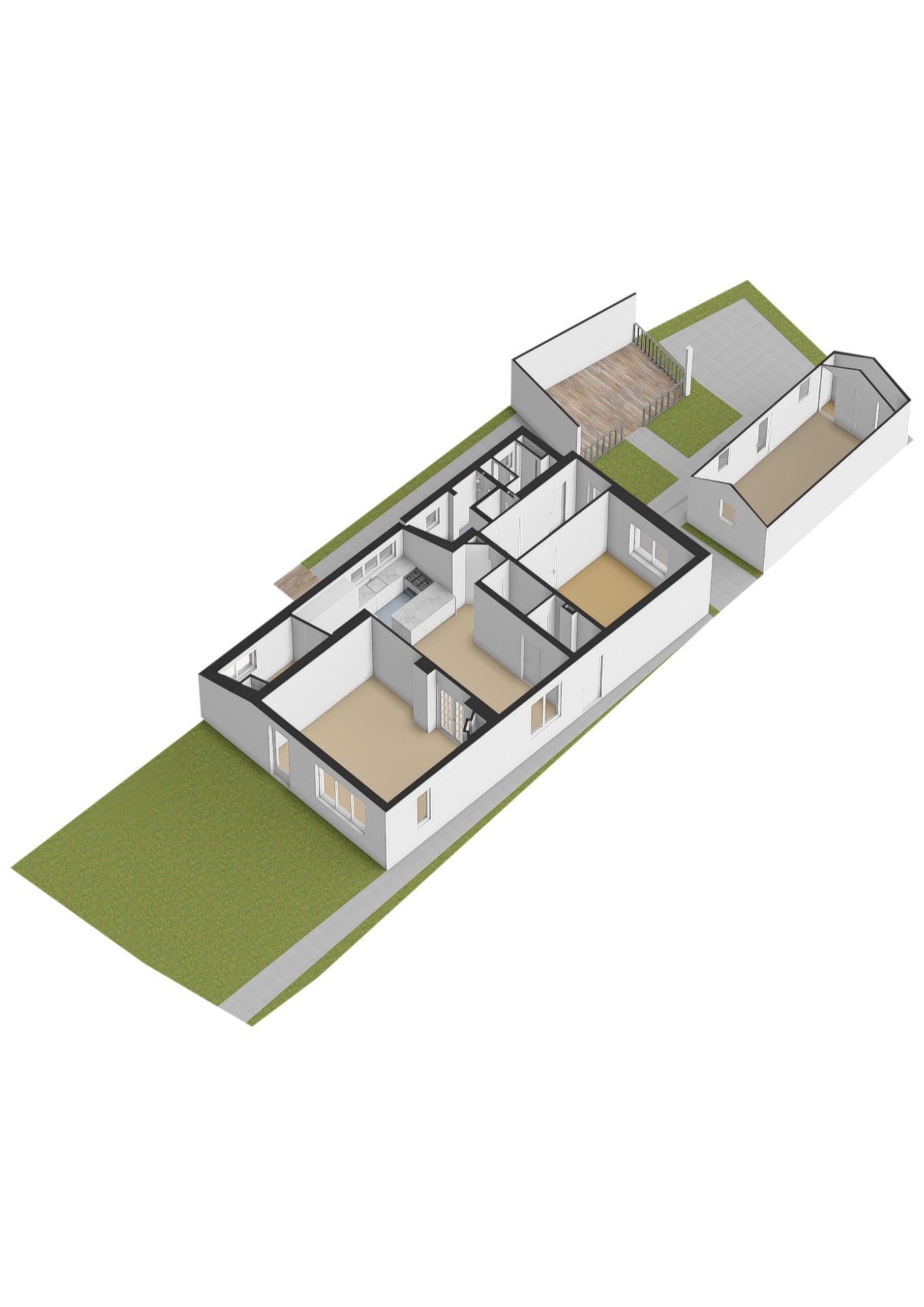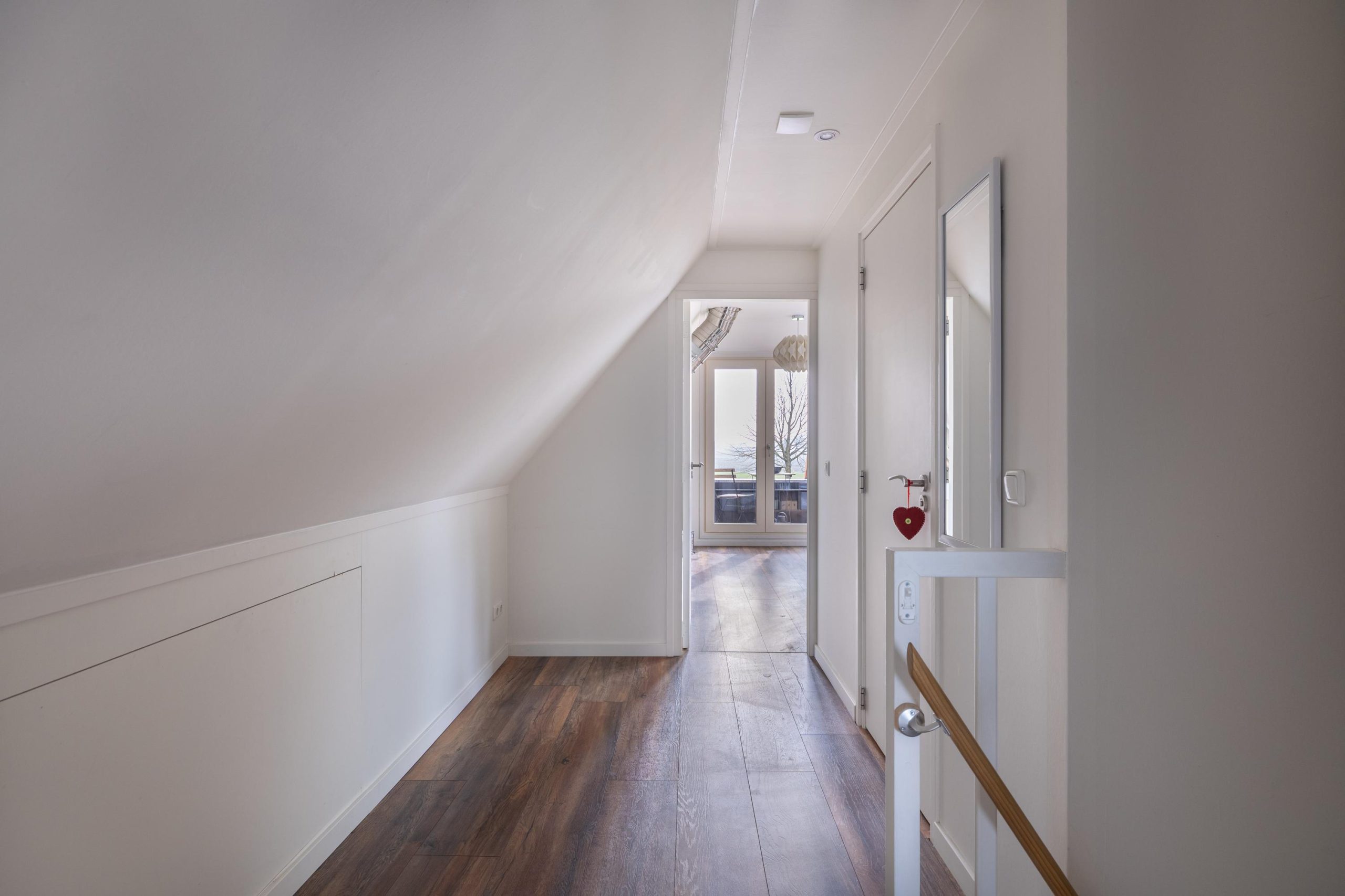 De woonkamer loopt over in een prachtige leefkeuken waar koken en samen zijn centraal staan. Aansluitend vind je een extra kamer, ideaal als kantoor, hobbyruimte of speelkamer. Aan de achterzijde bevindt zich een praktische indeling met een bijkeuken, toilet en een moderne badkamer met dubbele wastafel en inloopdouche.