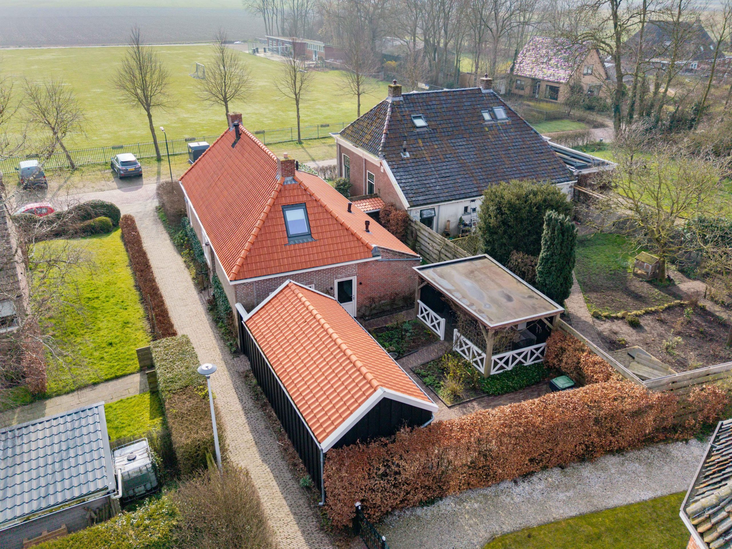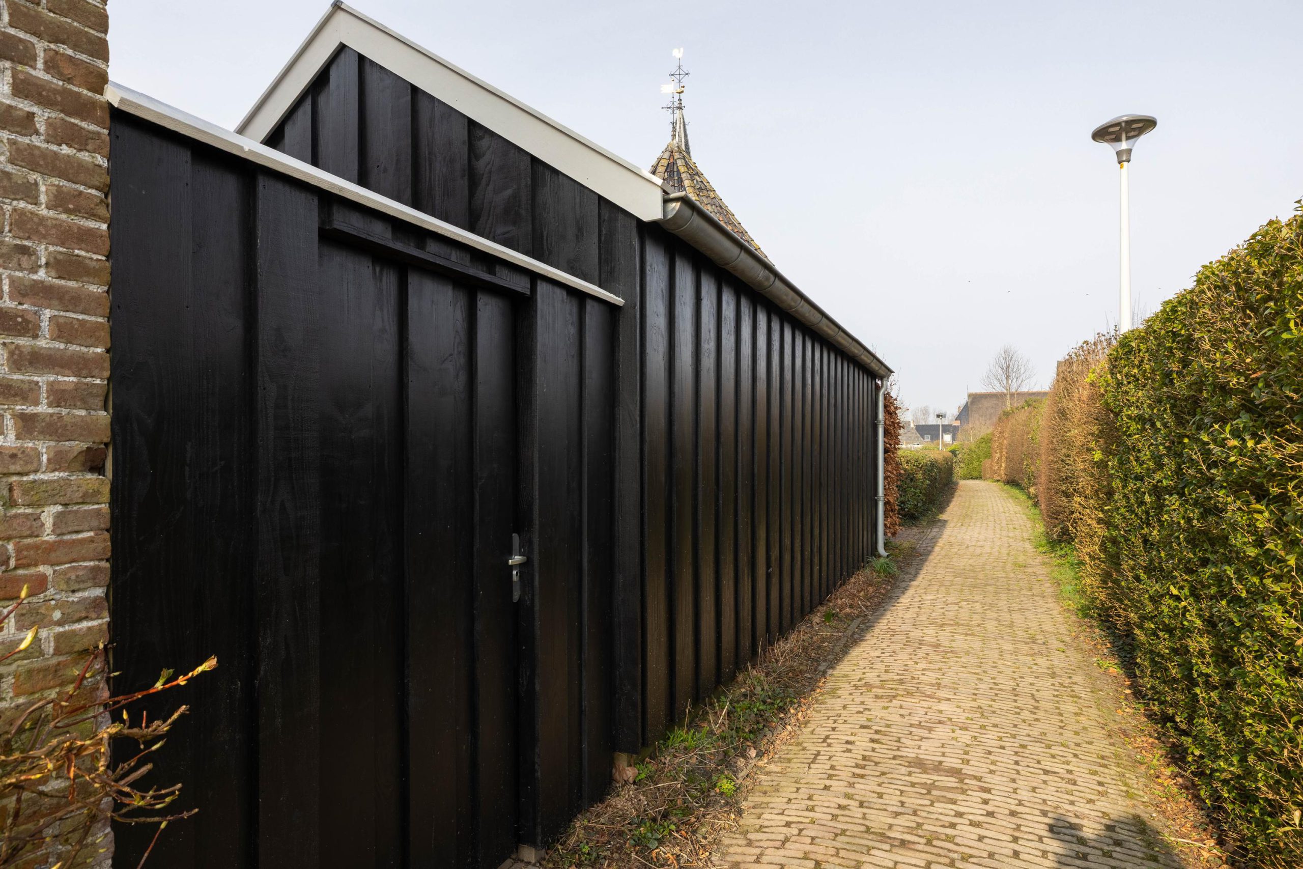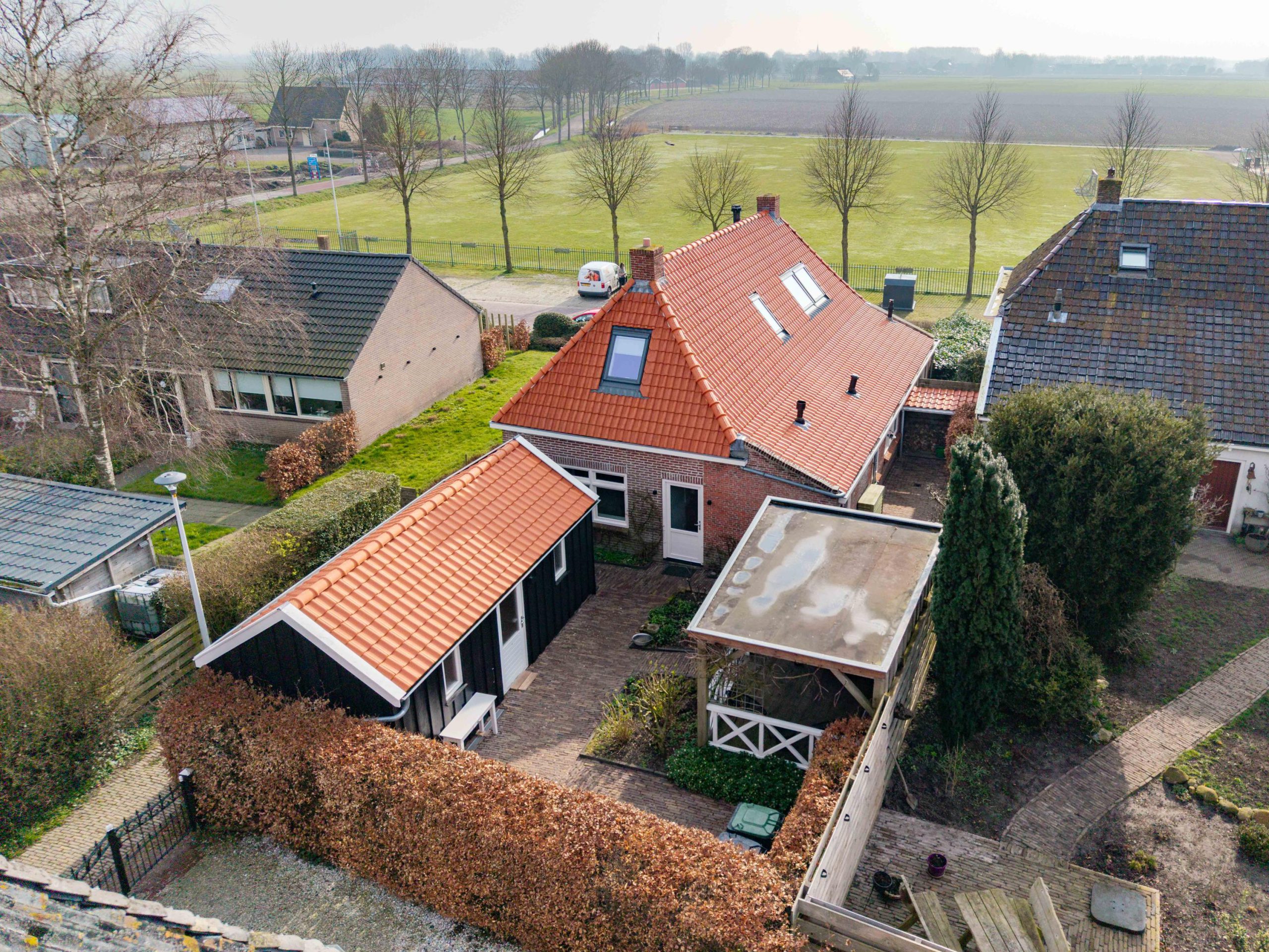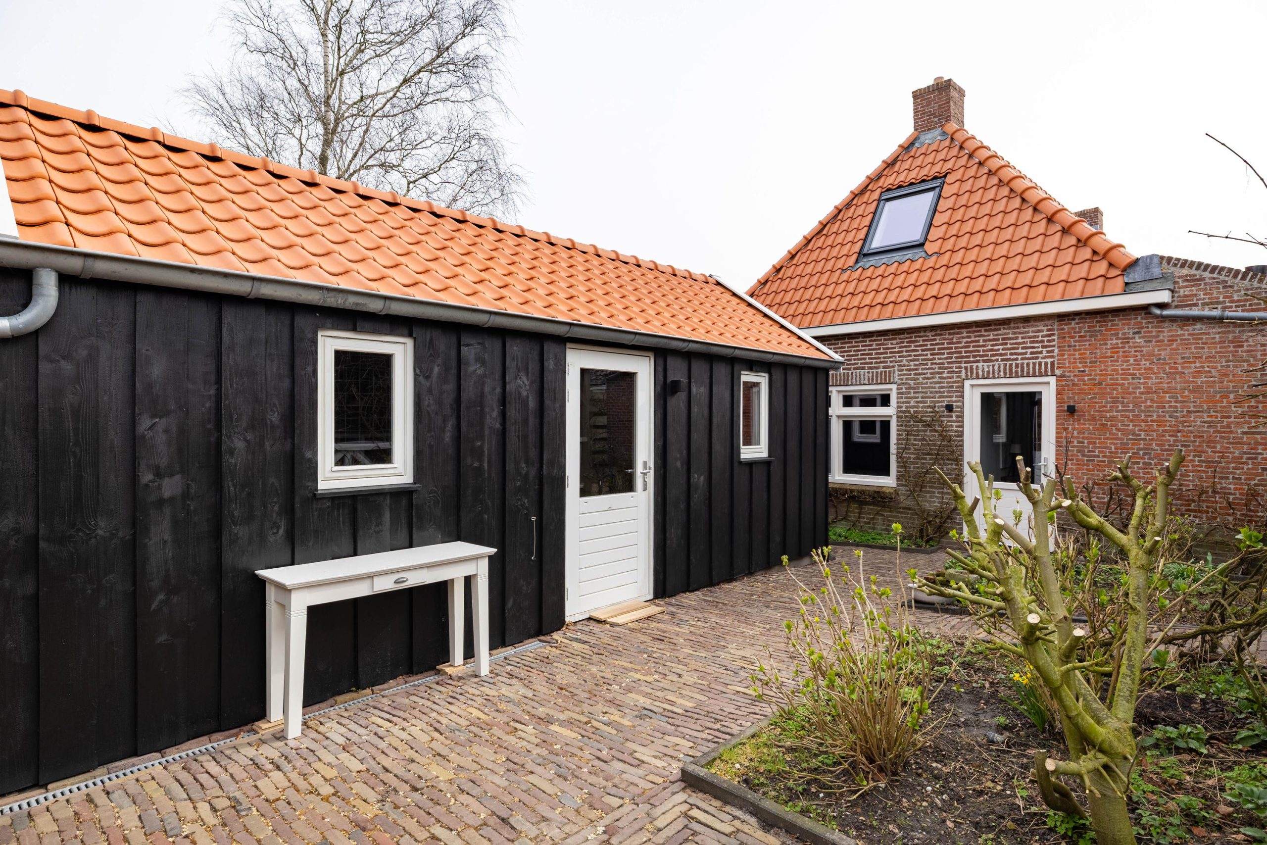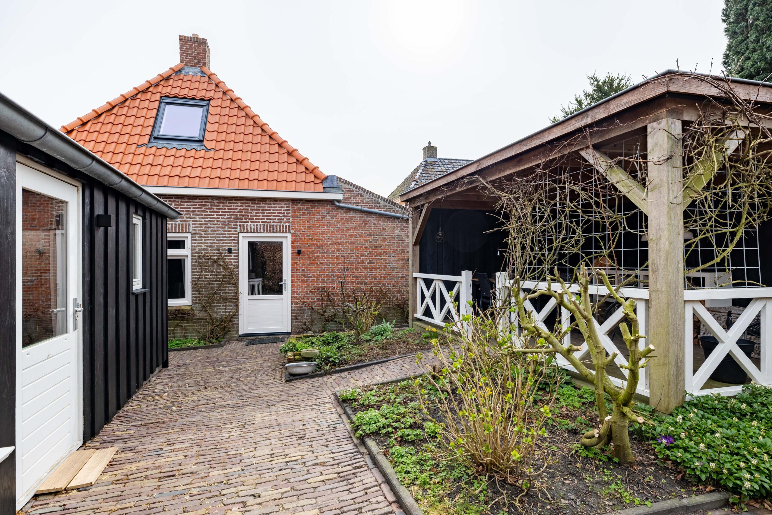 De achtertuin is een plek om echt tot rust te komen, met een fijne veranda en een prachtig uitzicht op het kerkje. Hier geniet je in alle privacy van het buitenleven. Achterin de tuin staat een grote, recent geplaatste schuur die volop ruimte biedt voor opslag, hobby’s of werk. Bij de veranda, schuur en het terras is uitsluitend gebruikgemaakt van hoogwaardige, duurzame materialen, waaronder onverwoestbaar hardhout. De afwerking is tot in detail verzorgd.