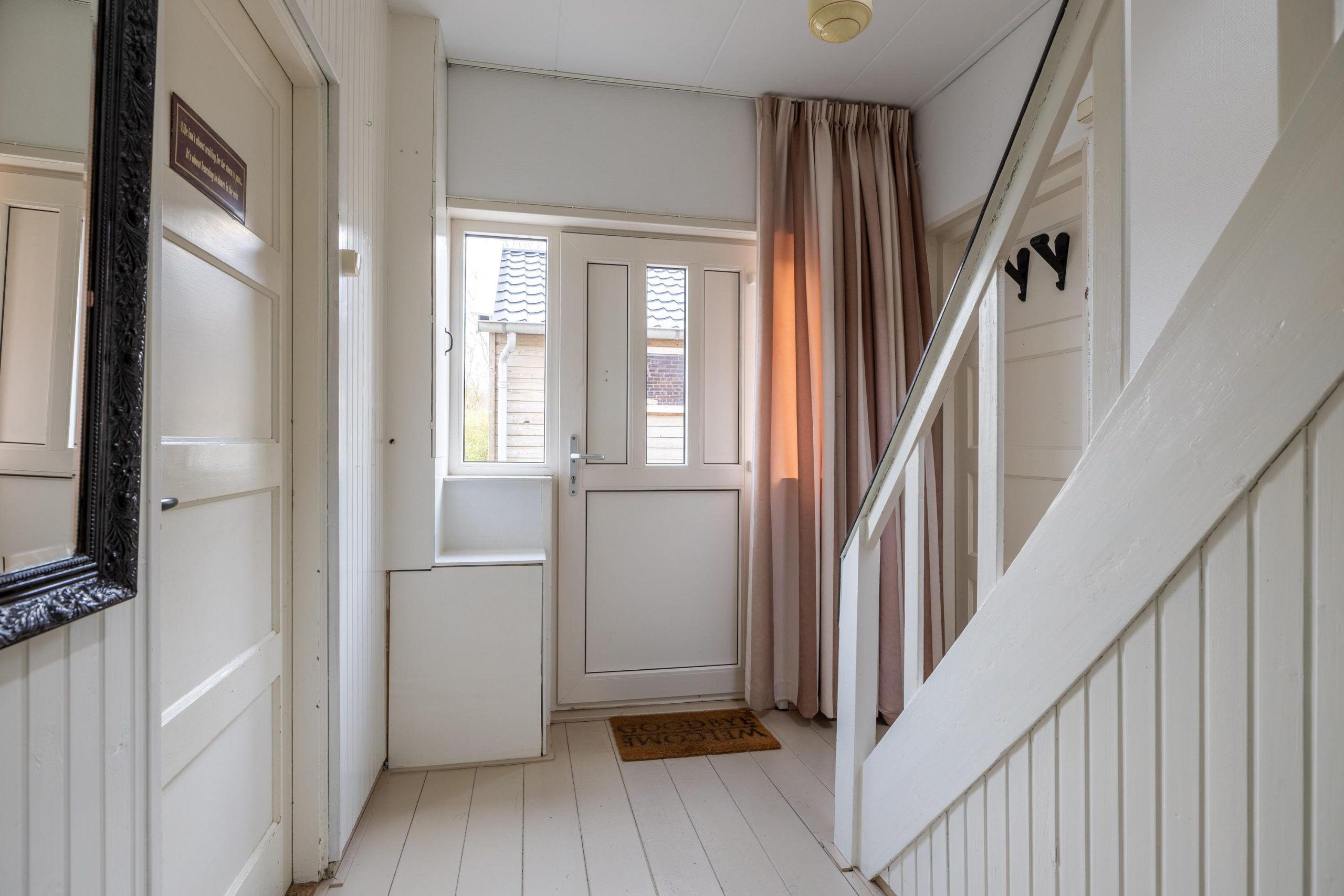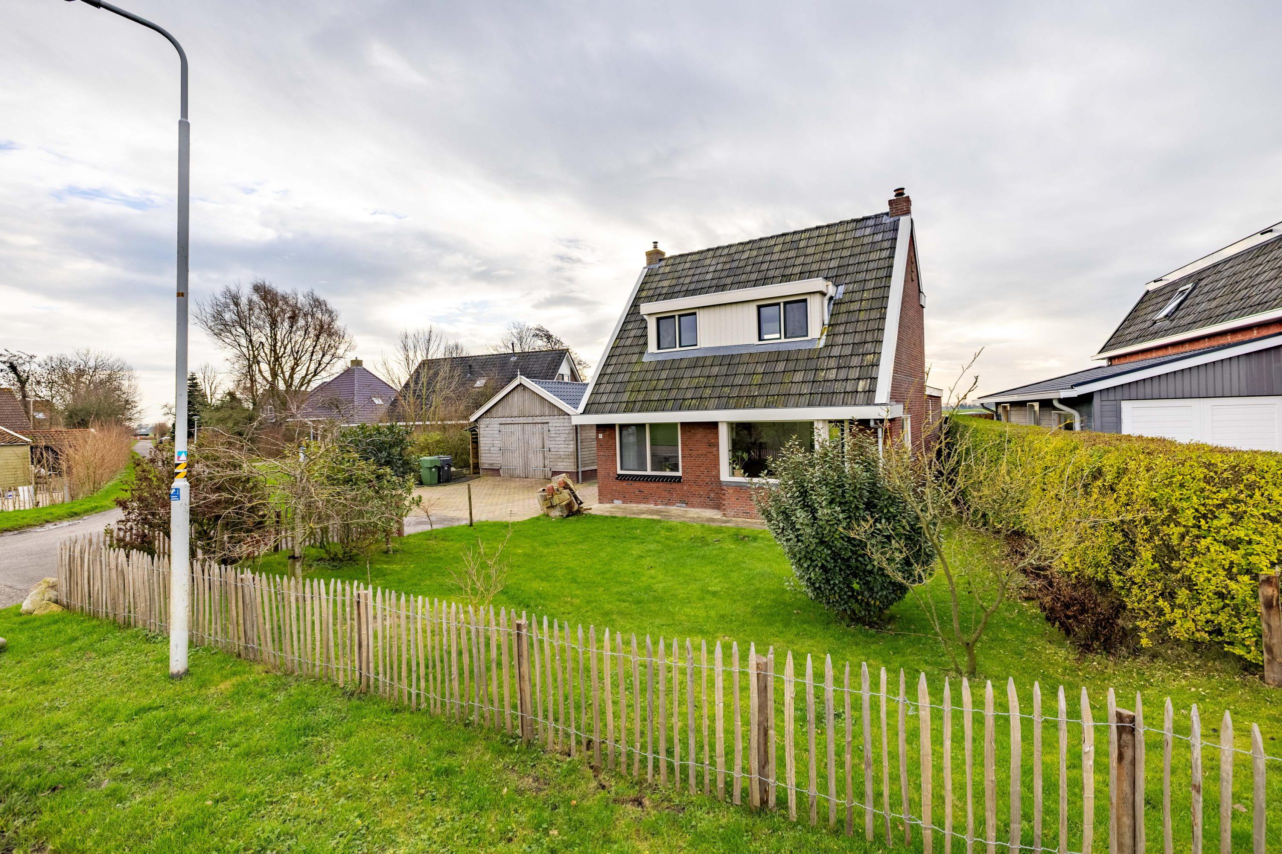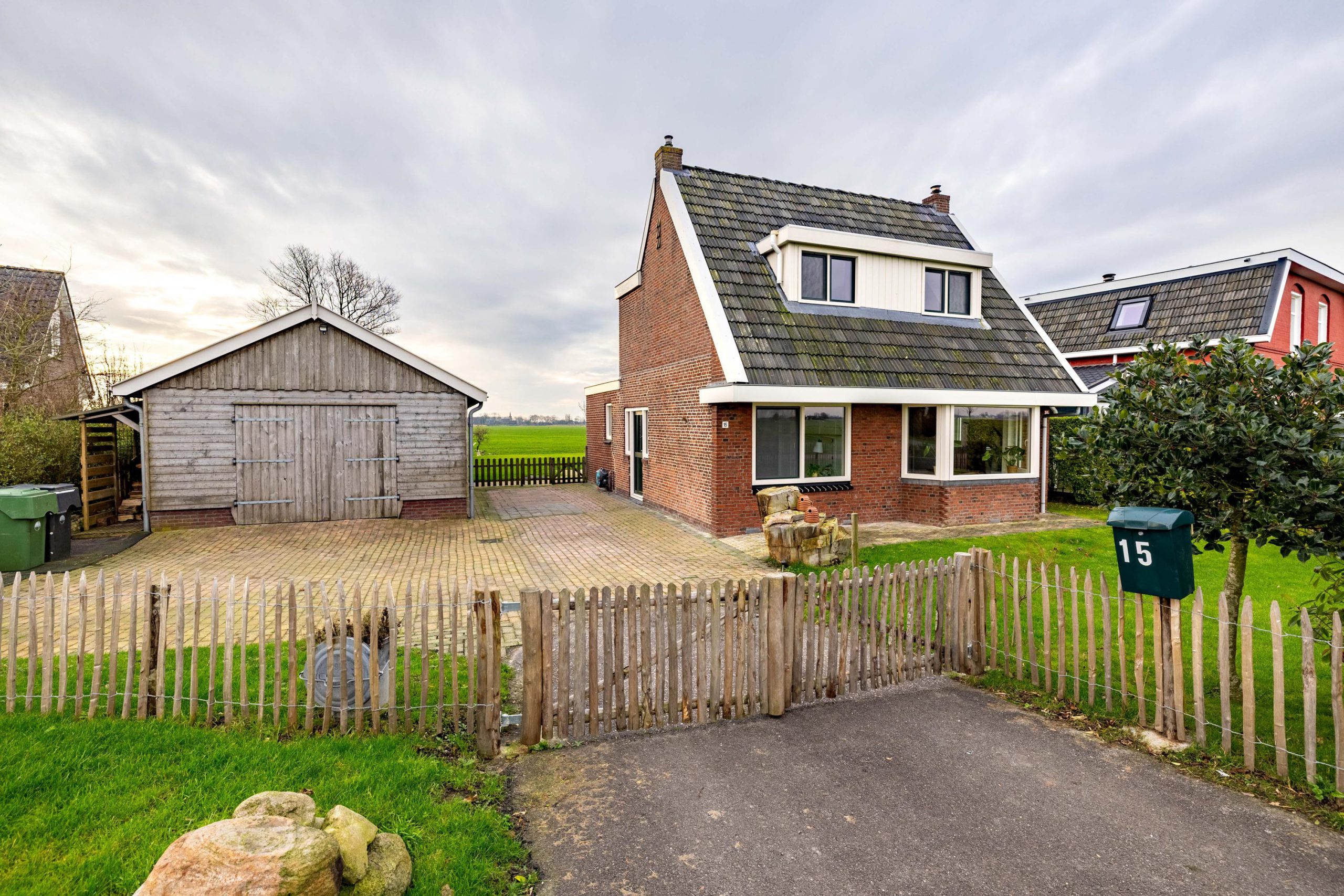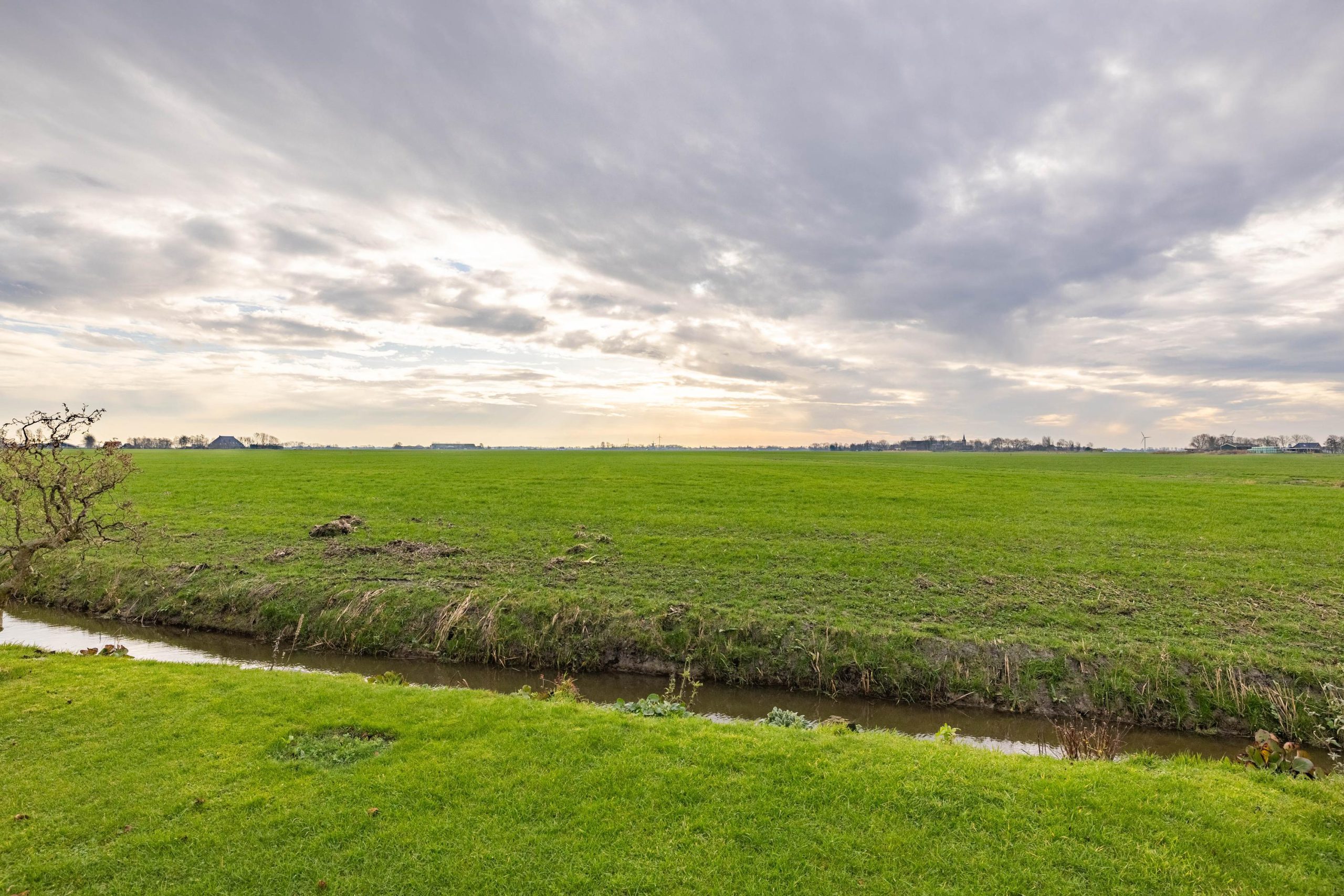 De tuin ligt rondom de woning, waardoor je op elk moment van de dag een zonnig plekje kunt vinden. Voor en achter kijk je vrij uit over de weilanden, een uitzicht dat nooit verveelt en elk seizoen weer anders is.