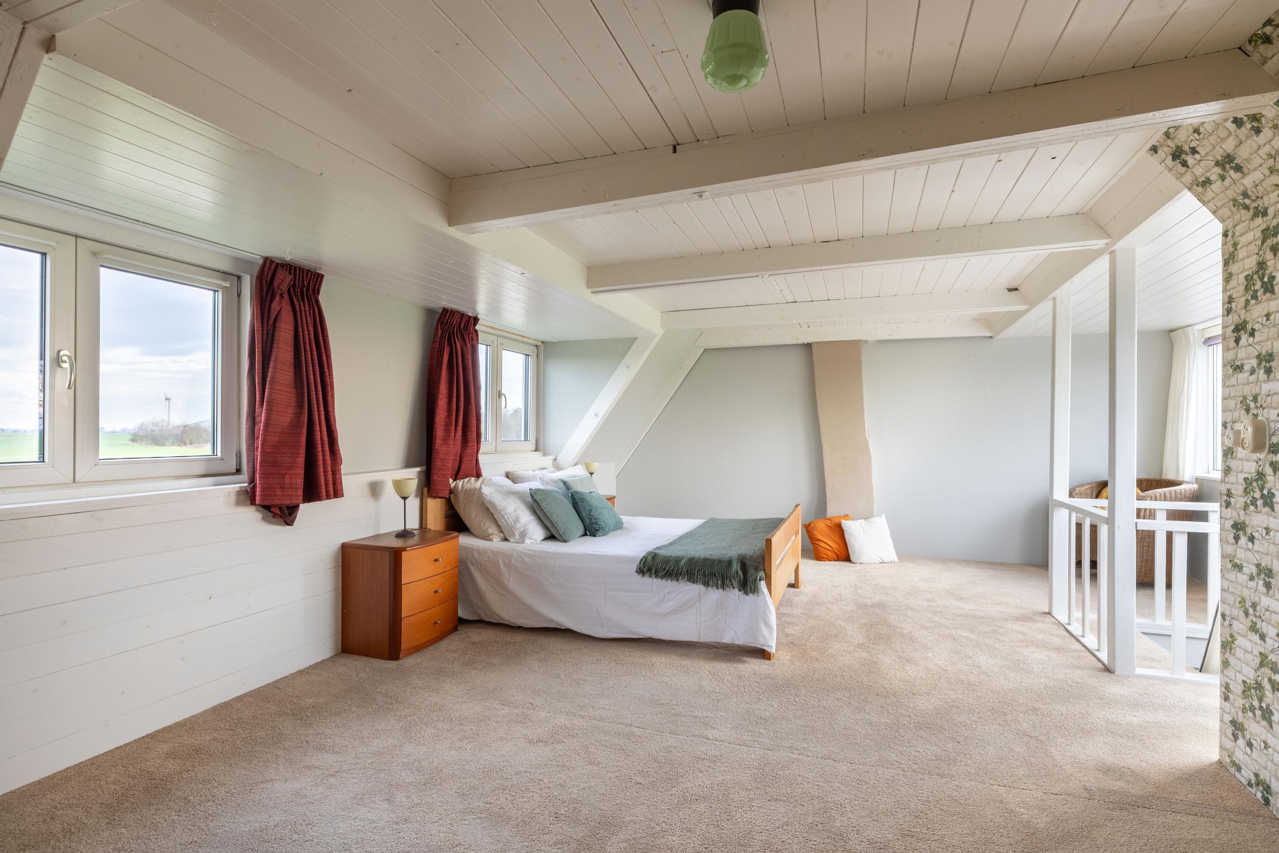 Op de eerste verdieping bevindt zich de tweede, zeer royale slaapkamer. Een heerlijke, open ruimte die eenvoudig is op te splitsen in twee volwaardige slaapkamers. Flexibel, toekomstgericht en helemaal naar eigen wens in te delen.