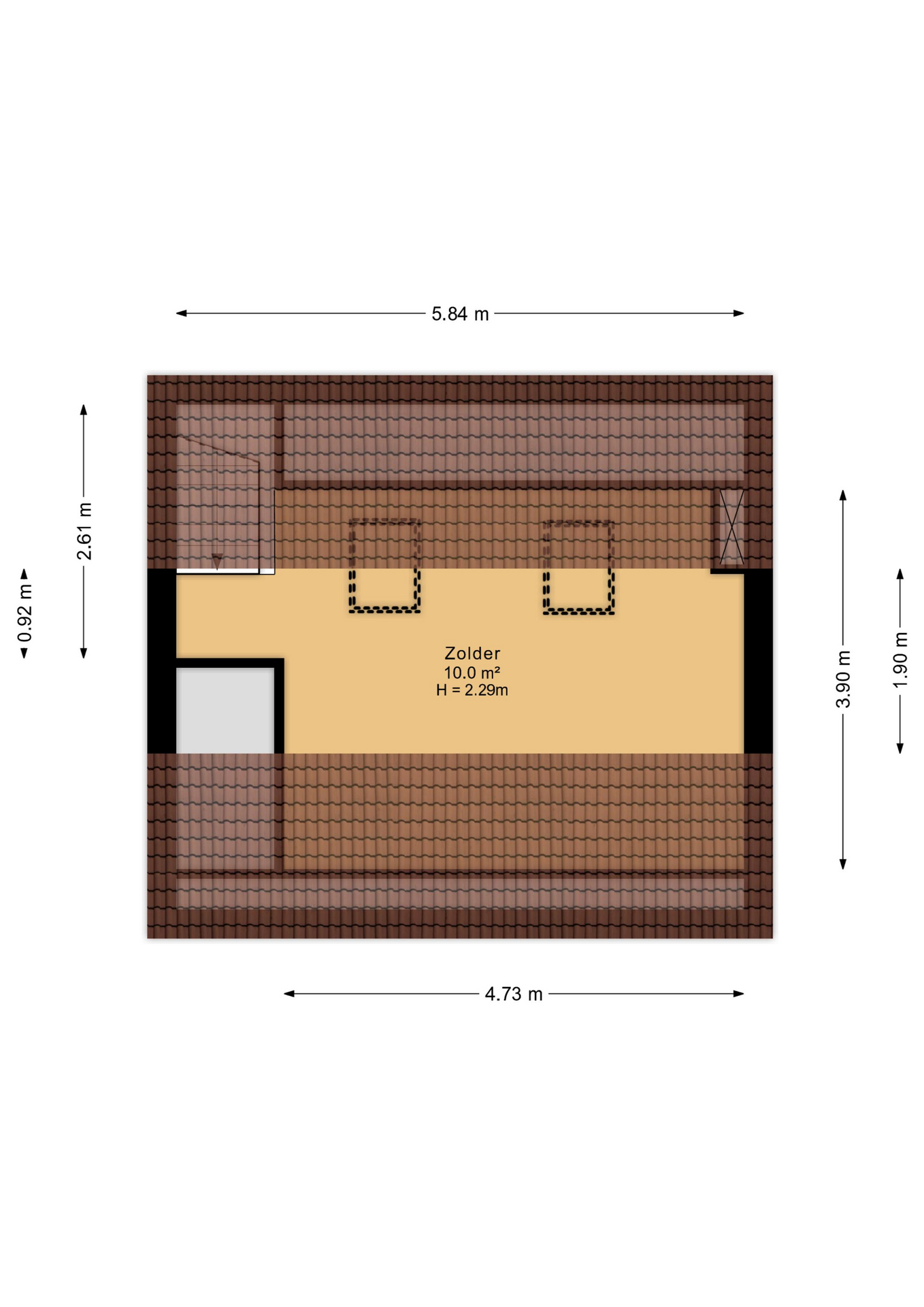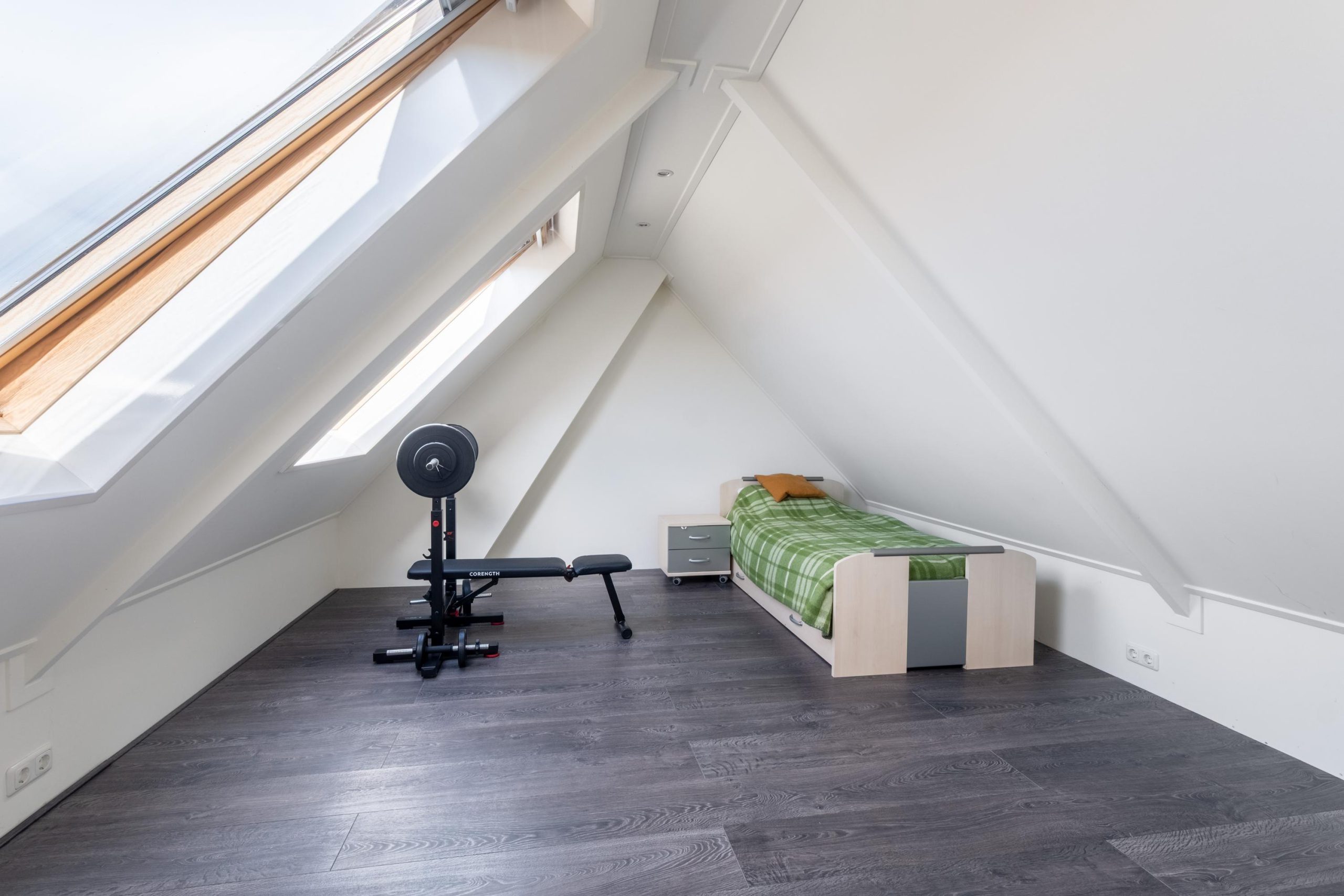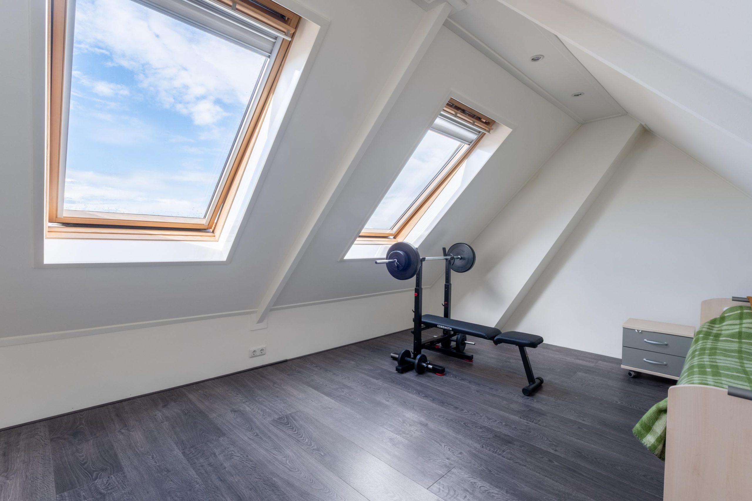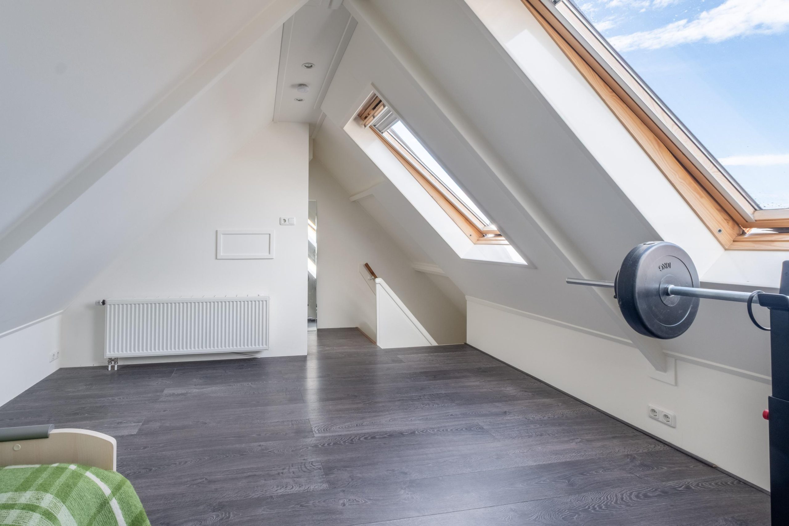 Zodra je via de vaste trap naar zolder gaat, kom je in de derde slaapkamer van de woning. De zolder biedt niet alleen ruimte om te slapen, maar ook om te sporten.