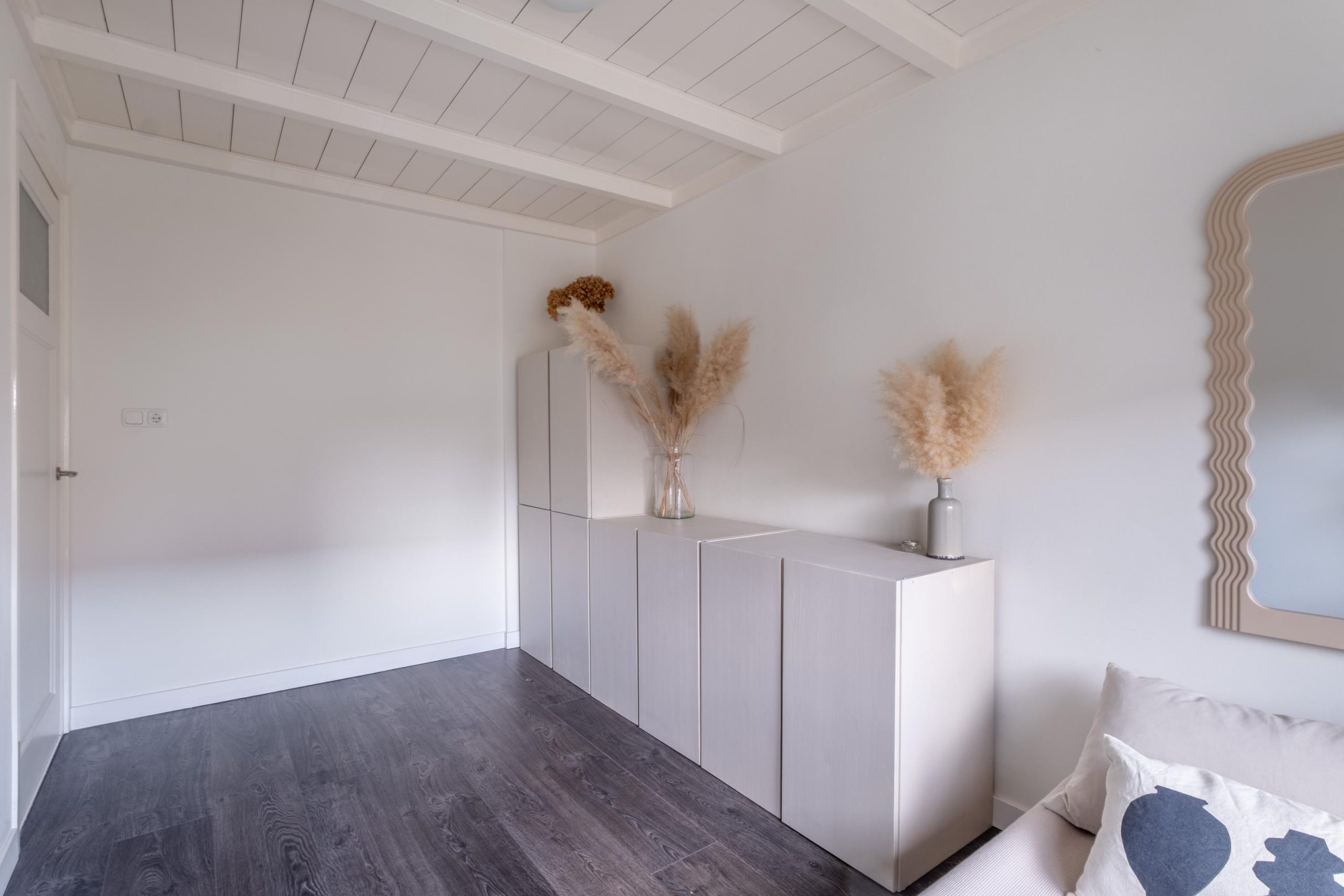 De woonkamer is een knusse plek waar je meteen zin krijgt om neer te ploffen. Dankzij de prettige lichtinval en de nette afwerking ademt de ruimte een warme sfeer. Ideaal voor gezellige avonden met een boek of een film.