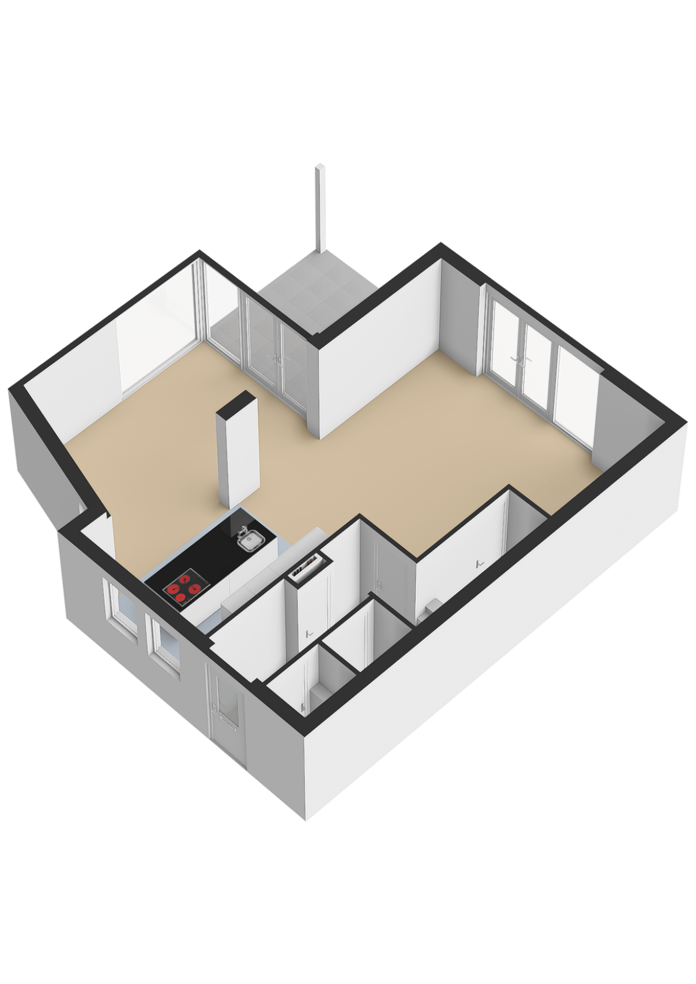 De open keuken sluit mooi aan op de woonruimte. Alles is aanwezig om hier met plezier te koken, terwijl je in contact blijft met de rest van het huis.