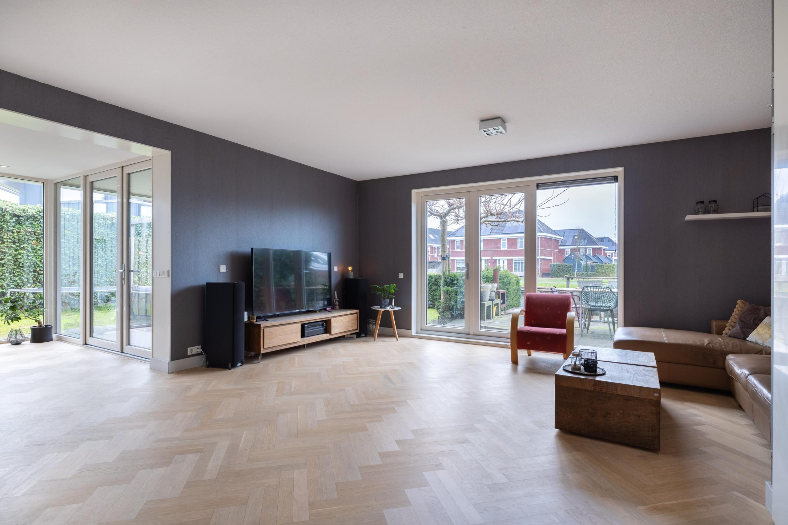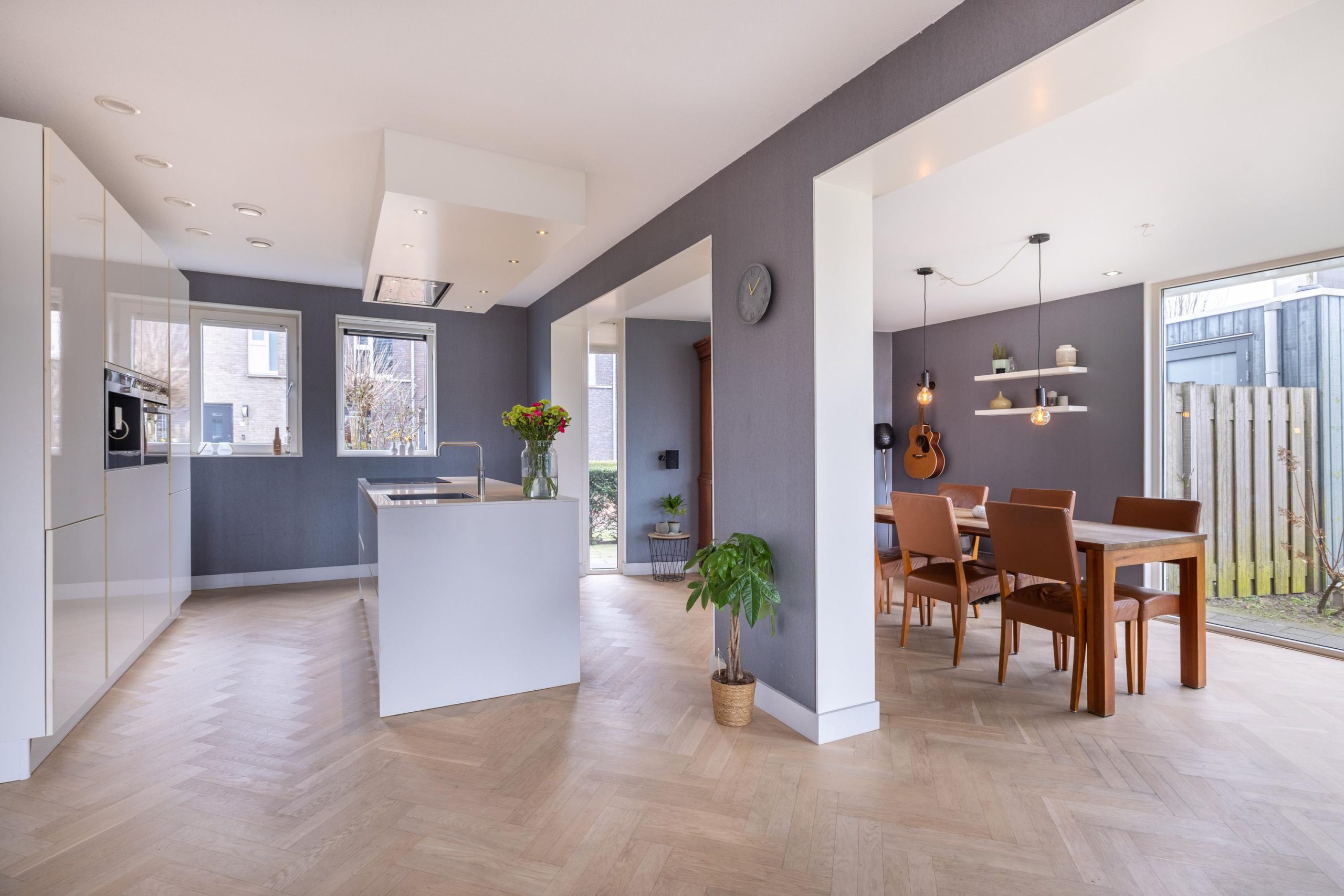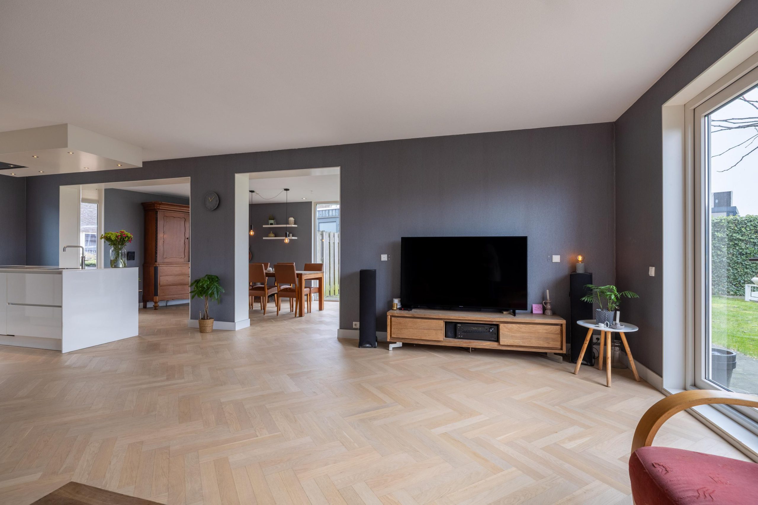 Binnen word je ontvangen in een heerlijk ruime leefruimte, waar licht en ruimte de hoofdrol spelen. De visgraatvloer geeft direct sfeer en verbindt de verschillende woonzones op natuurlijke wijze. Dankzij de prachtige aanbouw uit 2015, gerealiseerd met hulp van een architect, is de woonkamer opvallend licht en royaal. Grote raampartijen halen buiten naar binnen en maken elk moment van de dag prettig. Dit is een huis waarin geleefd mag worden, met volop ruimte voor lange avonden aan tafel en ontspannen dagen thuis.