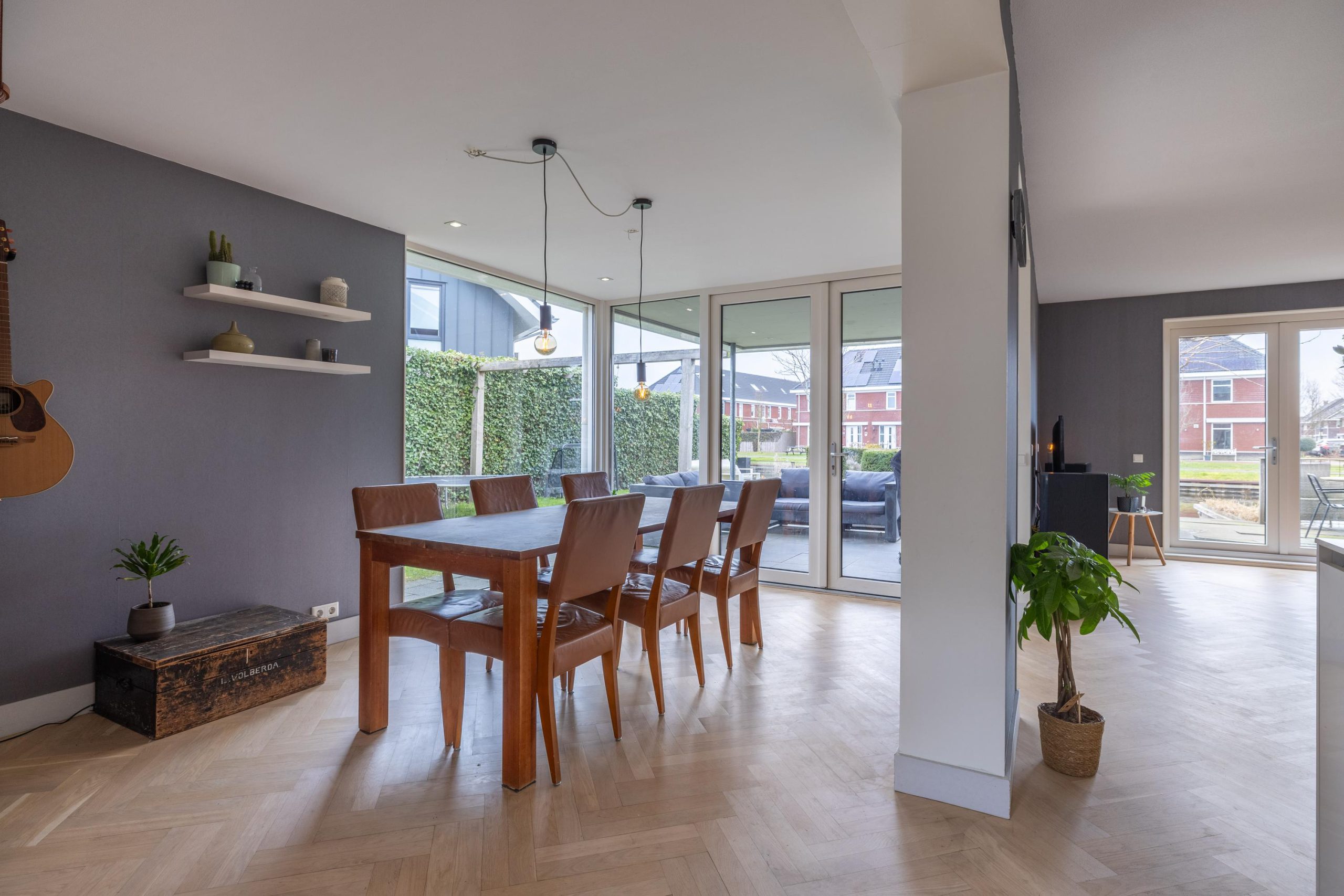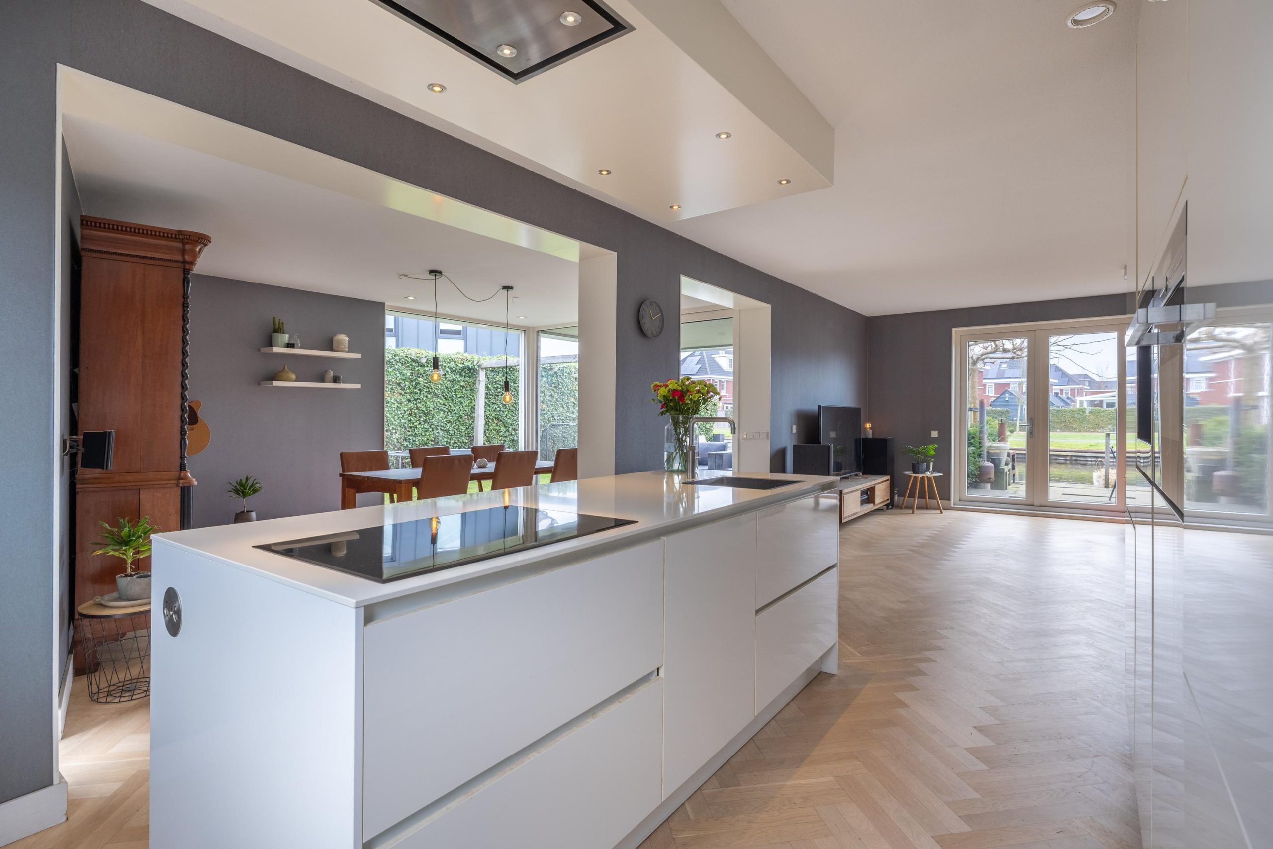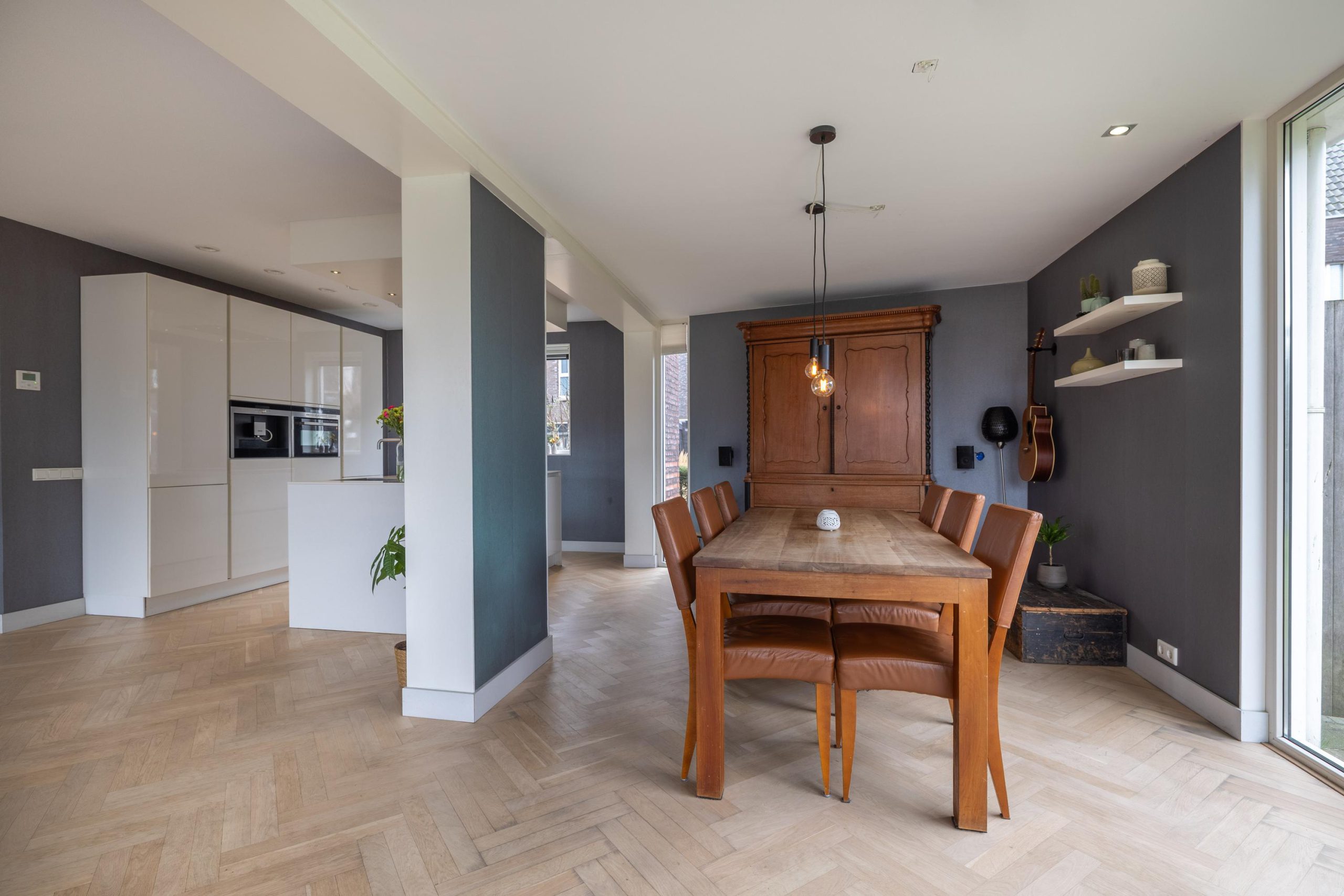 Binnen word je ontvangen in een heerlijk ruime leefruimte, waar licht en ruimte de hoofdrol spelen. De visgraatvloer geeft direct sfeer en verbindt de verschillende woonzones op natuurlijke wijze. Dankzij de prachtige aanbouw uit 2015, gerealiseerd met hulp van een architect, is de woonkamer opvallend licht en royaal. Grote raampartijen halen buiten naar binnen en maken elk moment van de dag prettig. Dit is een huis waarin geleefd mag worden, met volop ruimte voor lange avonden aan tafel en ontspannen dagen thuis.