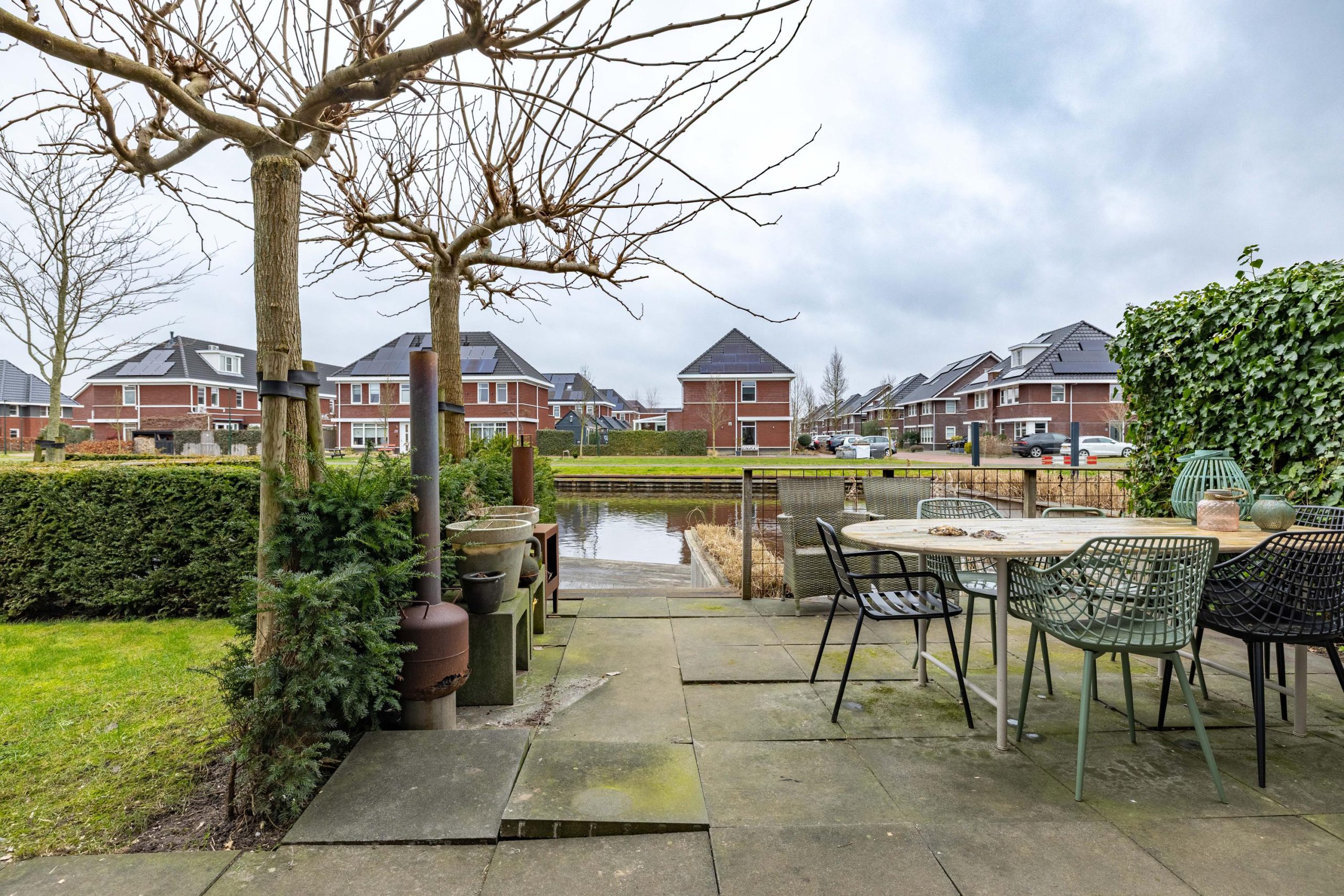 De tuin grenst aan open vaarwater en maakt het buitenleven hier extra bijzonder. In de zomer vaar je zo weg, geniet je van lange avonden aan het water en ervaar je dagelijks dat vakantiegevoel waar deze plek om bekendstaat. Tegelijkertijd woon je in een kindvriendelijke omgeving met volop speelvoorzieningen en fijne buren.