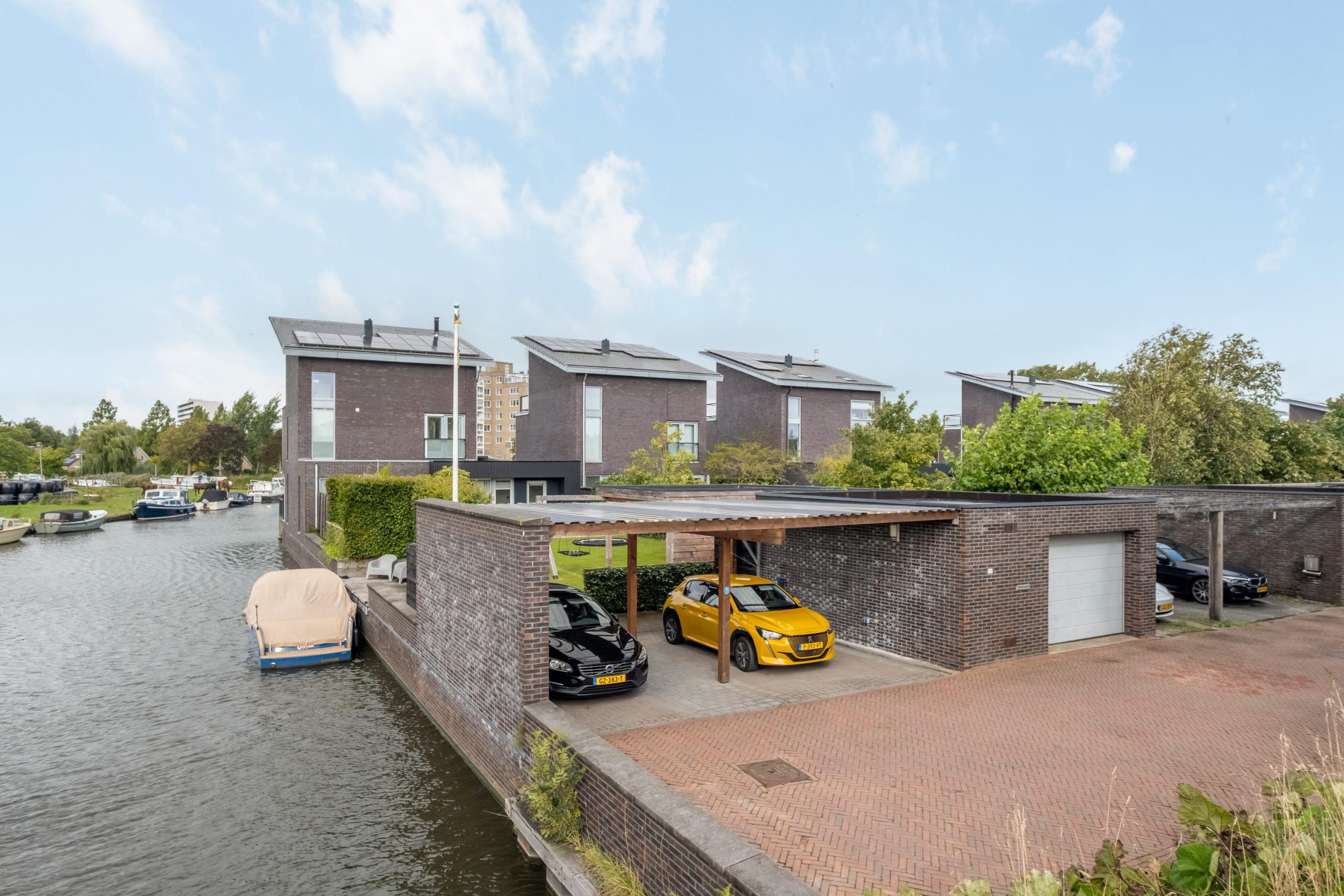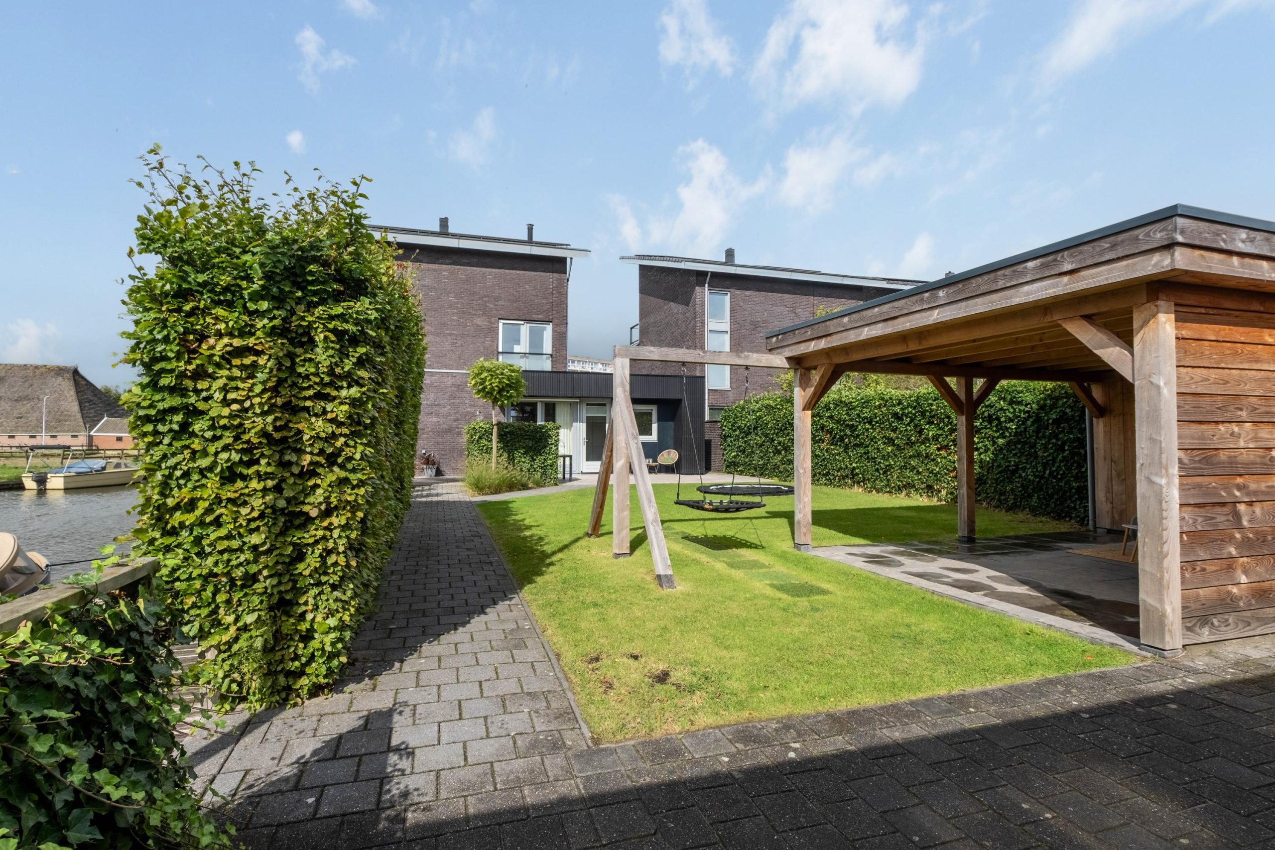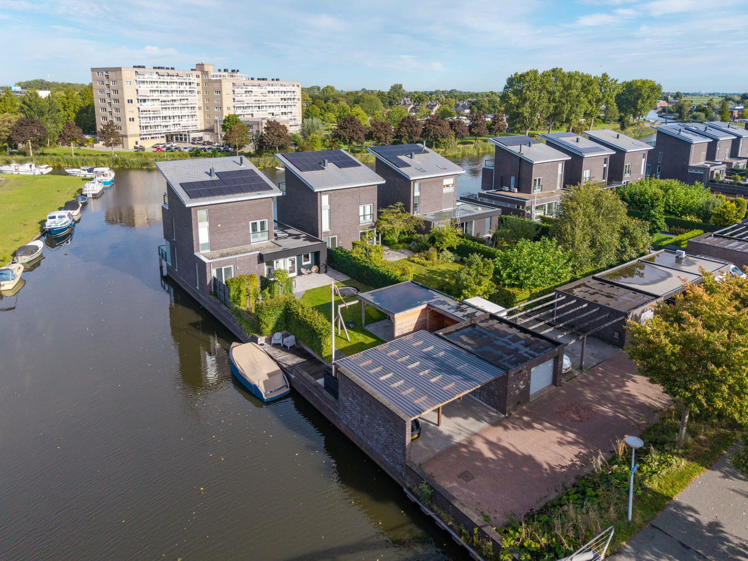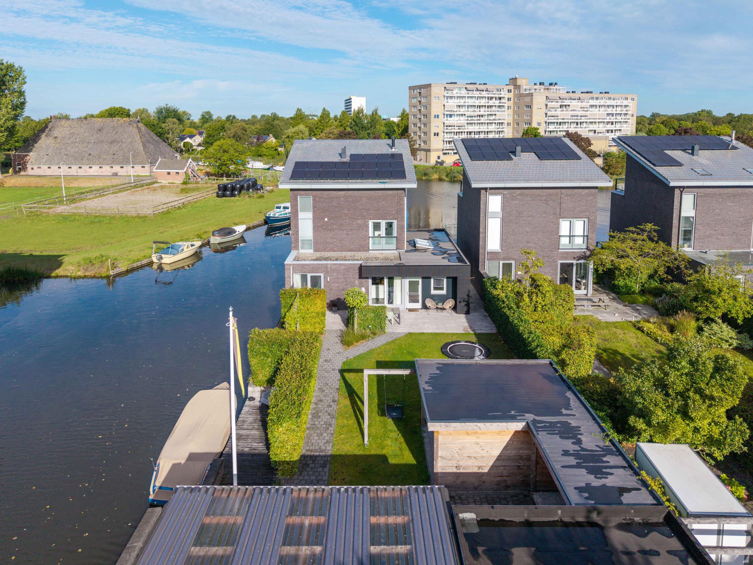 Buiten is het puur genieten. Dankzij de hoekligging zijn er meerdere terrassen en zithoeken, zodat er altijd een plek in de zon of schaduw te vinden is. De tuin grenst direct aan het water en beschikt over twee aanlegsteigers die tevens vanaf binnen eenvoudig bereikbaar zijn via een schuifpui. Daarnaast zijn er een heerlijke overkapping, carport, fietsenoverkapping en garage – altijd voldoende overdekte ruimte voor auto, fietsen en opslag.