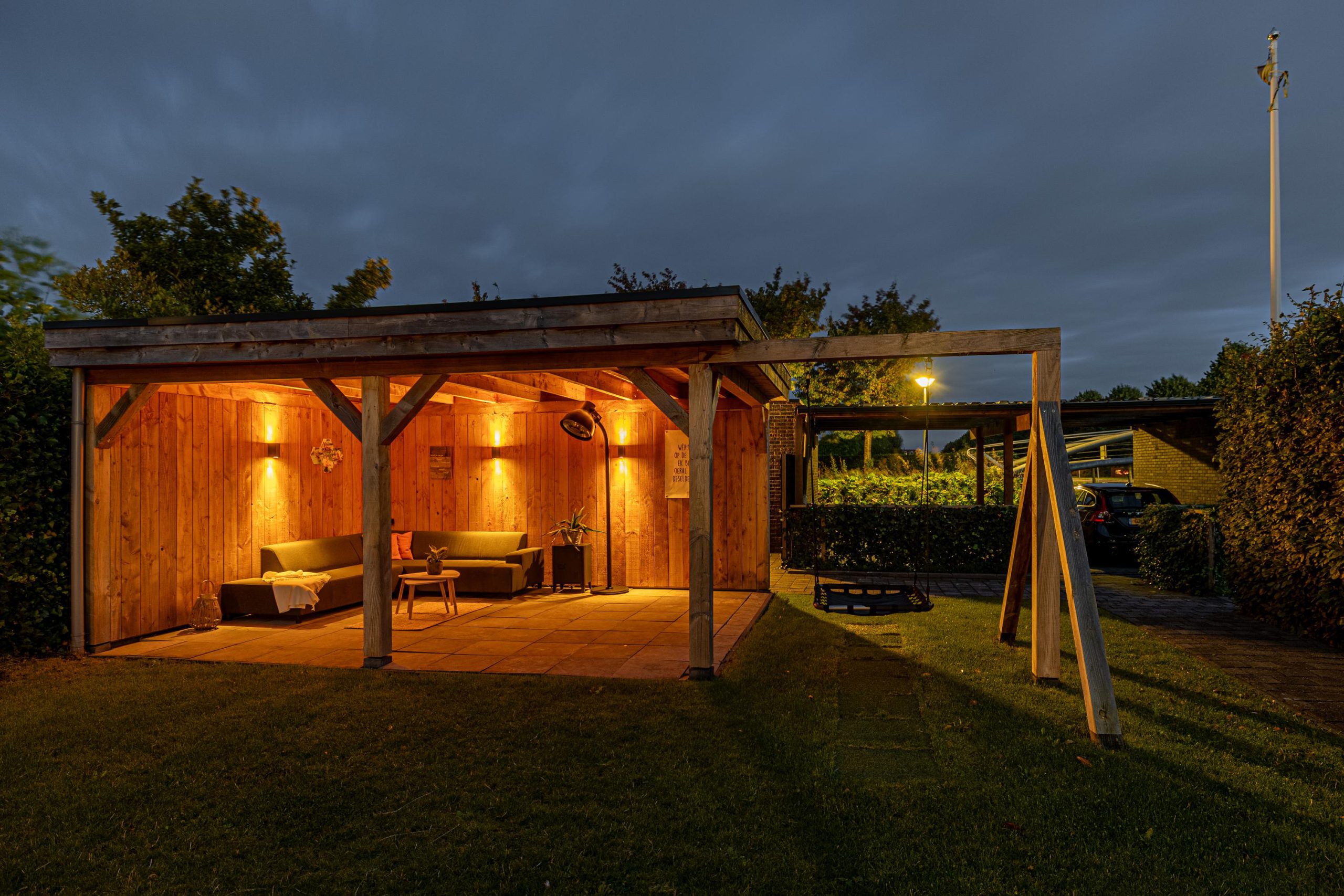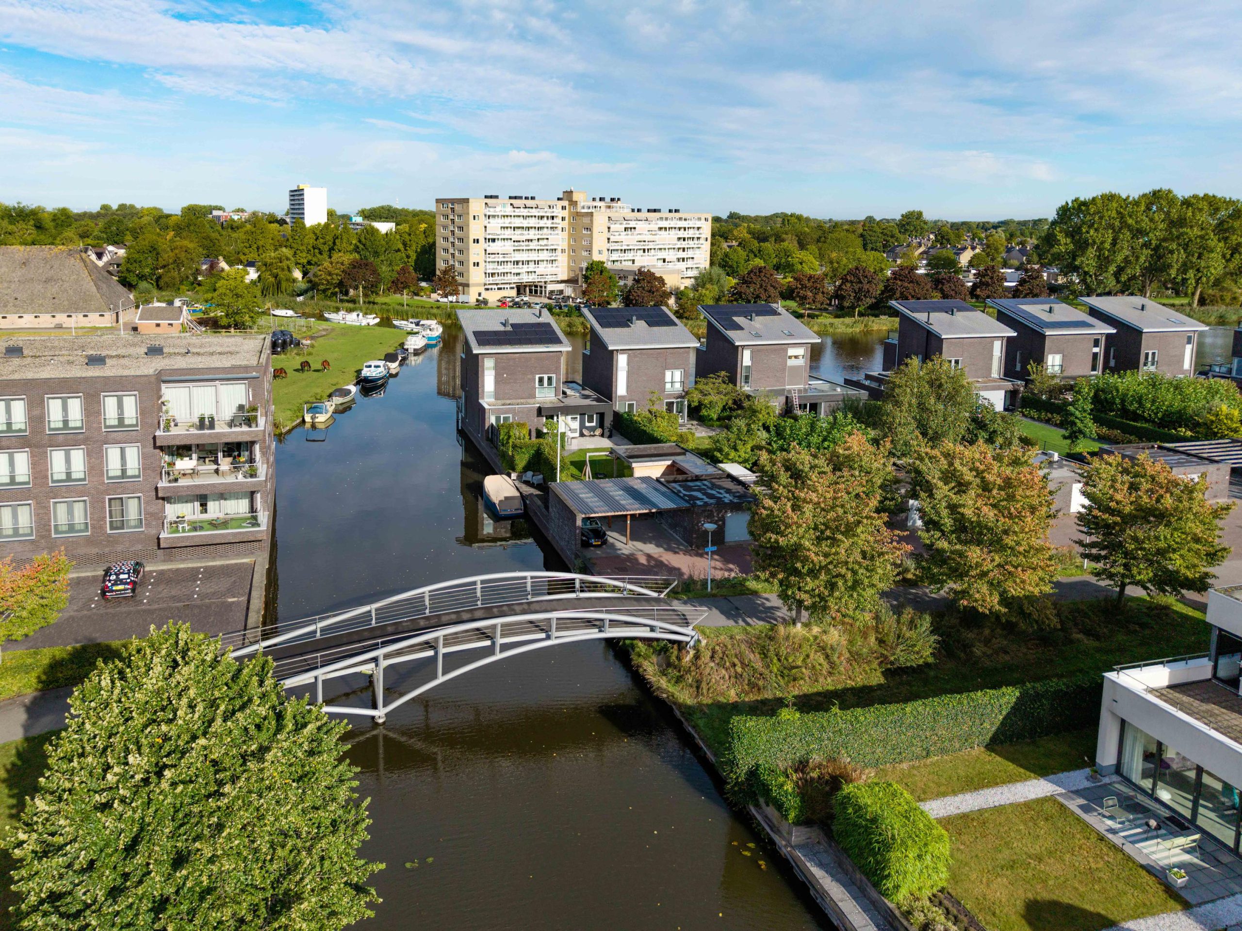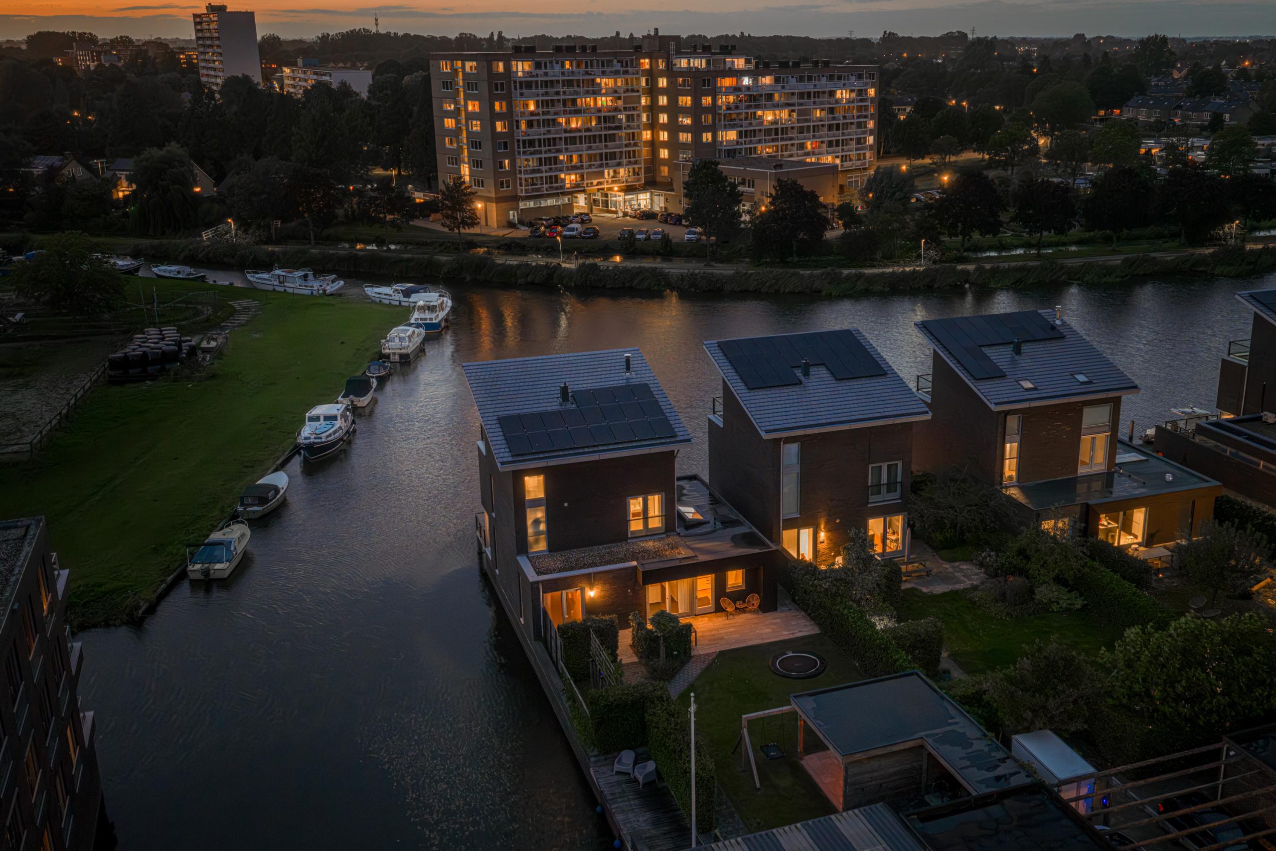 Buiten is het puur genieten. Dankzij de hoekligging zijn er meerdere terrassen en zithoeken, zodat er altijd een plek in de zon of schaduw te vinden is. De tuin grenst direct aan het water en beschikt over twee aanlegsteigers die tevens vanaf binnen eenvoudig bereikbaar zijn via een schuifpui. Daarnaast zijn er een heerlijke overkapping, carport, fietsenoverkapping en garage – altijd voldoende overdekte ruimte voor auto, fietsen en opslag.