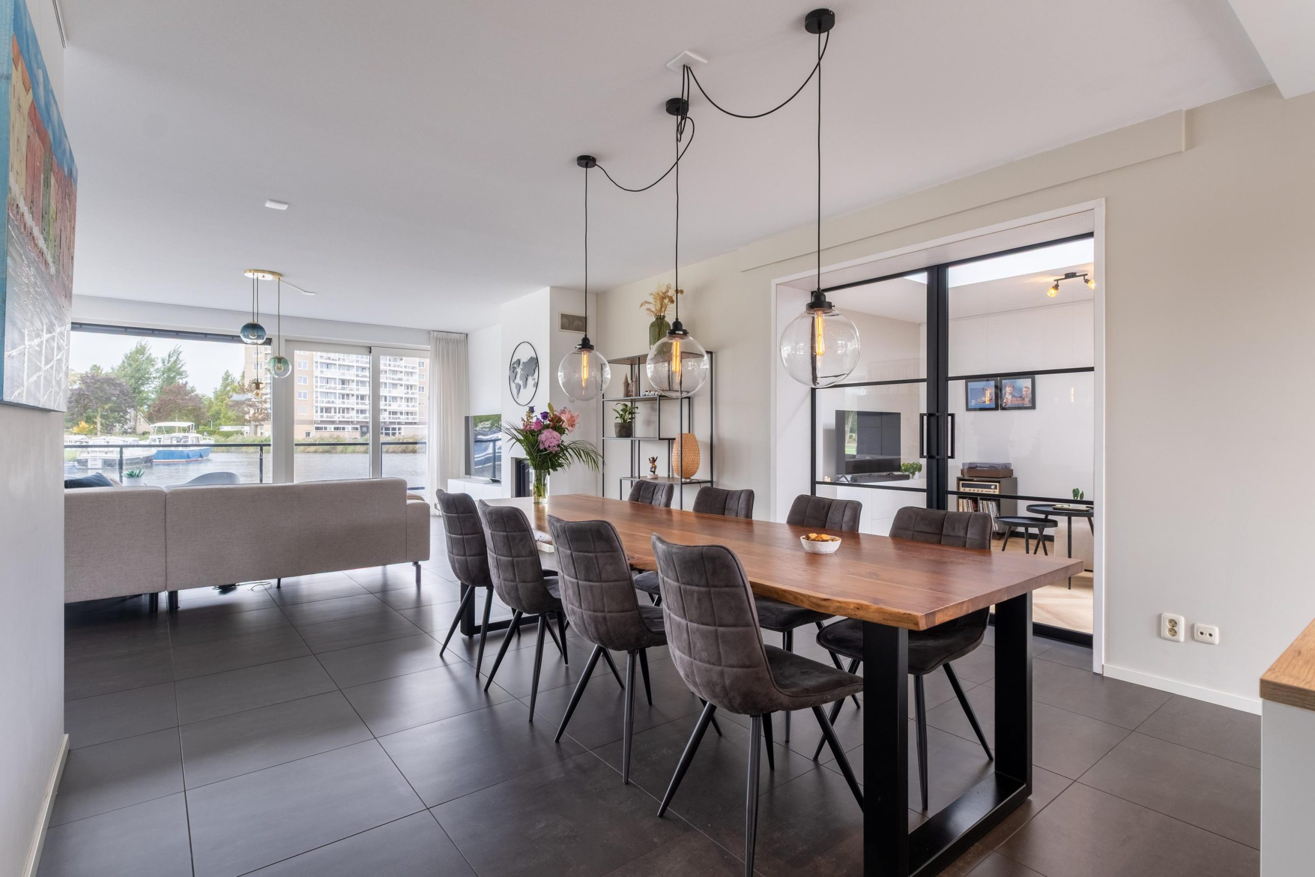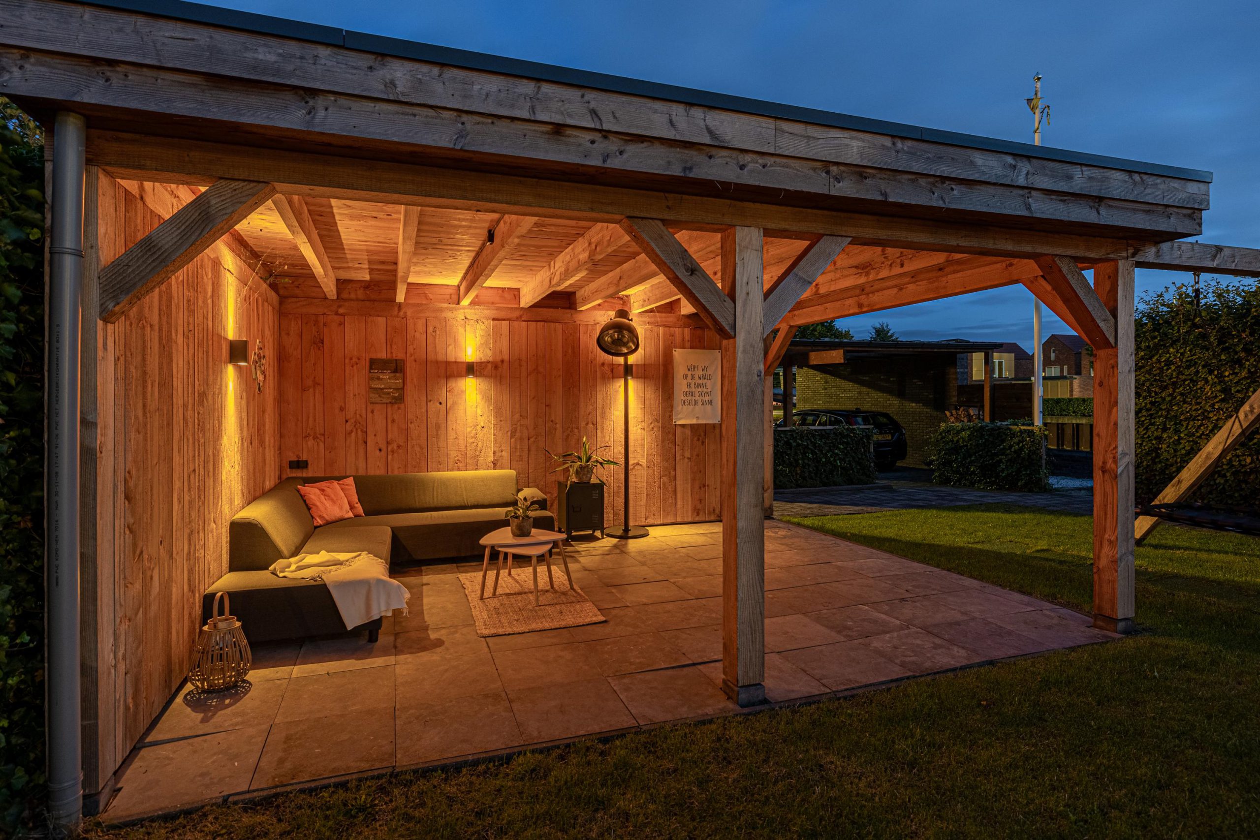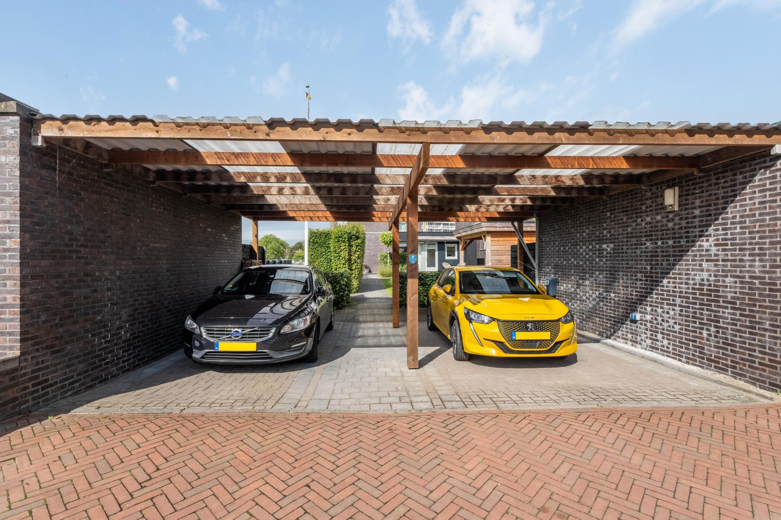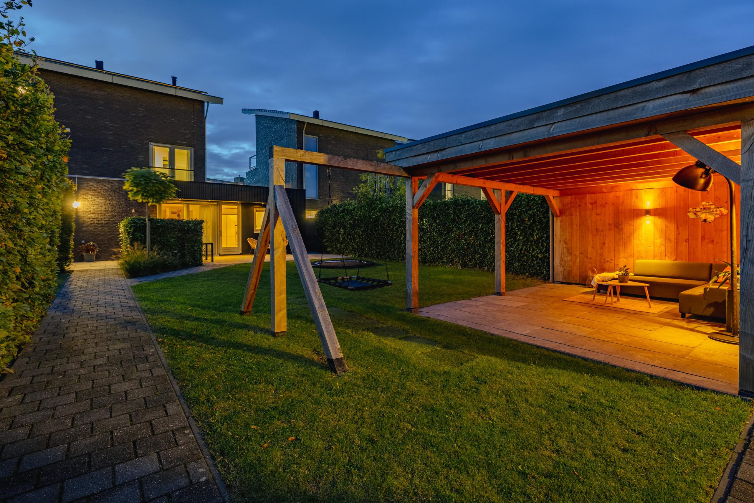 Buiten is het puur genieten. Dankzij de hoekligging zijn er meerdere terrassen en zithoeken, zodat er altijd een plek in de zon of schaduw te vinden is. De tuin grenst direct aan het water en beschikt over twee aanlegsteigers die tevens vanaf binnen eenvoudig bereikbaar zijn via een schuifpui. Daarnaast zijn er een heerlijke overkapping, carport, fietsenoverkapping en garage – altijd voldoende overdekte ruimte voor auto, fietsen en opslag.