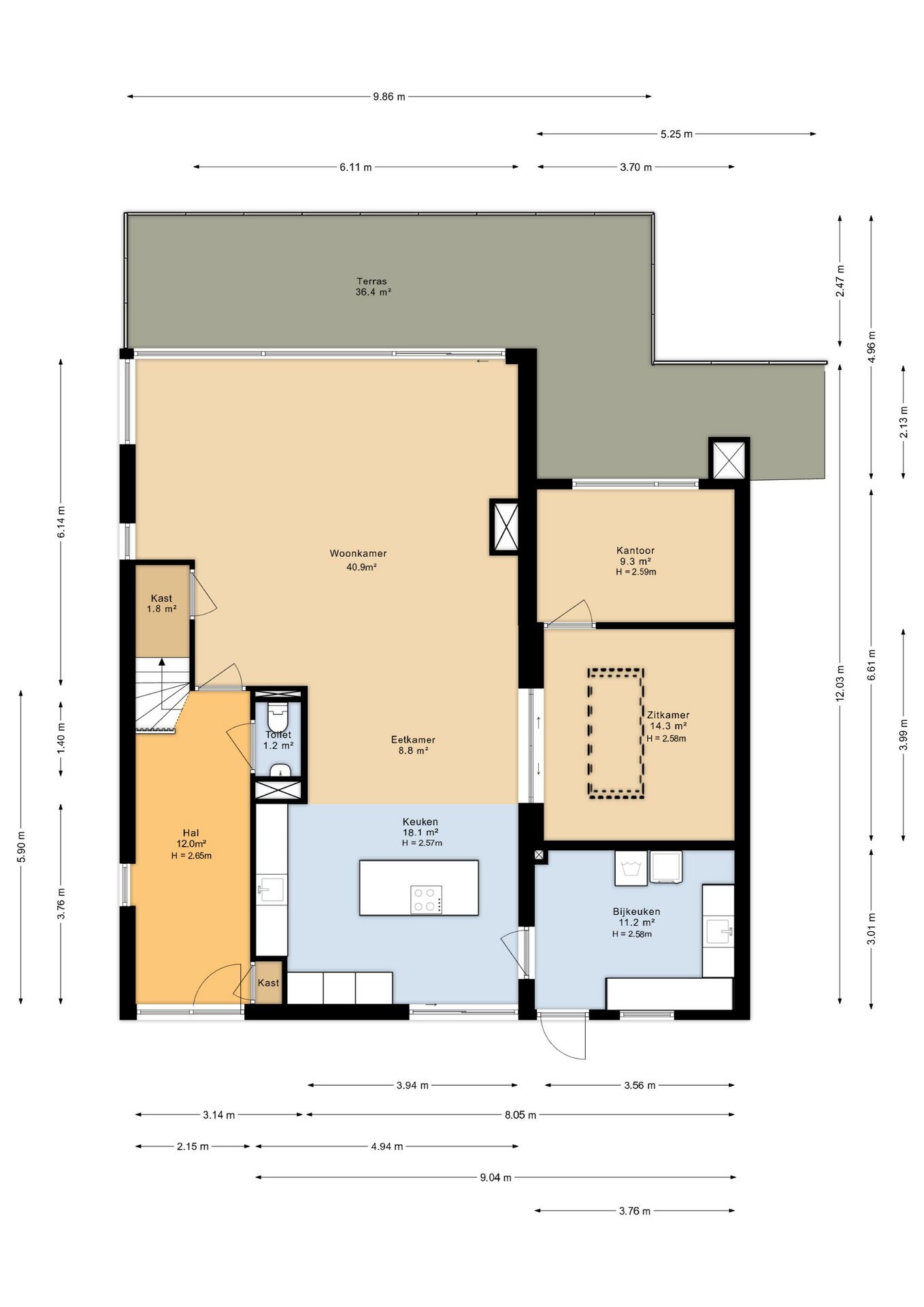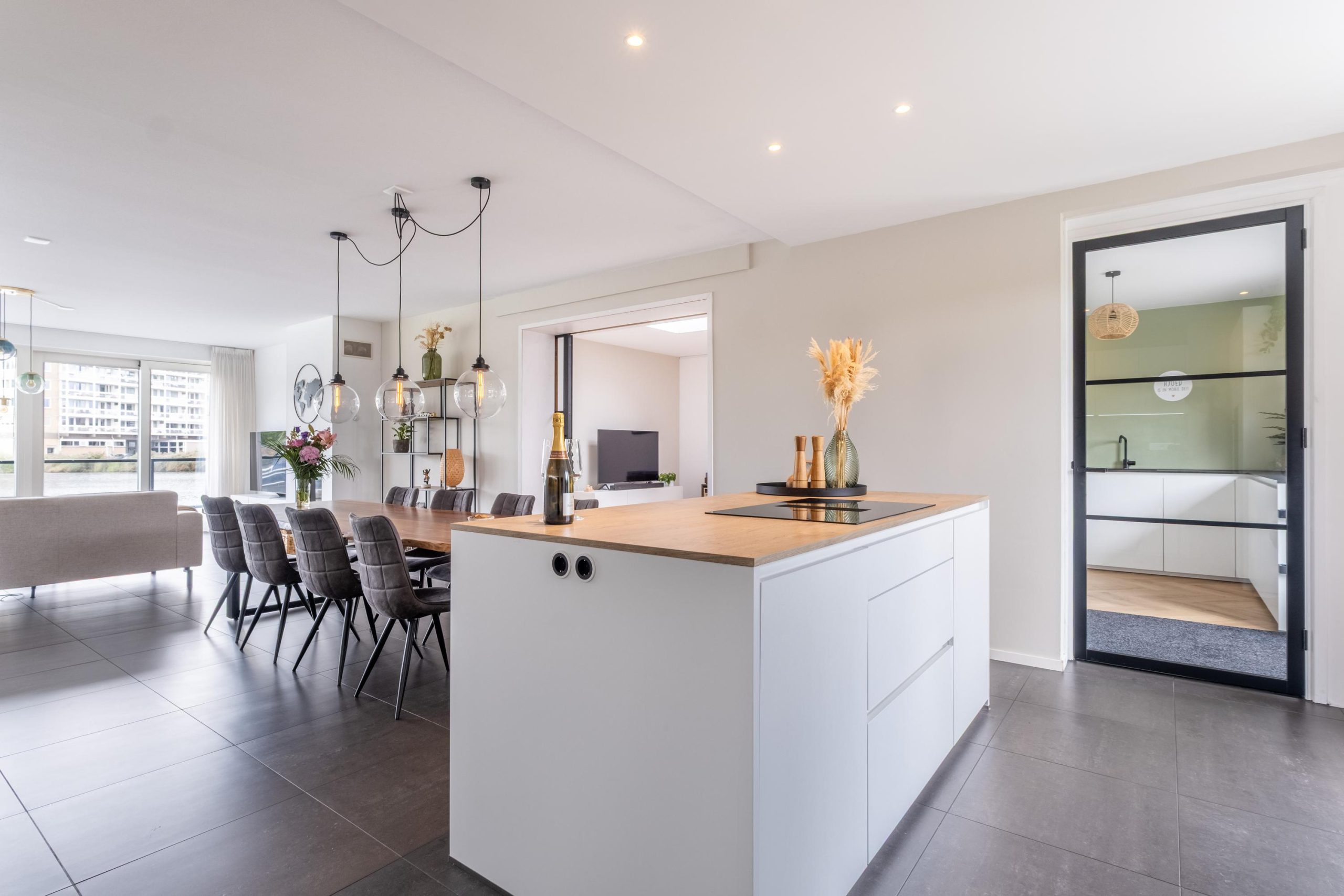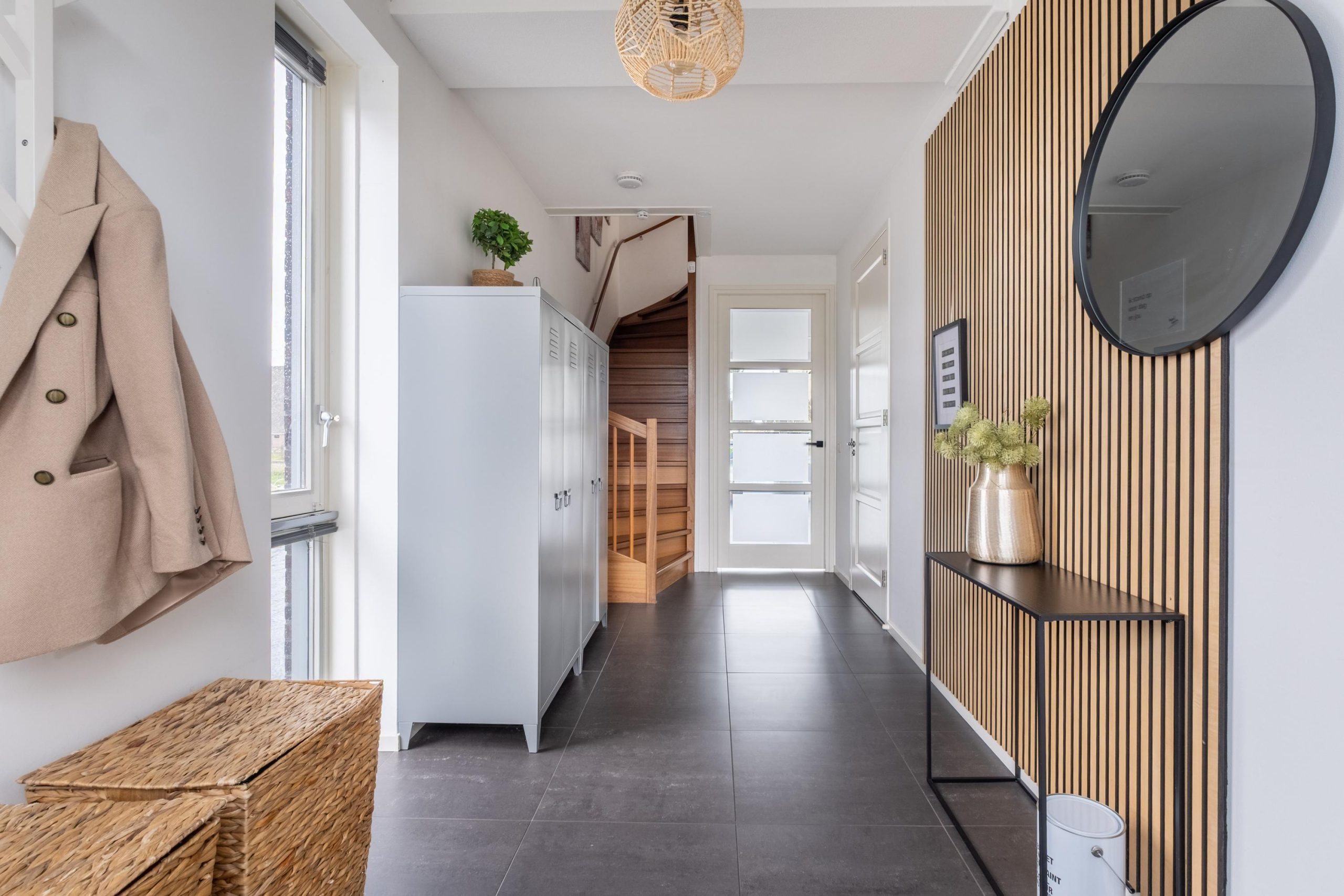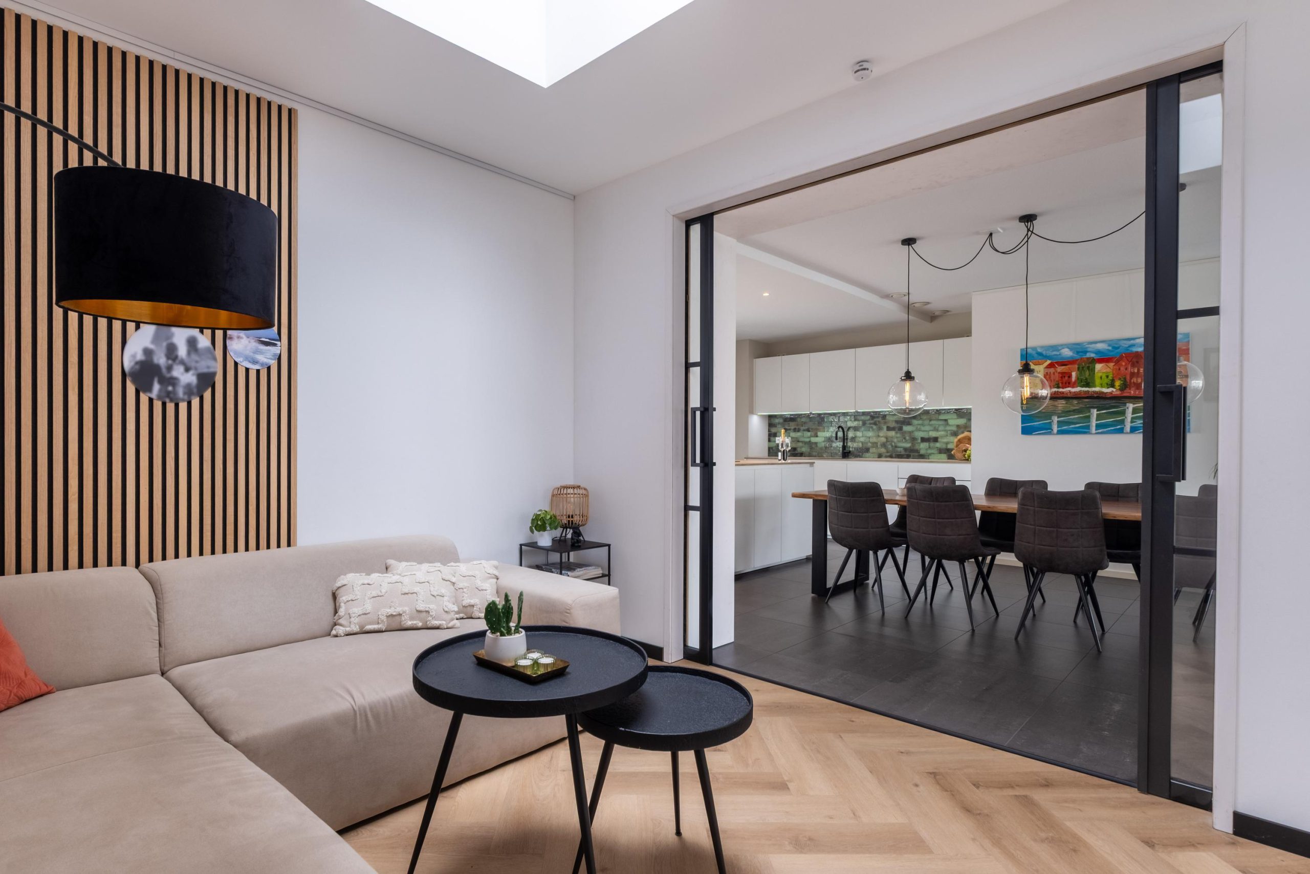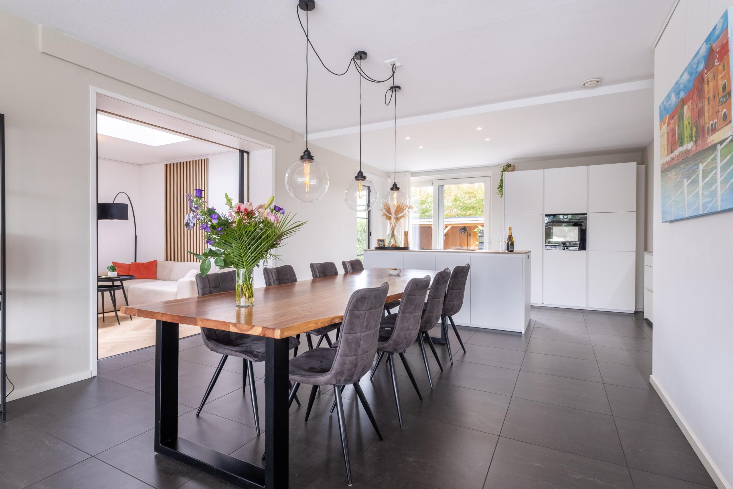 Bij binnenkomst komt u in de hal met toilet, trapopgang en praktische kast. De royale woonkamer is licht en sfeervol, met een schuifpui naar het terras en volop ruimte voor een gezellige eetkamer en leefkeuken. Aangrenzend aan de keuken bevindt zich de maatwerk-bijkeuken. Daarnaast beschikt de woonruimte over een aparte zitkamer met kantoor – een ideale plek om rustig te werken of juist als extra loungehoek te gebruiken.