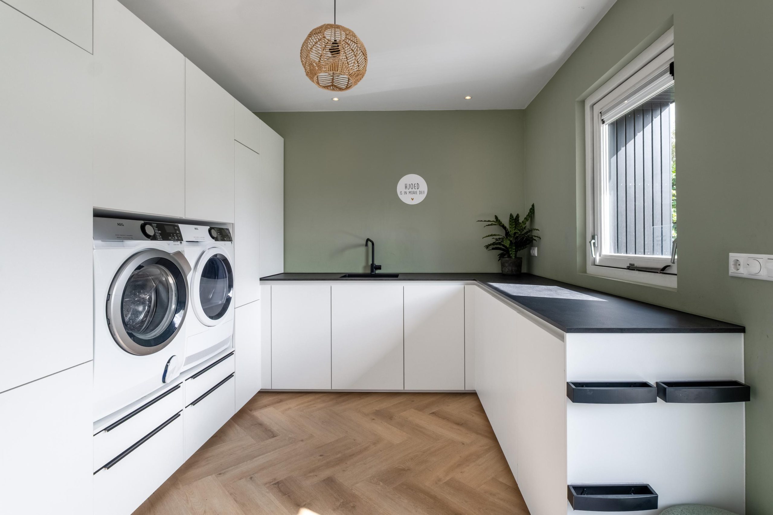 De keuken en bijkeuken zijn in 2023 volledig vernieuwd, met hoogwaardige inbouwapparatuur, quooker, een extra grote koelkast én en tweede (tafelmodel) drankenkoelkast. In de bijkeuken vinden we nog een extra grote vriezer. Deze ruimte is volledig op maat ontworpen en biedt slimme oplossingen voor dagelijks gebruik.